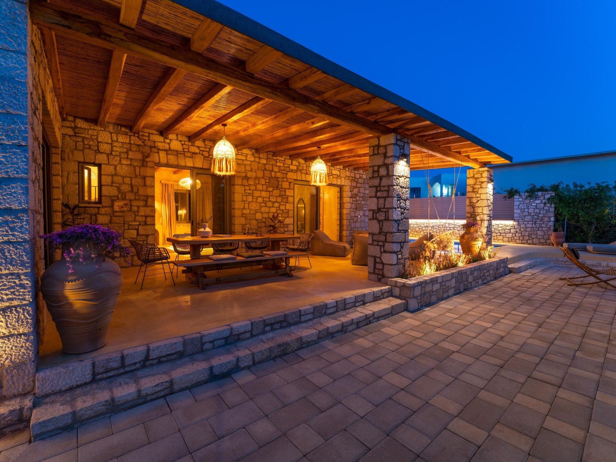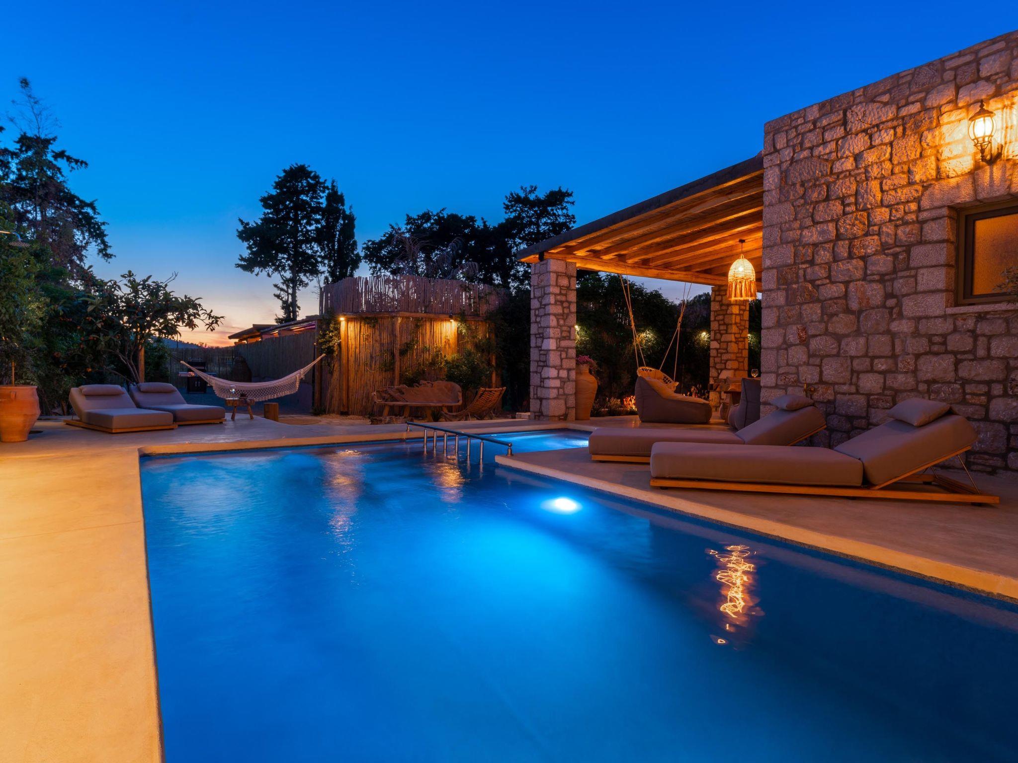 Eftopia Villa has 3 fully air-conditioned bedrooms with double beds in warm tones and a unique bohemian design. One of the bedrooms is outdoors and has its own door and bathroom .All bedrooms have ensuite bathrooms with showers. Also, there is a double sofa bed in the living room. The kitchen is fully equipped to accommodate your culinary habits, as well as your experiments with local products and recipes. The beautiful living room is inviting with incredible furniture and plenty and a dining area. There are smart TVs in each bedroom and free Wi-Fi throughout the property. All areas are carefully decorated in vibrant colors and textures. There’s free WIFI access throughout the property. The property’s outdoor space is a highlight on its’ own merit. You will enjoy your time at the private swimming pool and kids swimming pool.