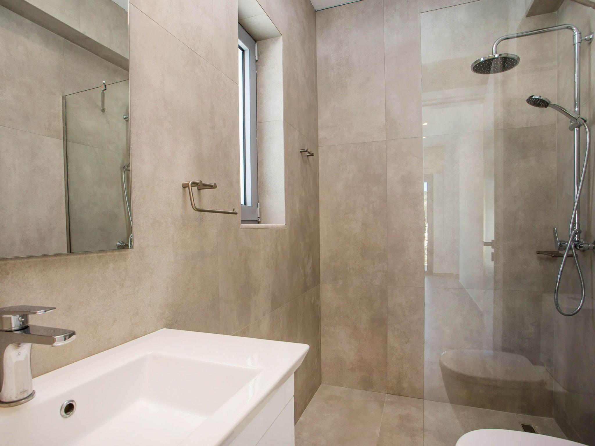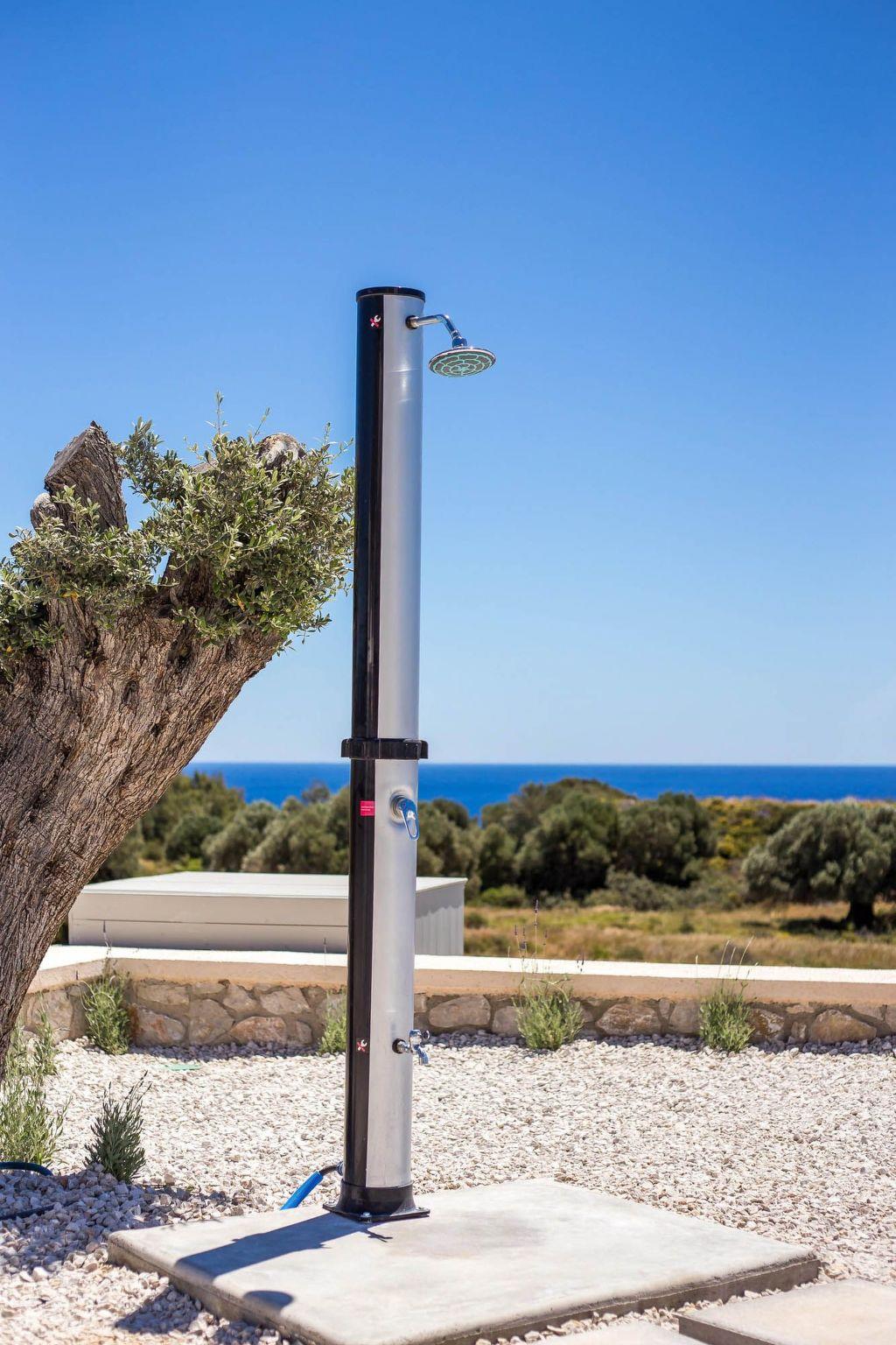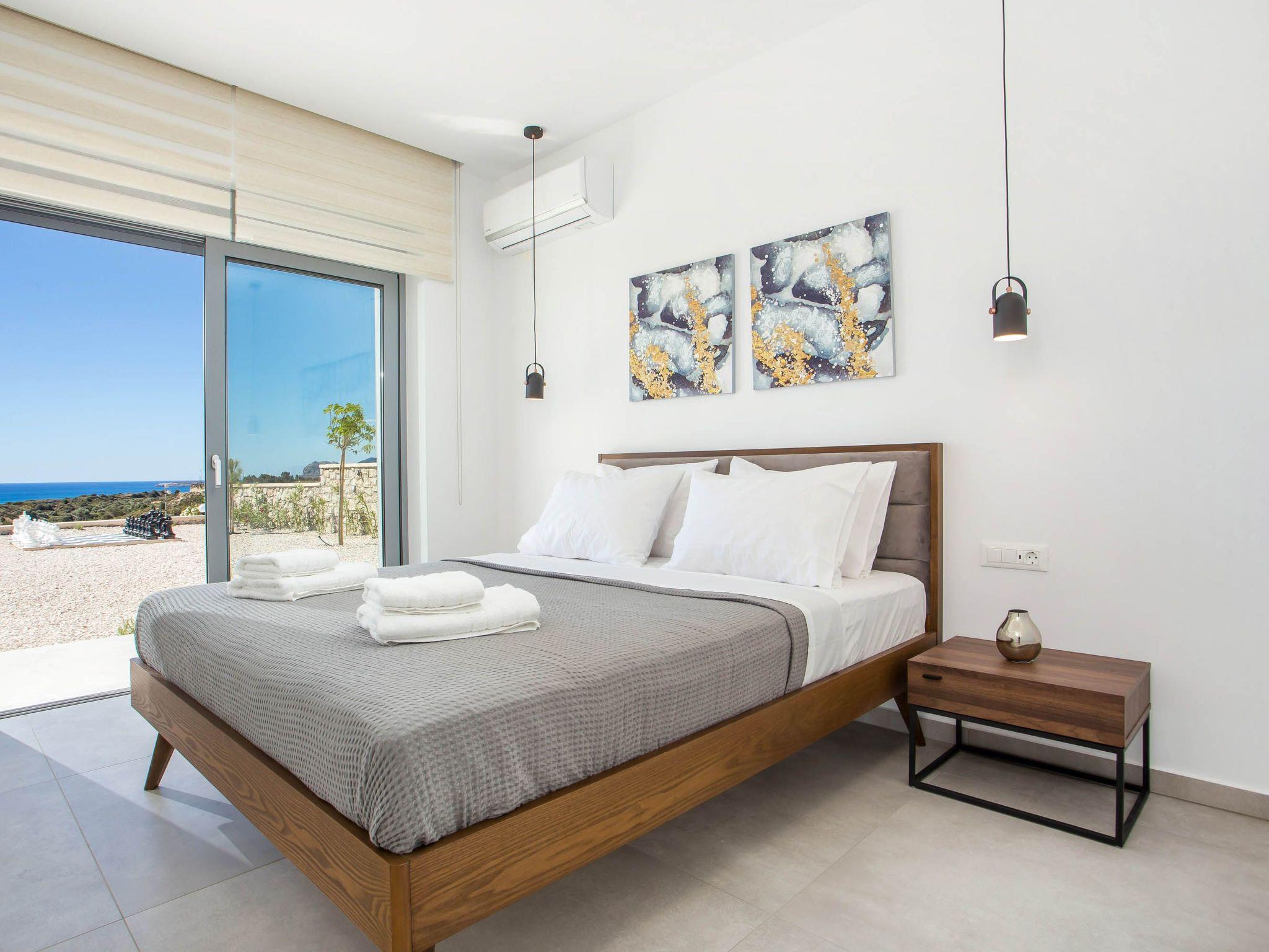 Your house in Rhodes combines comfort, relaxation, and luxury in a great location of Psalidi near all kinds of conveniences and places of interest. It offers a stunning private swimming pool and a contemporary design that will steal your heart. Also, the villa has an amazing view of the sea and is quite close to the cleanest beach of the island, Traganou beach, in only a 10-minute drive. Ideal for families and groups of friends, it accommodates up to 6 people.This stunning villa has 3 fully airconditioned bedrooms, one with a king-sized bed and 2 with double beds. Two of the bedrooms feature ensuite bathrooms with a shower. Also, there is a sharing bathroom with a shower as well. The decoration style in warm colors will make you relax and enjoy your holidays to the fullest. Guests will find a fully equipped kitchen suitable for any meal preparation as well as a seating area. Also, there is a living room with a smart Tv with cable channels and Netflix where you can relax and enjoy your company while arranging your next outdoor activity! All areas are fully air conditioned and there is free WIFI access throughout the property. Outdoors, there is a marvelous private swimming pool surrounded by its sunbeds and the breathtaking sea view. You can also find BBq facilities where you can prepare a delicious meal and have a gathering with your loved ones. Also, there’s an outdoor giant chess game for fun moments by the pool. And for those who don’t miss their workout even on vacation the villa provides you with outdoor gym equipment! This villa has everything you might need to feel comfortable and at home.