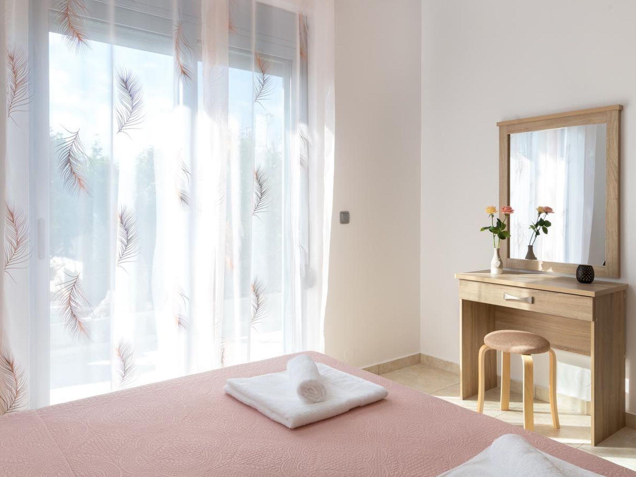 Ifigeneia Villa consists of 3 bedrooms, 2 of them have double beds and one of them 2 single beds. Also there is a comfy sofa bed. The design of the bedrooms is pretty pleasant and homelike. There are 2 bathrooms, one with a bathtub and one with a shower. There is an open plan kitchen accompanied from a cozy sitting area and a relaxing living room. The modern kitchen is fully equipped for any meal preparation. Guests will find a screen TV and will have free Wi-Fi access throughout the property. Also, there’s a ping pong table to enjoy fun moments. Outdoors, there’s the wonderful private swimming pool with its sunbeds for your ultimate relaxation. The surrounding is quite peaceful and inviting. Guests will find the BBQ facilities along with a cozy sitting area to enjoy a gathering with friends or family.