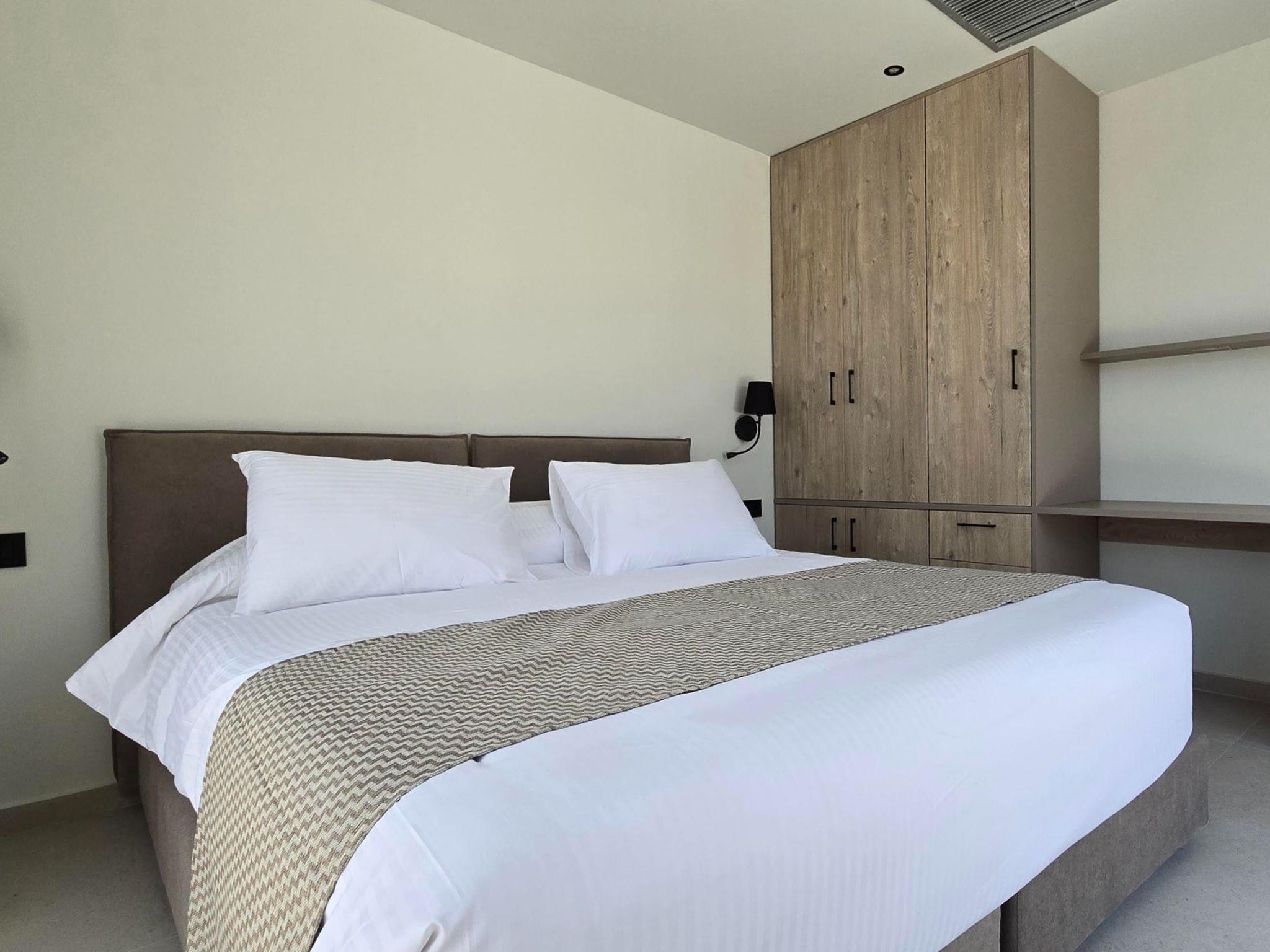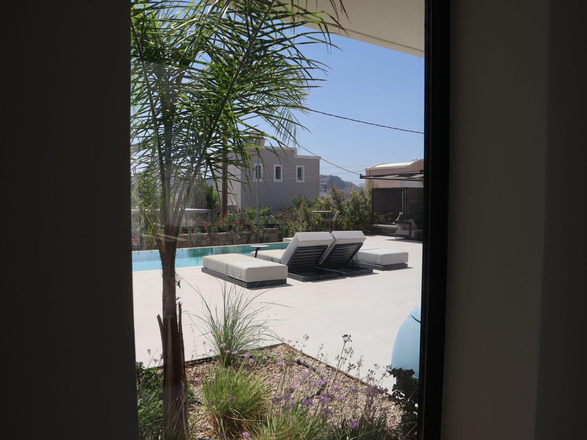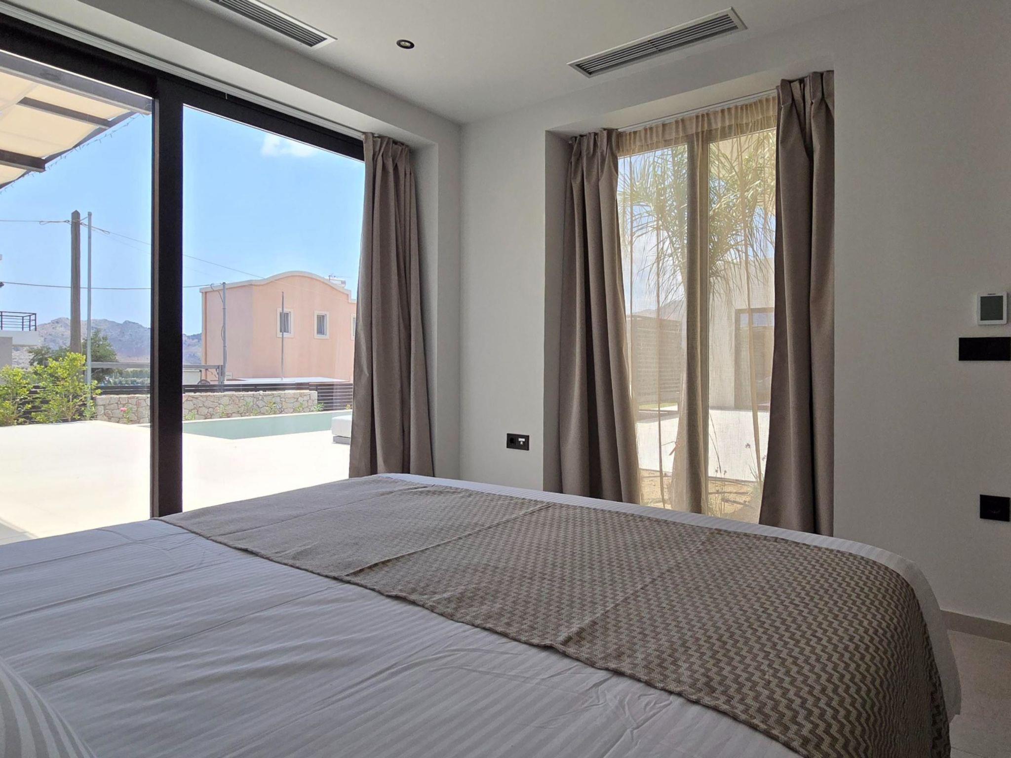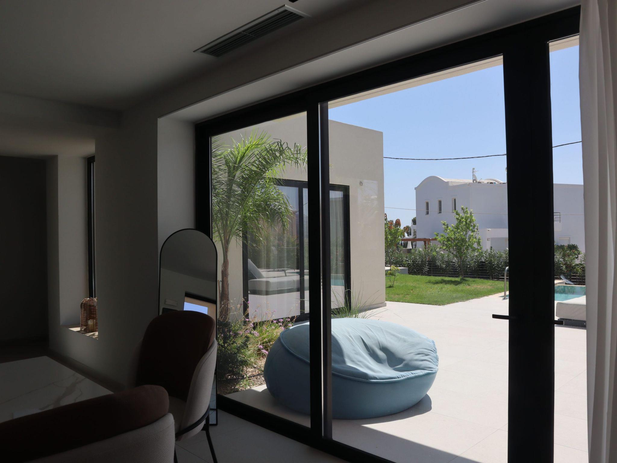 Welcome to the magic luxury living of Trapezia Villas. Trapezia Luxury Living boasts a stunning design that combines modern aesthetics with timeless elegance. Every detail is meticulously crafted to create a sophisticated and luxurious atmosphere. They offers expansive living spaces, including large living rooms, dining areas, and three fully equipped bedrooms with en-suite. The high ceilings and open floor plan enhance the sense of grandeur and provide ample room for relaxation and entertainment. All Trapezia villas are equipped with top-of-the-line amenities to ensure an unparalleled experience of luxury. From a fully-equipped outdoor gourmet kitchen to a private swimming pool and spa, every aspect of comfort and indulgence is taken care of. Trapezia Luxury Living is the epitome of opulence and sophistication, offering a truly exceptional living experience for those seeking the finest in accommodation.Type B villas are one floor detached luxury villa that hosts up to 6 guests. There are 3 fully air-conditioned bedrooms with unique decorations. All of the bedrooms offer ensuite bathrooms with a shower. There’s a fully equipped kitchen in warm colors, suitable for any meal preparation accompanied by the seating area and the living room. There’s a smart TV and free WIFI access throughout the property. Outdoors, there’s a private swimming pool and jacuzzi with sunbeds and a seating area where you can relax under the rays of the Aegean sun. You can spend your time by your private swimming pool or enjoy a fresh meal prepared in the BBQ installation. This amazing property and the beautiful location make the perfect match for a memorable stay and unforgettable holidays in Rhodes!