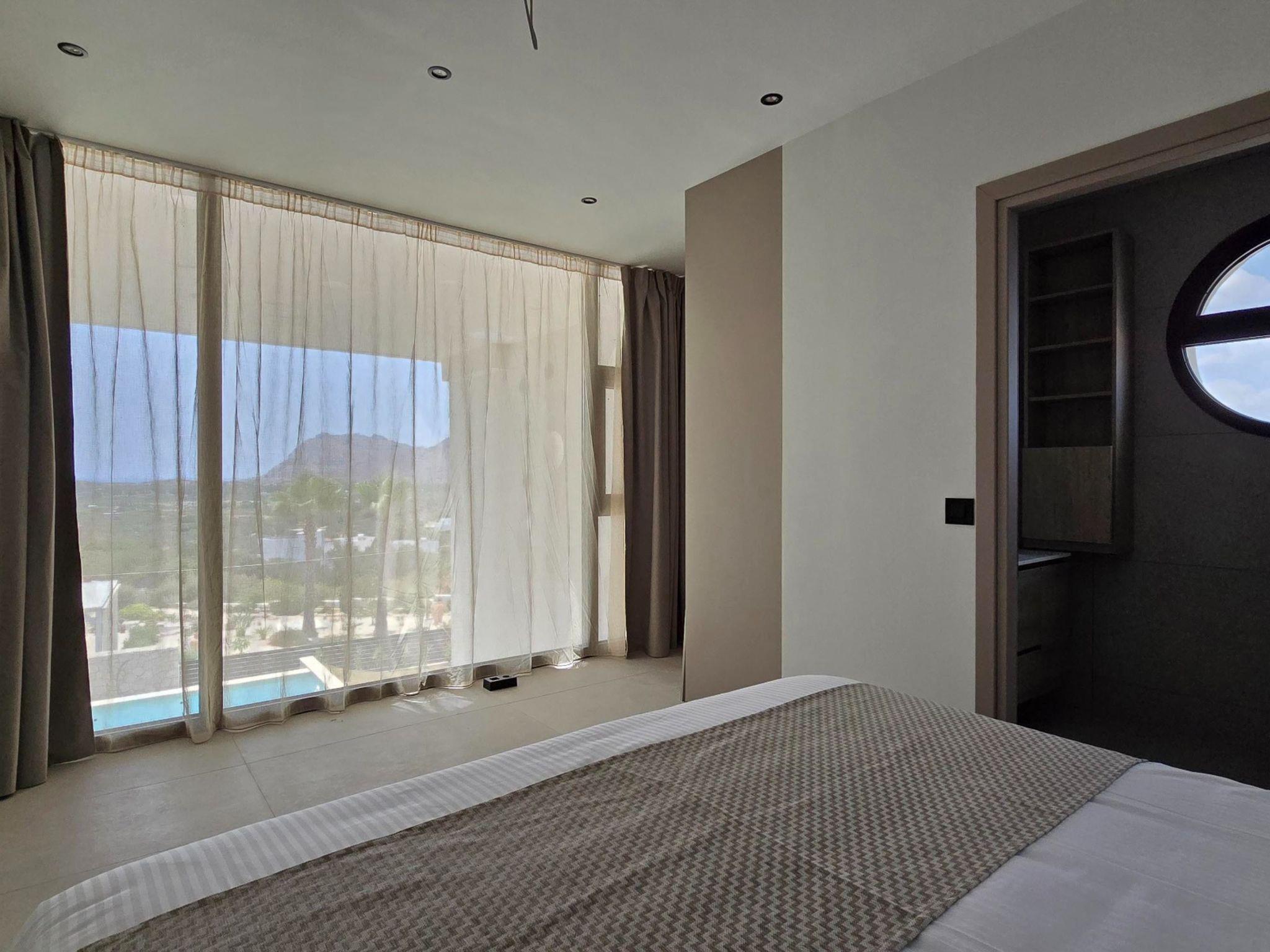 Welcome to the magic luxury living of Trapezia Villas. Trapezia Luxury Living boasts a stunning design that combines modern aesthetics with timeless elegance. Every detail is meticulously crafted to create a sophisticated and luxurious atmosphere. They offers expansive living spaces, including large living rooms, dining areas, and three fully equipped bedrooms with en-suite. The high ceilings and open floor plan enhance the sense of grandeur and provide ample room for relaxation and entertainment. All Trapezia villas are equipped with top-of-the-line amenities to ensure an unparalleled experience of luxury. From a fully-equipped outdoor gourmet kitchen to a private swimming pool and spa, every aspect of comfort and indulgence is taken care of. Trapezia Luxury Living is the epitome of opulence and sophistication, offering a truly exceptional living experience for those seeking the finest in accommodation.Type A villas are two floor luxury detached villas that hosts up to 6 guests.There are 3 fully air-conditioned bedrooms with unique decorations. All of the bedrooms offer ensuite bathrooms with a shower. There’s a fully equipped kitchen in warm colors, suitable for any meal preparation accompanied by the seating area and the living room. There’s a smart TV and free WIFI access throughout the property. Outdoors, there’s a private swimming pool and jacuzzi with sunbeds and a seating area where you can relax under the rays of the Aegean sun. The amazing outdoor kitchen with the dinning are promises memorable dinner’s under the Greek sky. You can spend your time by your private swimming pool or enjoy a fresh meal prepared in the BBQ installation. This amazing property and the beautiful location make the perfect match for a memorable stay and unforgettable holidays in Rhodes!