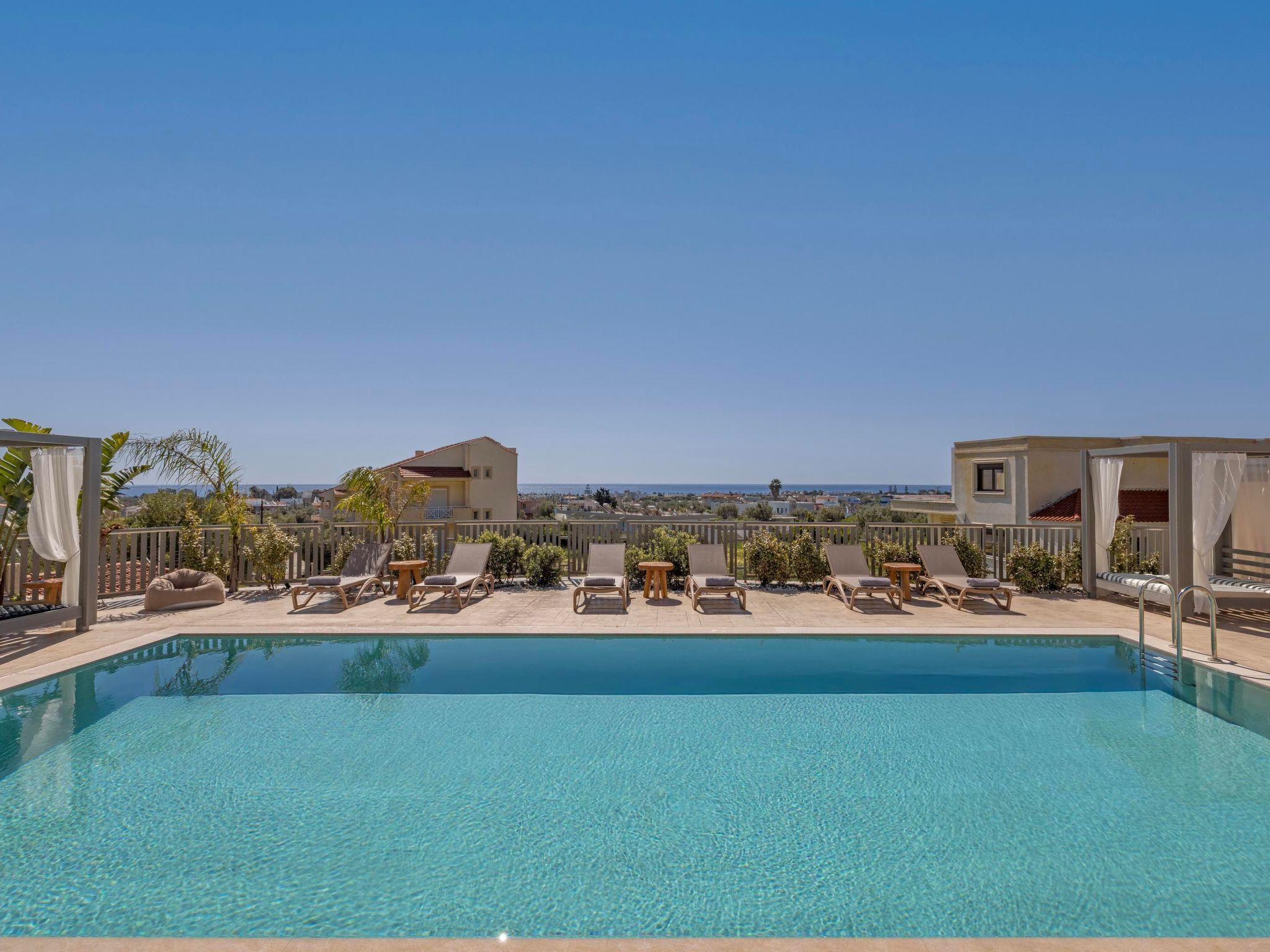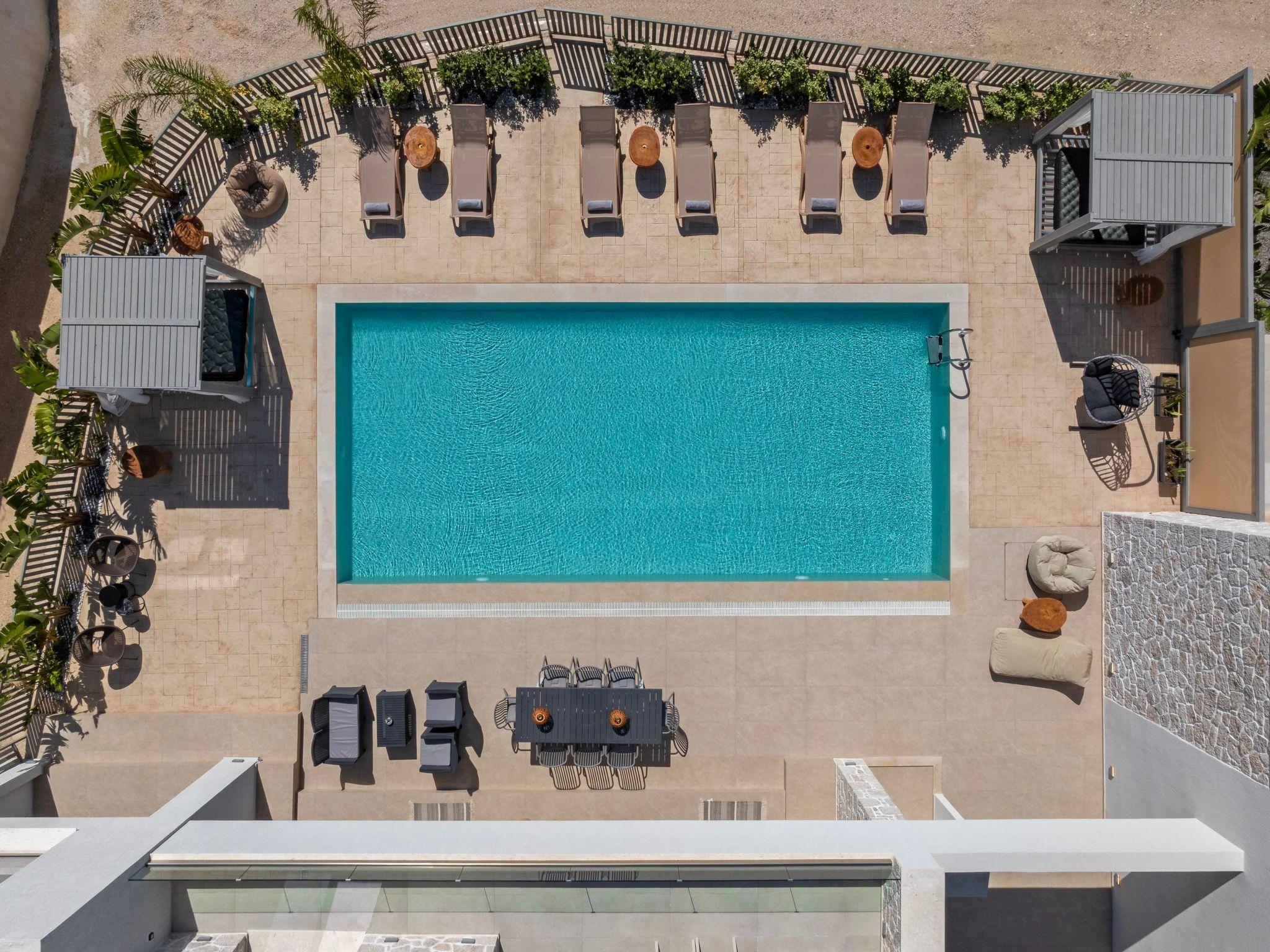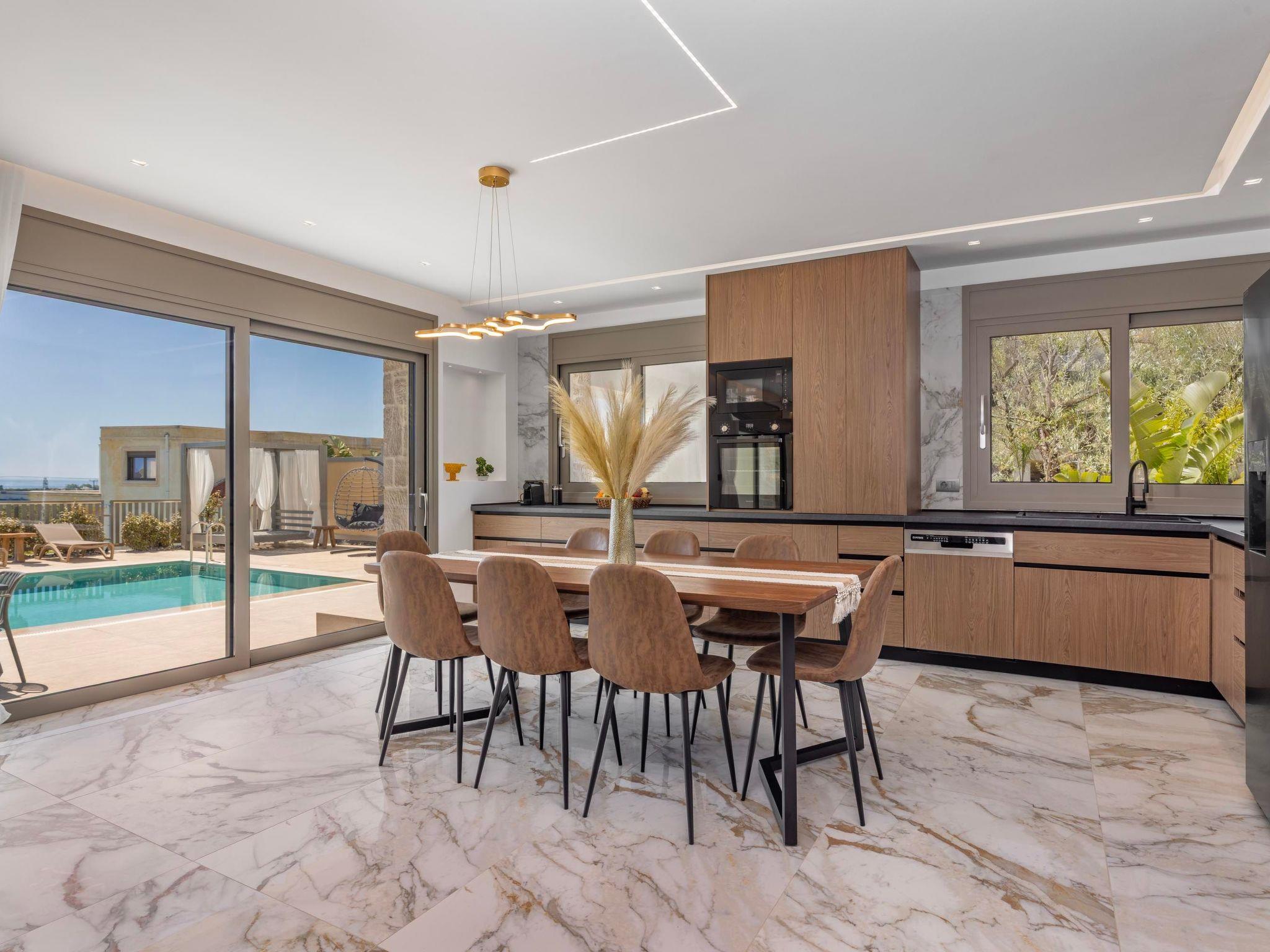 The fully equipped kitchen has everything you need to cook meals at home, and the cozy living area is great for spending time together. Outside, there’s a private pool, sunbeds with parasols, and a comfortable outdoor dining area.