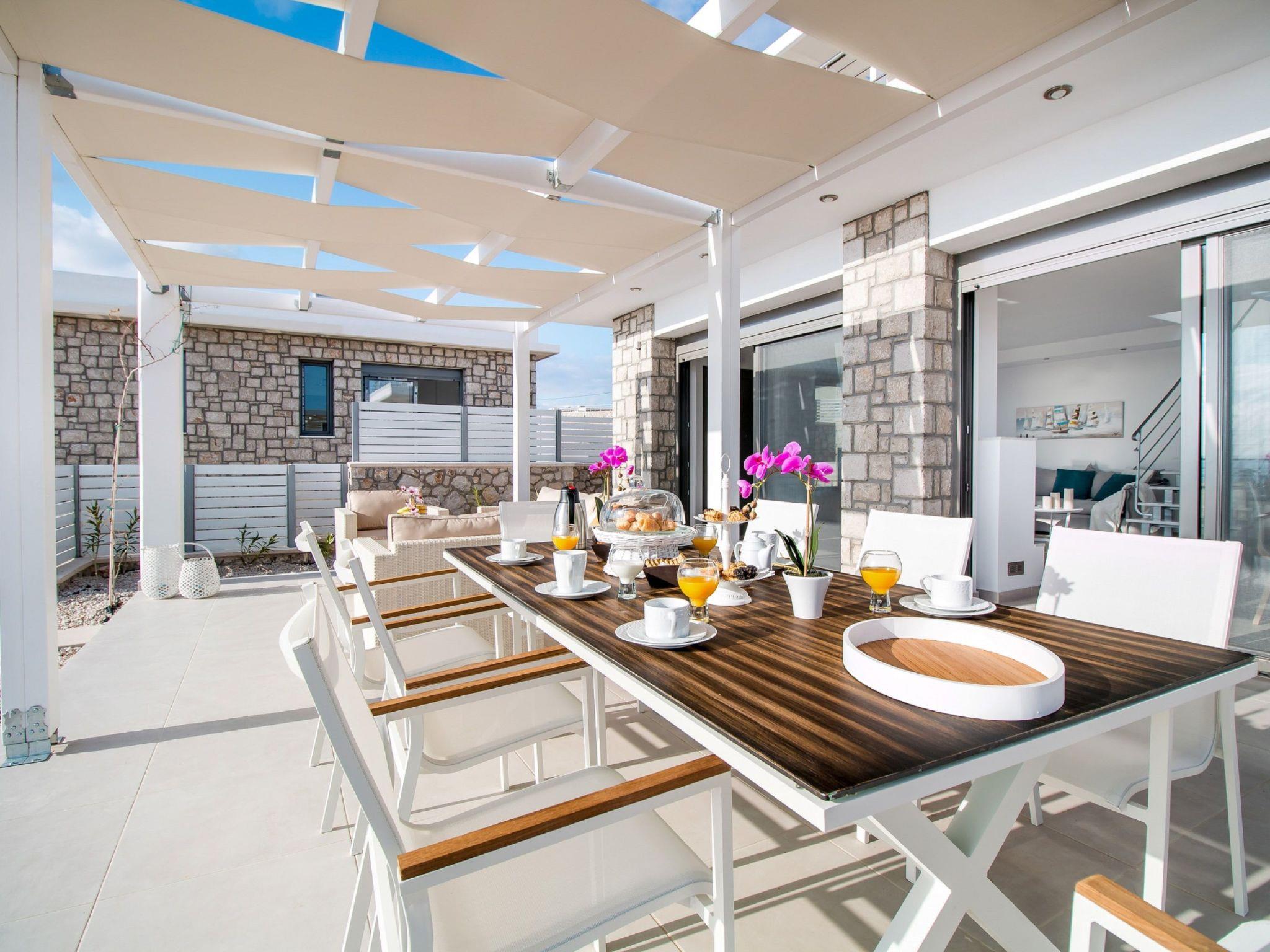 Gregorys Luxury Villa has an elegant style and large spaces. It offers 4 fully air-conditioned bedrooms with double beds and balconies. Also, it has 4 bathrooms with a shower, 3 of them are ensuite. The property has a fully equipped kitchen suitable for any meal preparation. Francis Luxury Villa has a spacious open plan living room with comfortable sitting areas designed for ultimate relaxation, equipped with flat screen TV, satellite channels and a surround sound system. Outdoors, there’s a private swimming pool surrounded by the sunbeds and the mesmerizing sea view and a sitting area. You can always prepare a meal at the BBQ facilities and enjoy a gathering with your loved ones especially recommended on the golden hours.