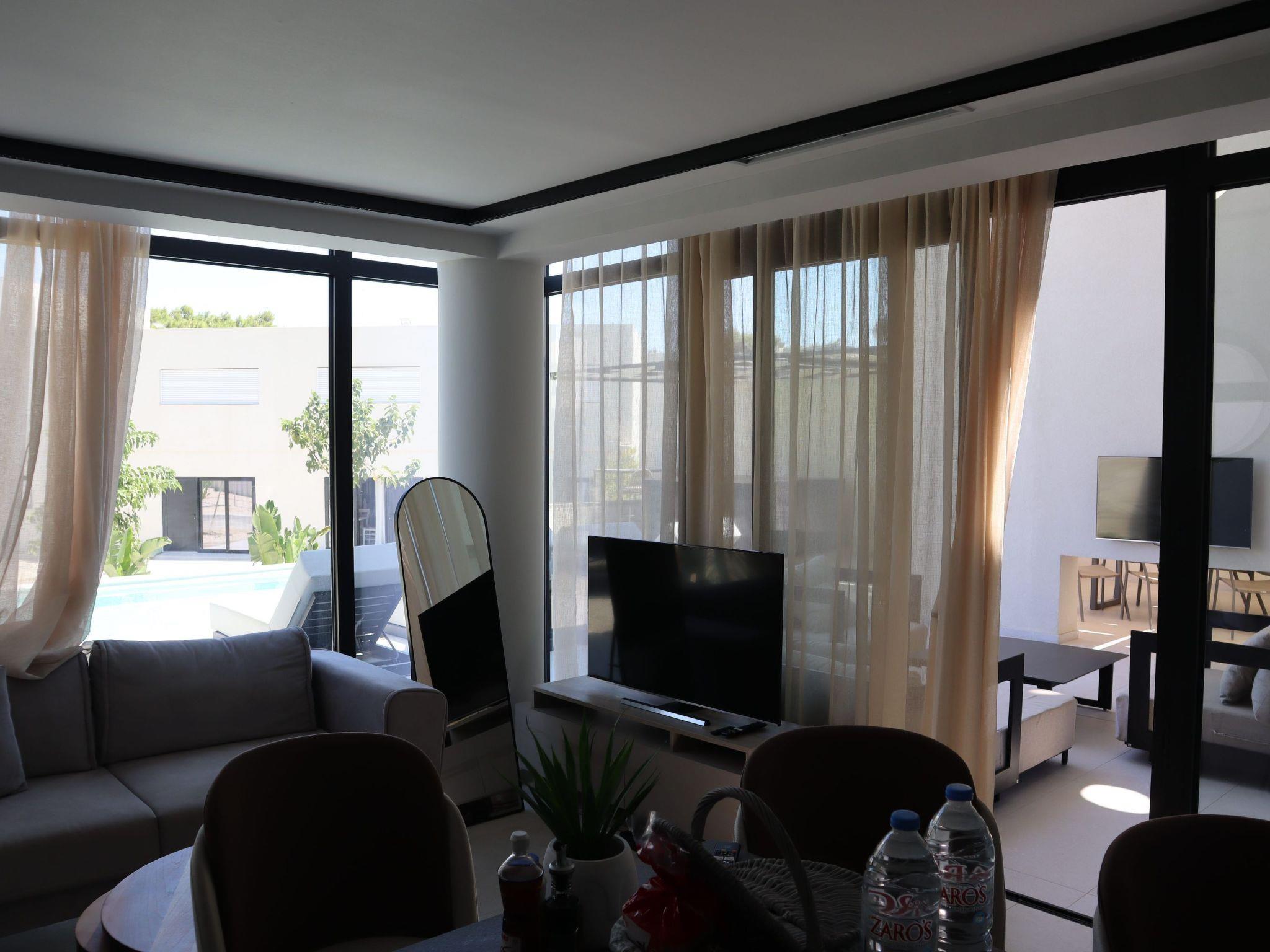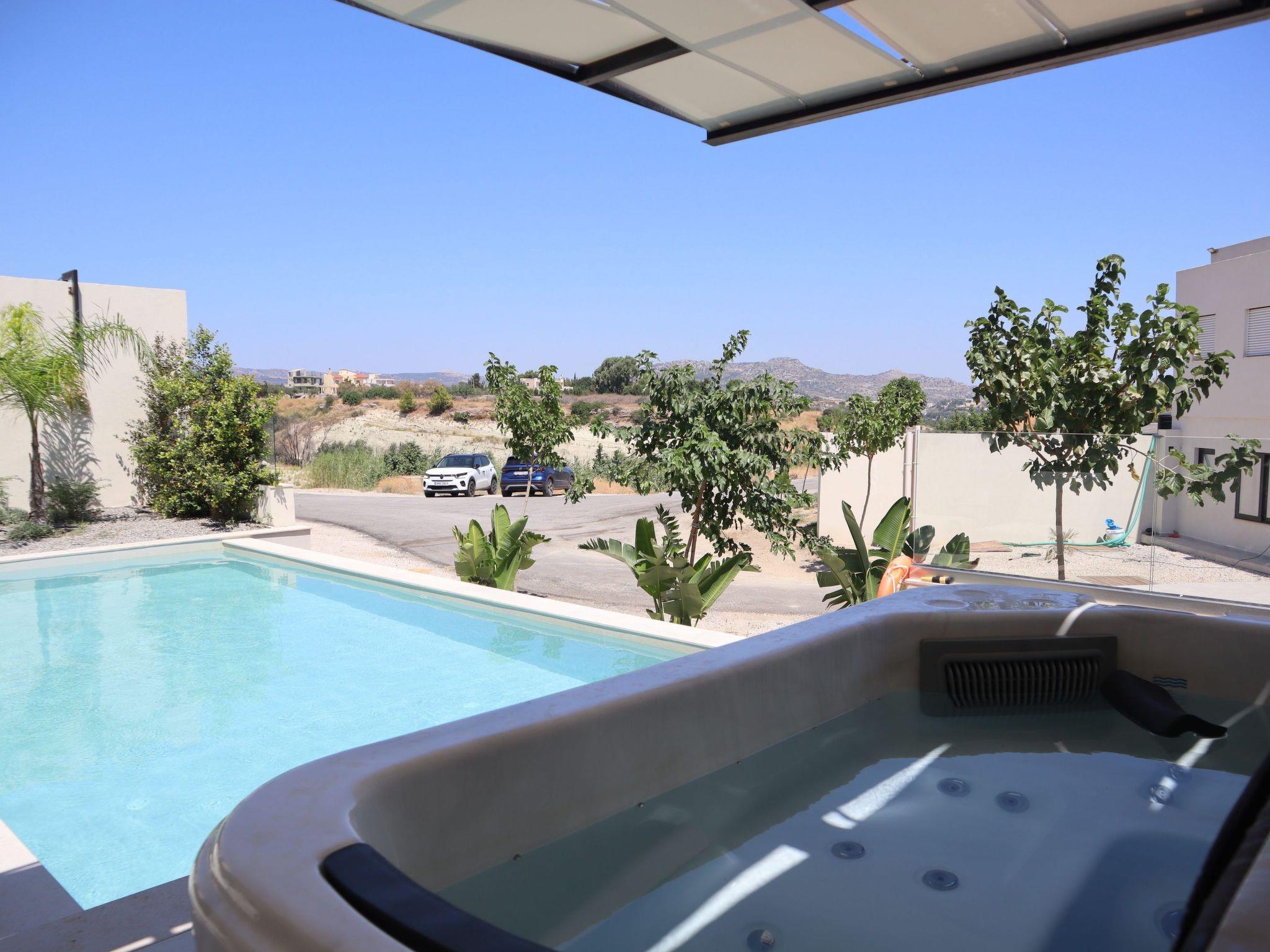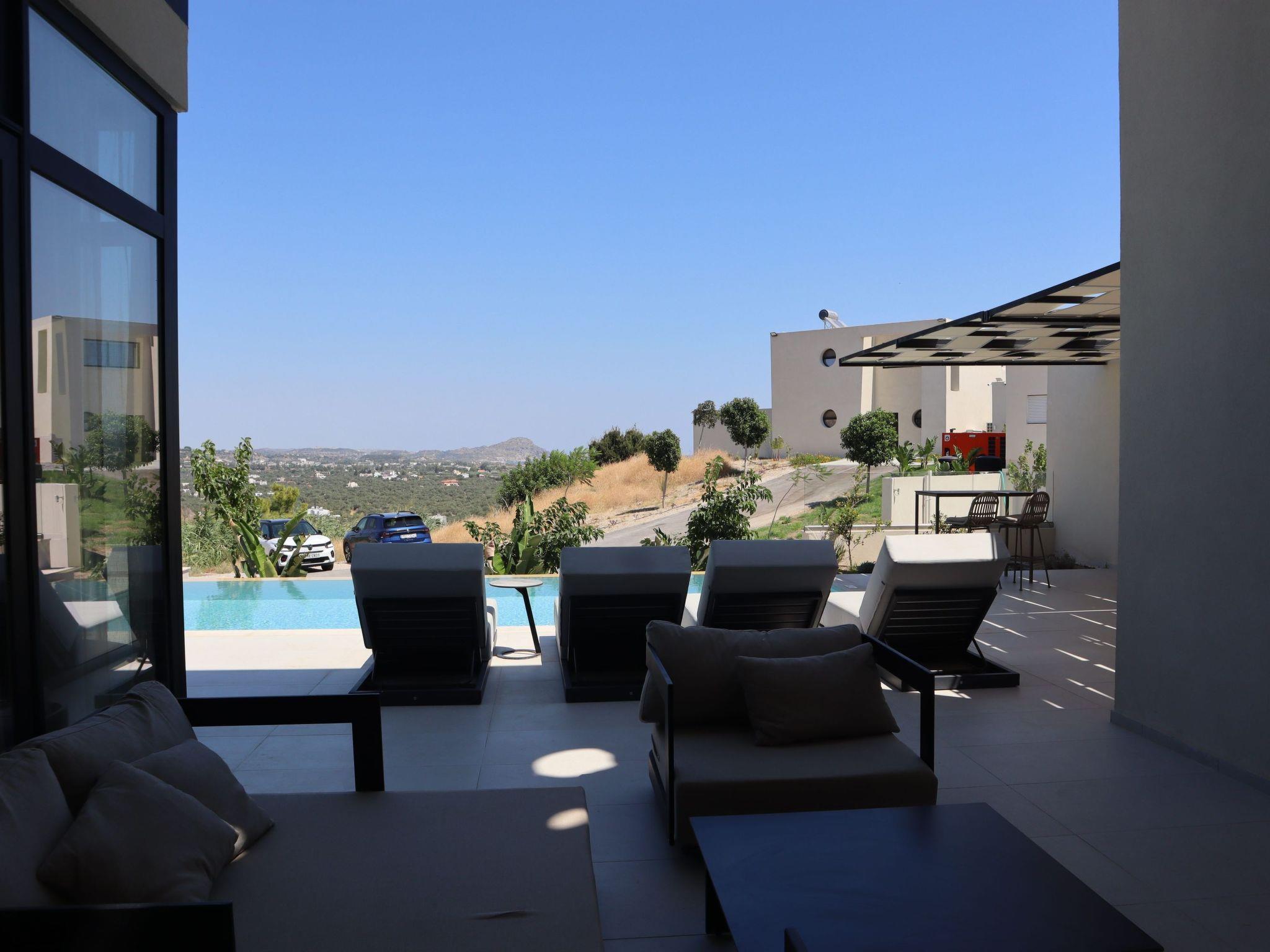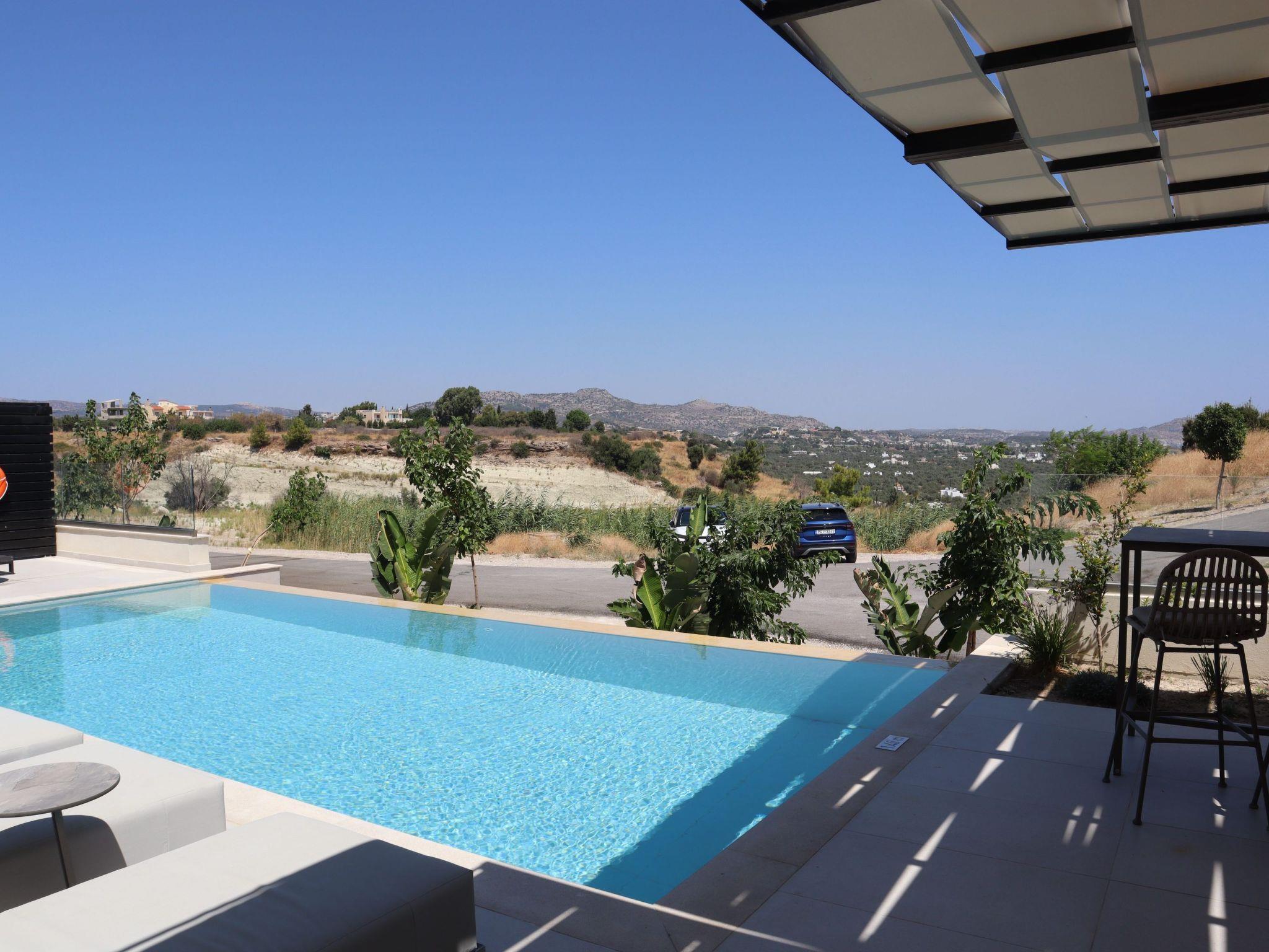 Welcome to the magic luxury living of Trapezia Villas. Trapezia Luxury Living boasts a stunning design that combines modern aesthetics with timeless elegance. Every detail is meticulously crafted to create a sophisticated and luxurious atmosphere. They offers expansive living spaces, including large living rooms, dining areas, and three fully equipped bedrooms with en-suite. The high ceilings and open floor plan enhance the sense of grandeur and provide ample room for relaxation and entertainment. All Trapezia villas are equipped with top-of-the-line amenities to ensure an unparalleled experience of luxury. From a fully-equipped outdoor gourmet kitchen to a private swimming pool and spa, every aspect of comfort and indulgence is taken care of. Trapezia Luxury Living is the epitome of opulence and sophistication, offering a truly exceptional living experience for those seeking the finest in accommodation.Type A villas are two floor luxury detached villas that hosts up to 6 guests.There are 3 fully air-conditioned bedrooms with unique decorations. All of the bedrooms offer ensuite bathrooms with a shower. There’s a fully equipped kitchen in warm colors, suitable for any meal preparation accompanied by the seating area and the living room. There’s a smart TV and free WIFI access throughout the property. Outdoors, there’s a private swimming pool and jacuzzi with sunbeds and a seating area where you can relax under the rays of the Aegean sun. The amazing outdoor kitchen with the dinning are promises memorable dinner’s under the Greek sky. You can spend your time by your private swimming pool or enjoy a fresh meal prepared in the BBQ installation. This amazing property and the beautiful location make the perfect match for a memorable stay and unforgettable holidays in Rhodes!