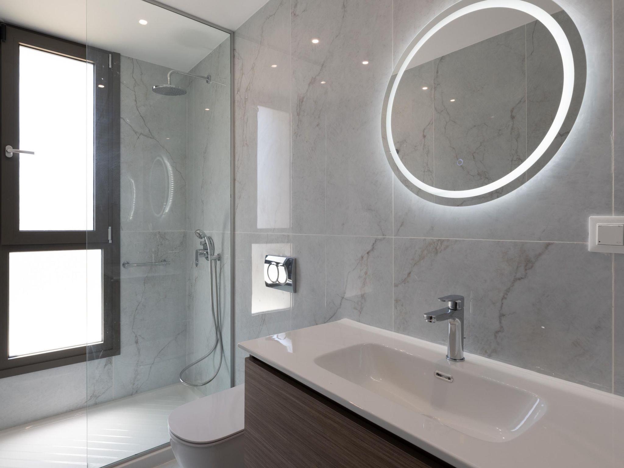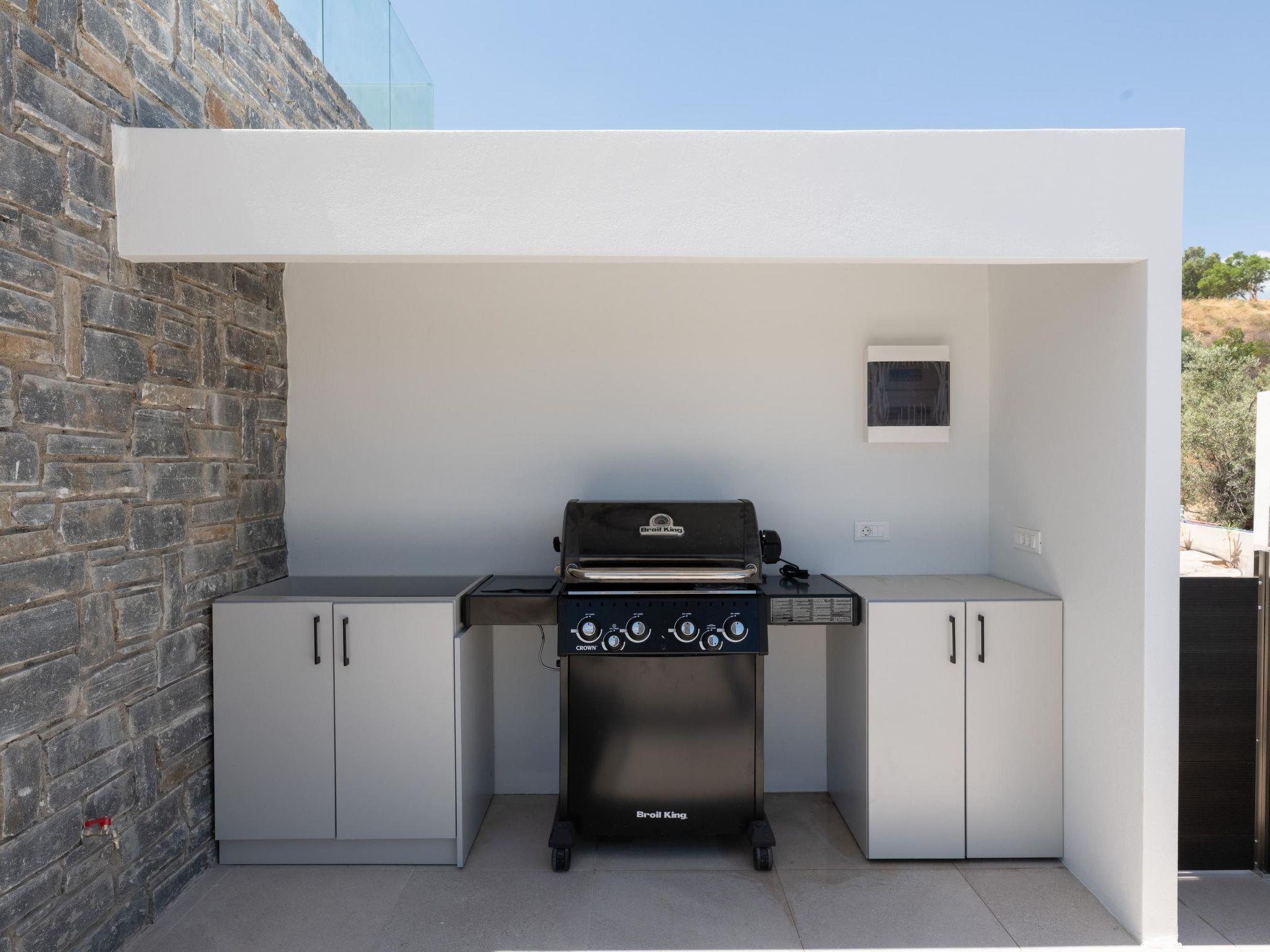 Outside, each villa boasts its own private swimming pool. Next to the pool, there are built-in sofas set at a lower level than the yard—almost at the same depth as the pool, but outside the water—creating a unique and cozy lounge area. The outdoor space also includes a lush garden with an outdoor kitchen, gas BBQ, comfortable dining and sitting areas, sunbeds, parasols, and garden furniture—everything you need to enjoy the sun and fresh air in complete privacy. Private parking is available with space for up to four cars, adding to your convenience.