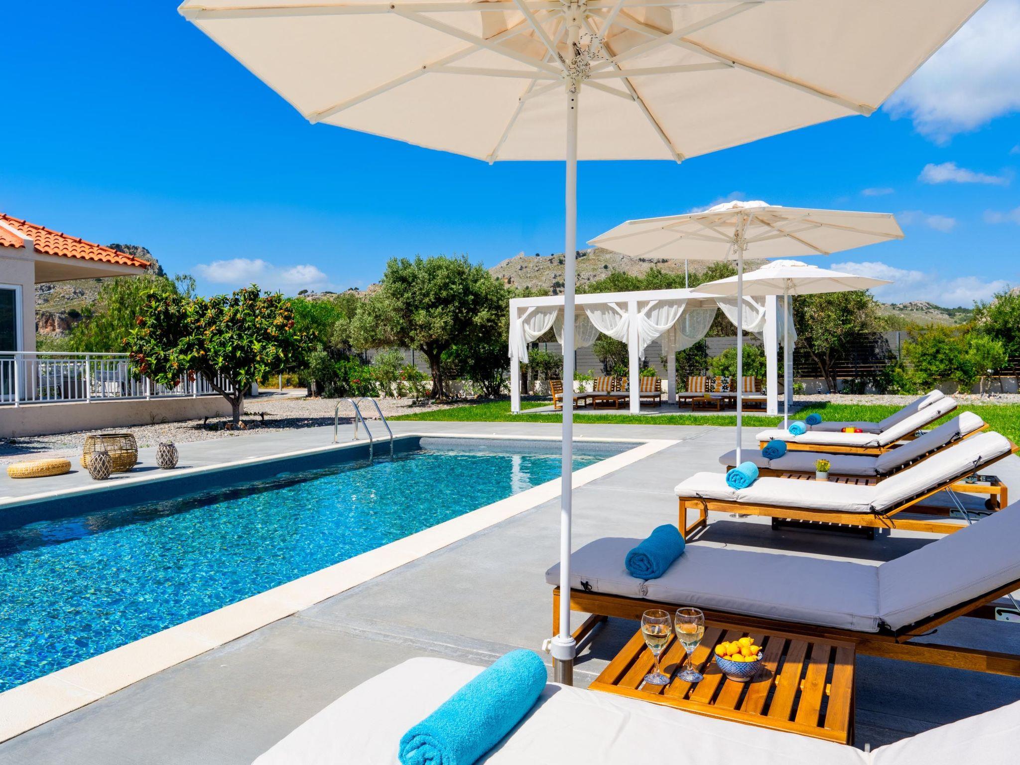 Eternity Villa in Kolympia, Rhodes, welcomes up to 7 guests. This spacious retreat offers modern amenities, including a private pool and lush garden. With multiple bedrooms and bathrooms, it ensures comfort and privacy for families or groups. Enjoy serene surroundings and easy access to nearby attractions during your stay.