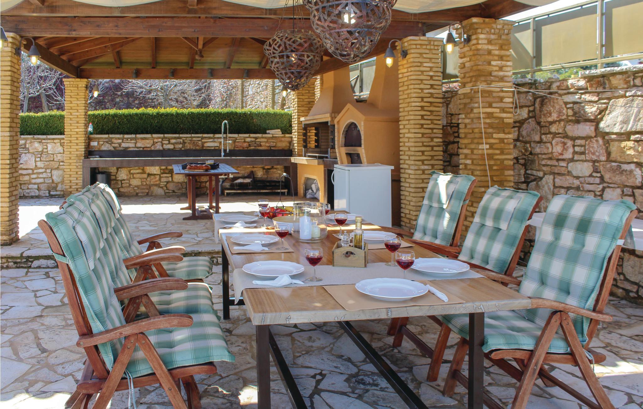 Nyd jeres morgenmad eller frokost i det overdækkede grillområde eller se solnedgangen med et glas lækkert vin fra poolområdet. Den dejlige grund giver en følelse af privatliv og ro. En terrasse med et stort spisebord, et stort grillområde og en privat swimmingpool omgivet af grønne, frodige områder hører bare til nogle få af de mange dejlige faciliteter ved denne skønne ferievilla.
