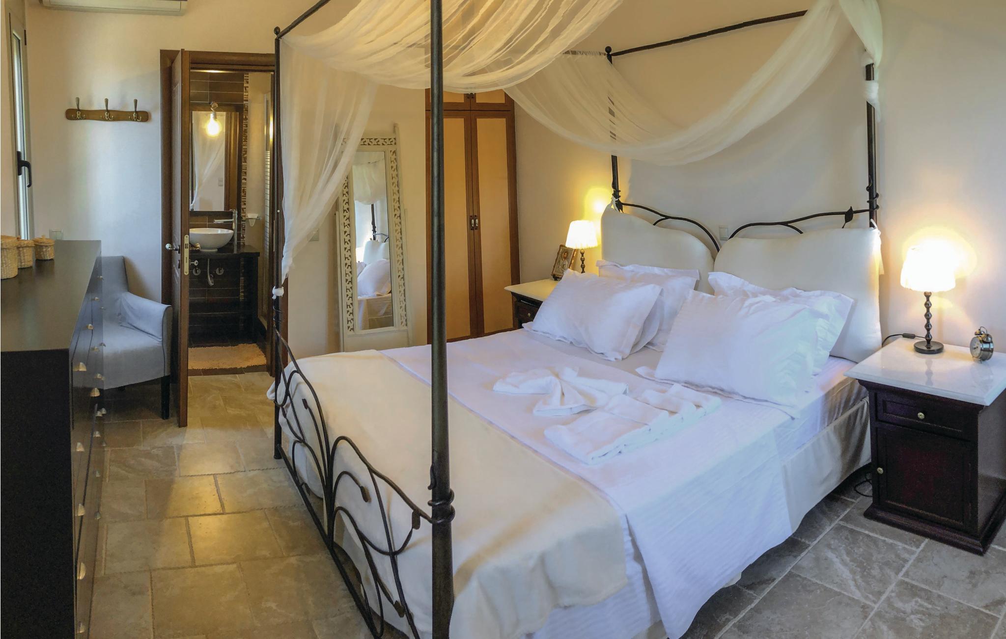 En fantastisk ferievilla til en skøn familieferie. Den ligger i en stor have omgivet af træer, og er beliggende i byen Koroni. Villaen forener luksus og komfort, og tilbyder alt hvad I kan ønske jer på ferien. Her findes fem soveværelser med plads til 12 personer, endvidere to køkkener med spiseområde og to charmerende opholdsstuer. Udsigten over den Messeniske Bugt fra balkonen på første etage er helt fantastisk.