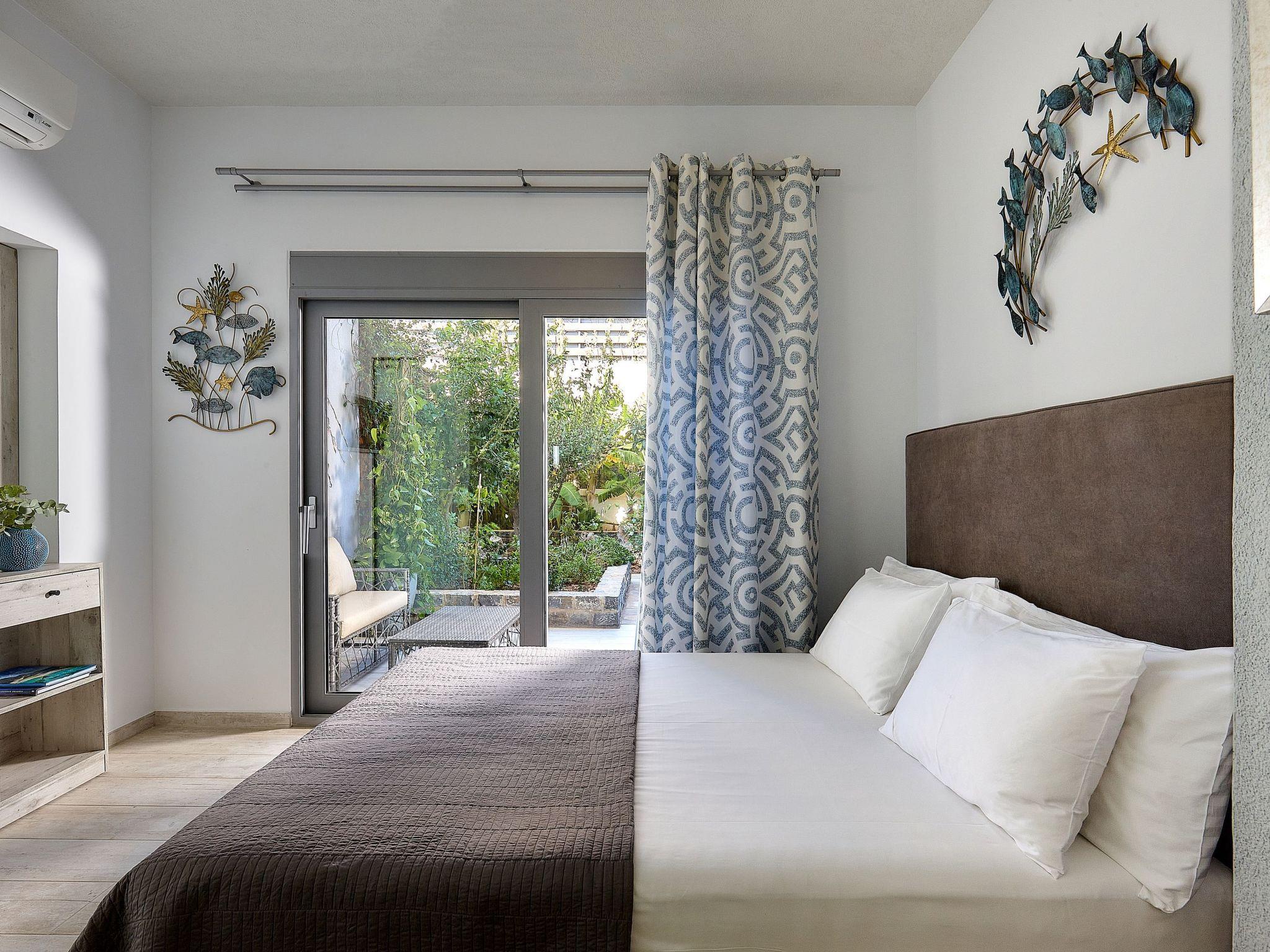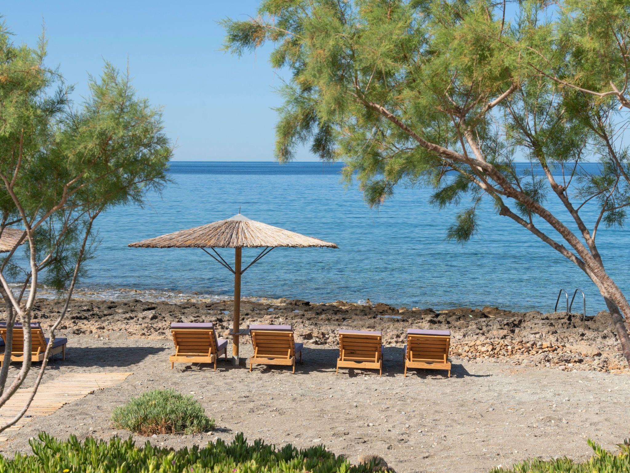 The property overlooks the crystal-clear, blue waters of the Mediterranean sea - a beautiful rocky horizon ideal for swimming, sunbathing, surfing, and other water sports. It is located in Koutsourás, a quiet, agricultural village in South-Eastern Crete. It is less than 2 km west of the tourist town of Makry Gialos, 23 km east of Ierapetra, and 33 km from Sitia.