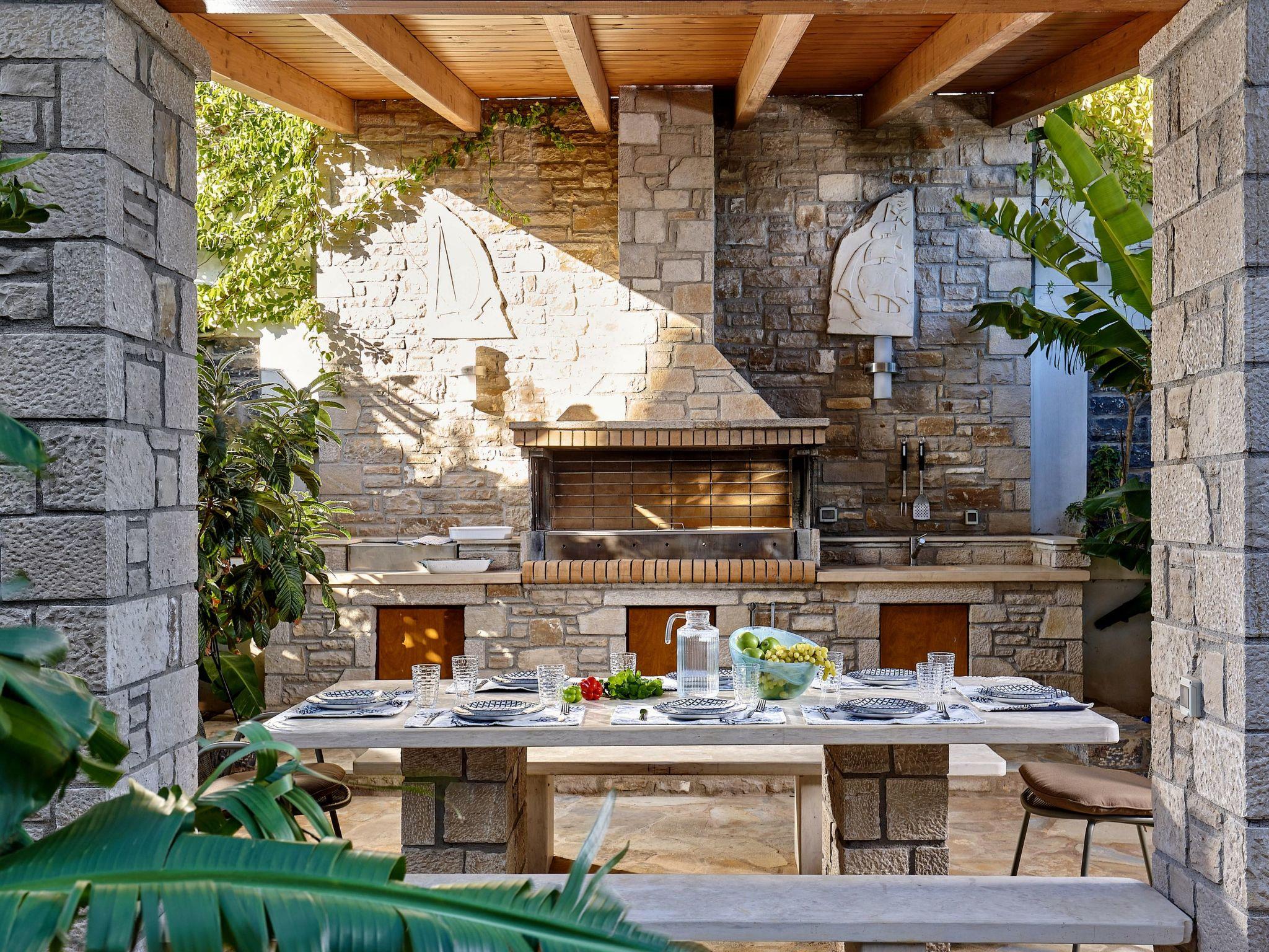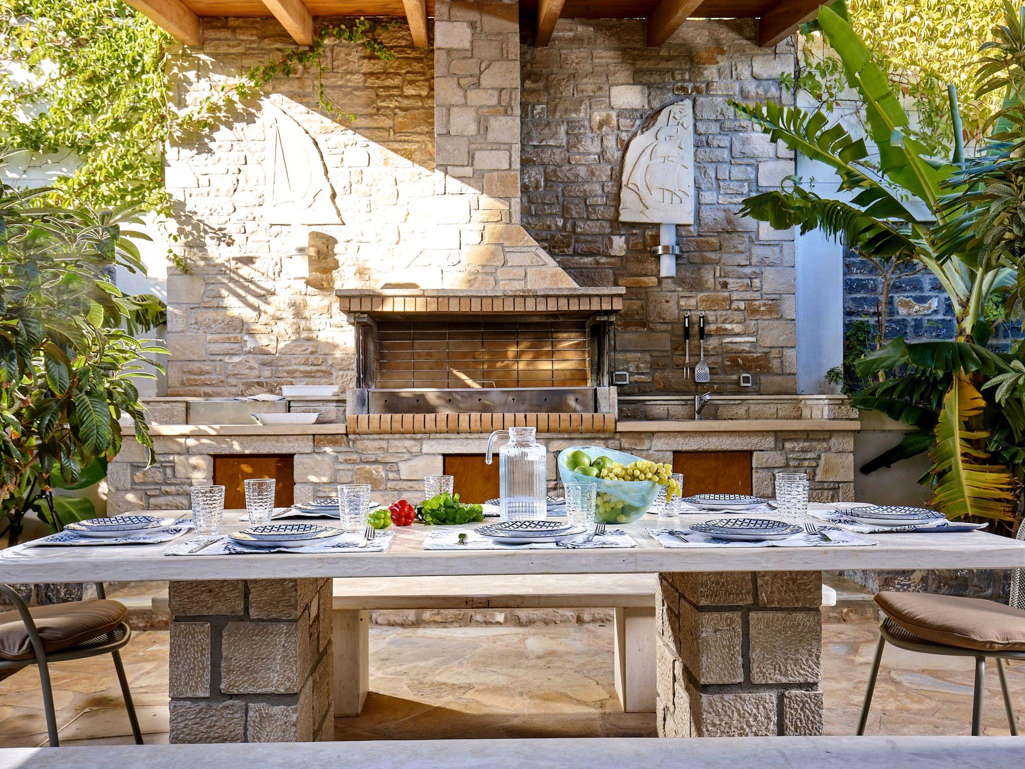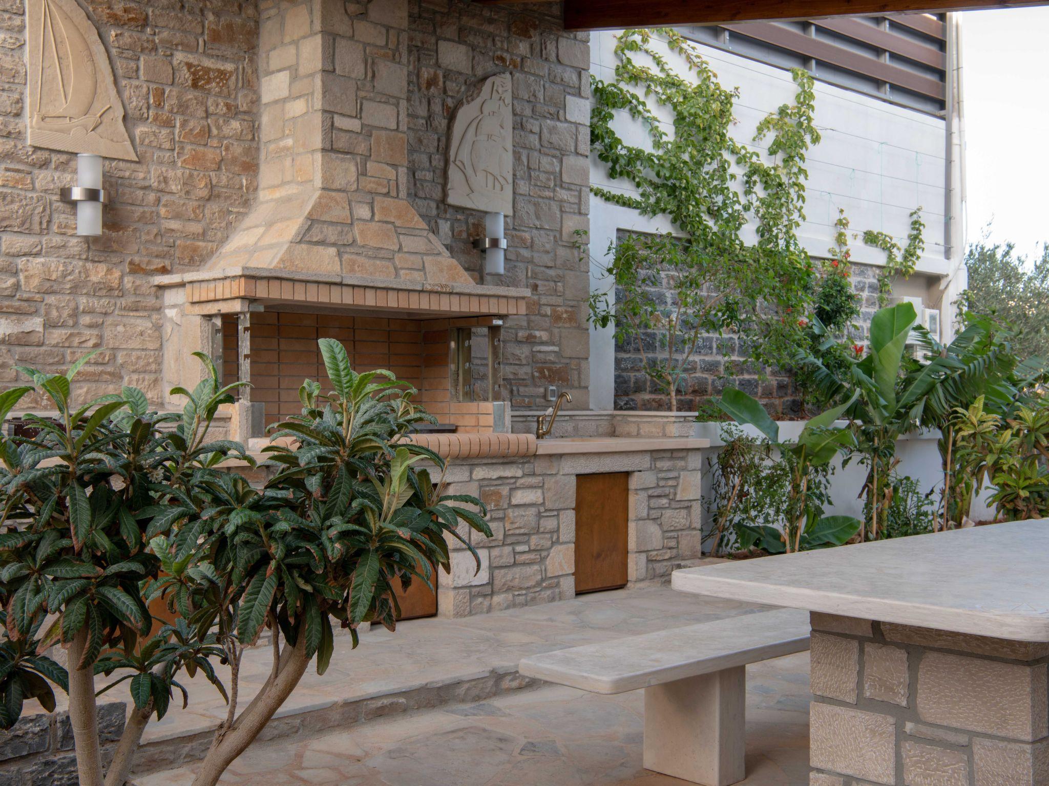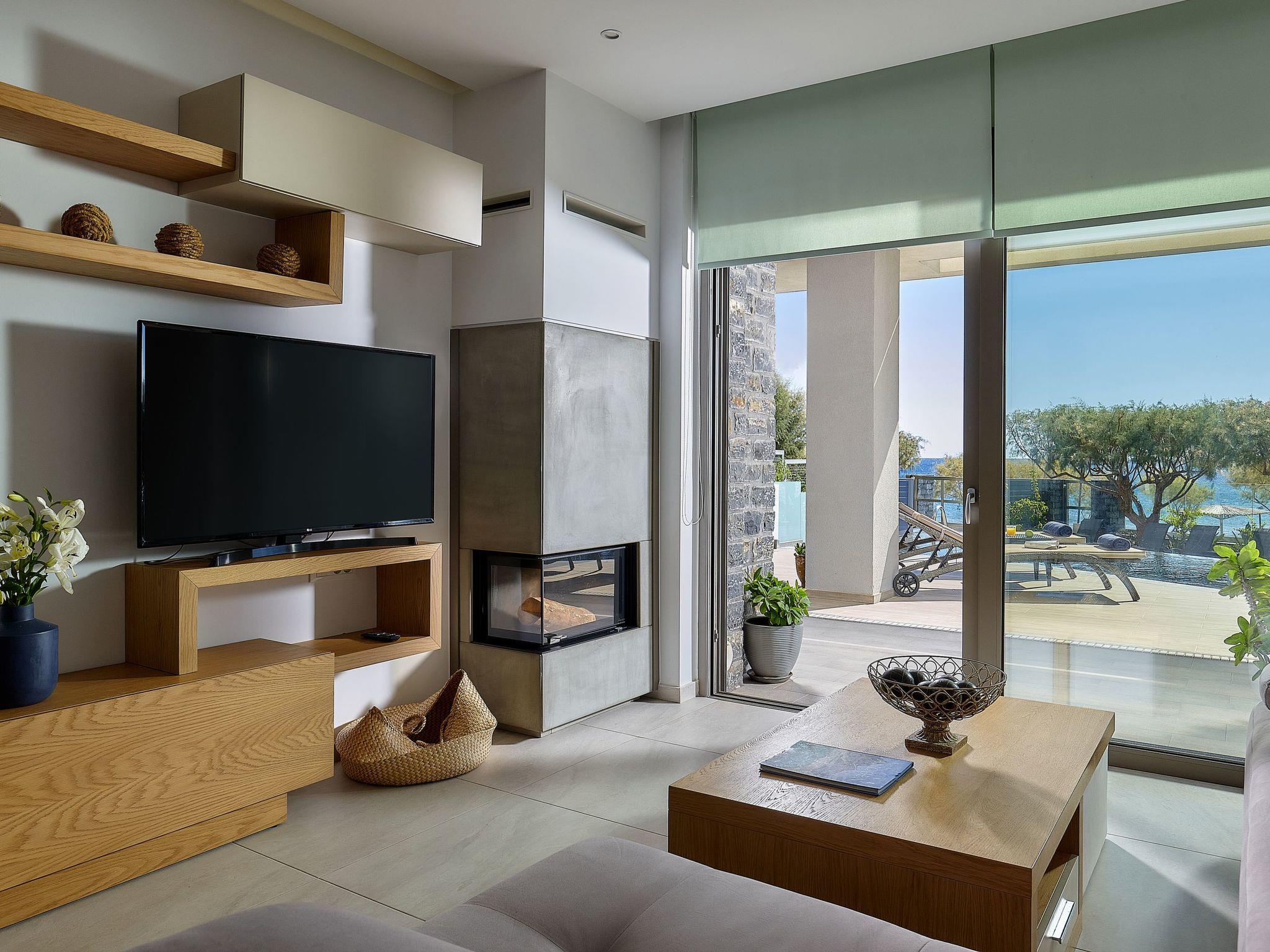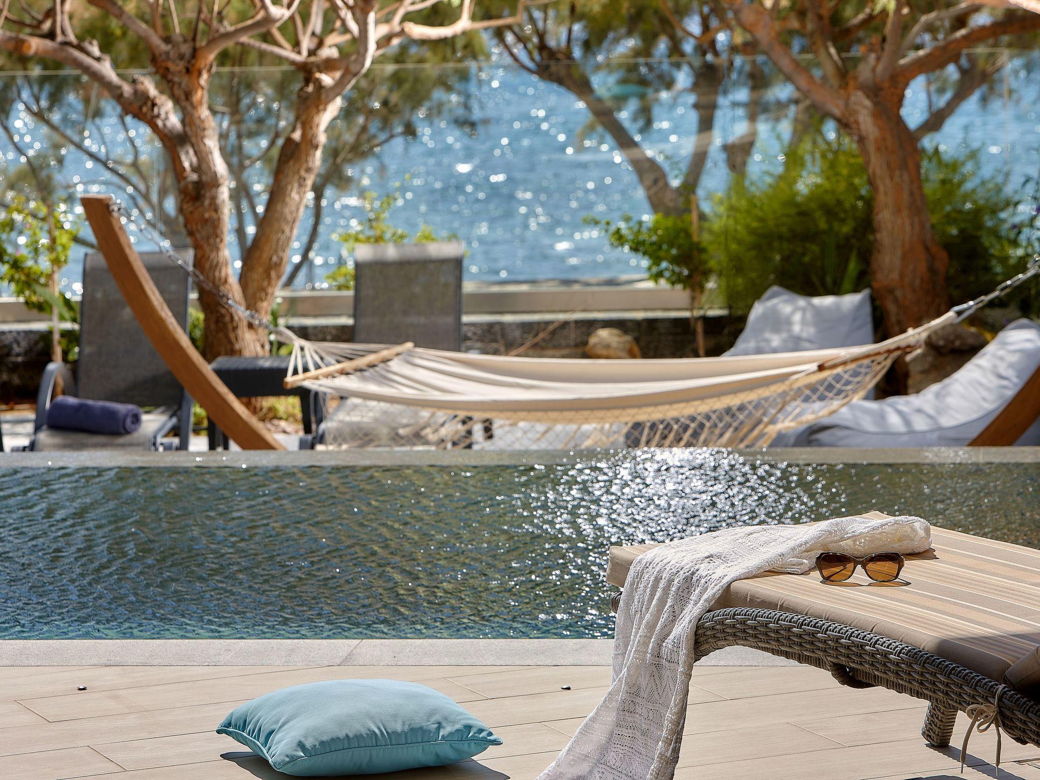 In a tranquil agricultural southeast Crete village, this secluded 5-bedroom, 4 bathroom offers luxury living in front of the pool with beautiful views of sea, moon on water & sunset. Enjoy the private infinity pool & adjoining spa, BBQ, games, bicycles. Less than 4 min walk to modern comforts & beach. The outdoor area boasts panoramic sea views that blend into the local landscape and many unique architectural and environmentally friendly features throughout. This luxury 5-bedroom, 4-bathroom rental is the entire ground floor, split into a 4 bedroom sea-front condo and a garden studio with its own living room and patio. Complete privacy, no shared areas.