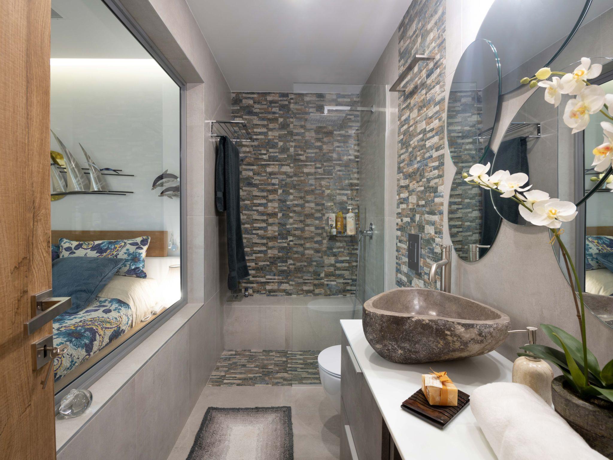 The top floor penthouse of designer Moonlight waterfront villa - elegance and seclusion. This 5-bedroom, 5 bathroom penthouse offers secluded serenity, as if the rest of the world no longer exists. Breath-taking, panoramic views of sea, moon on water & sunset. Enjoy private hot spa on balcony, BBQ, games, bicycles & bike path. Less than 5 min walk to pebble beach with bars and restaurants.