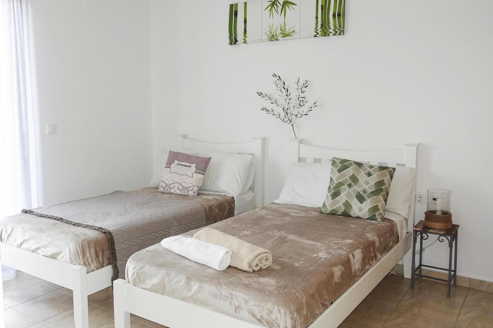 Nyd den fantastiske udsigt over havet, vinmarkerne og olivenlundene. Dette lille feriehus imponerer med sin venlige, moderne indretning og det smukt anlagte udendørsområde med privat pool. Den lille, charmerende landsby Kyrianna ligger i den nordlige del af øen Kreta. Med sin naturlige mangfoldighed tilbyder stedet et perfekt sted at slappe af. Byen Rethymnon, som også er den tredjestørste by på øen, ligger kun 15 kilometer væk. Et højdepunkt i byen er det 858 meter høje Vrysinas. Detaljer: WLAN velkomstpakke Aktiviteter i nærheden: Kvarteret byder på mange aktiviteter for natur-, vandre- og sportsentusiaster til at træne, slappe af og slappe af Ikke egnet til personer med nedsat mobilitet