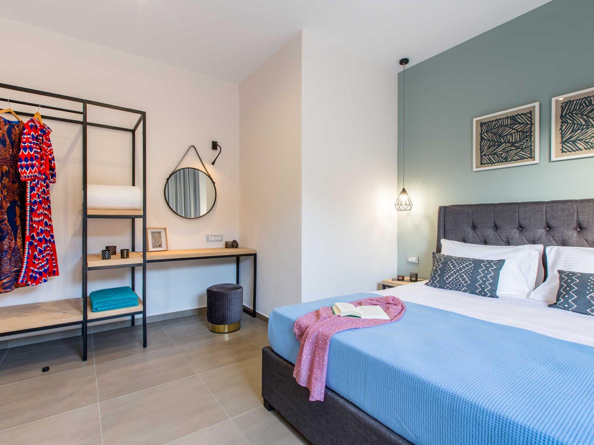 Bedroom 5: Double size bed (1.60x2.00), A/C, 32’’ Smart Satellite TV, ensuite bathroom with shower, hairdryer, open type closet