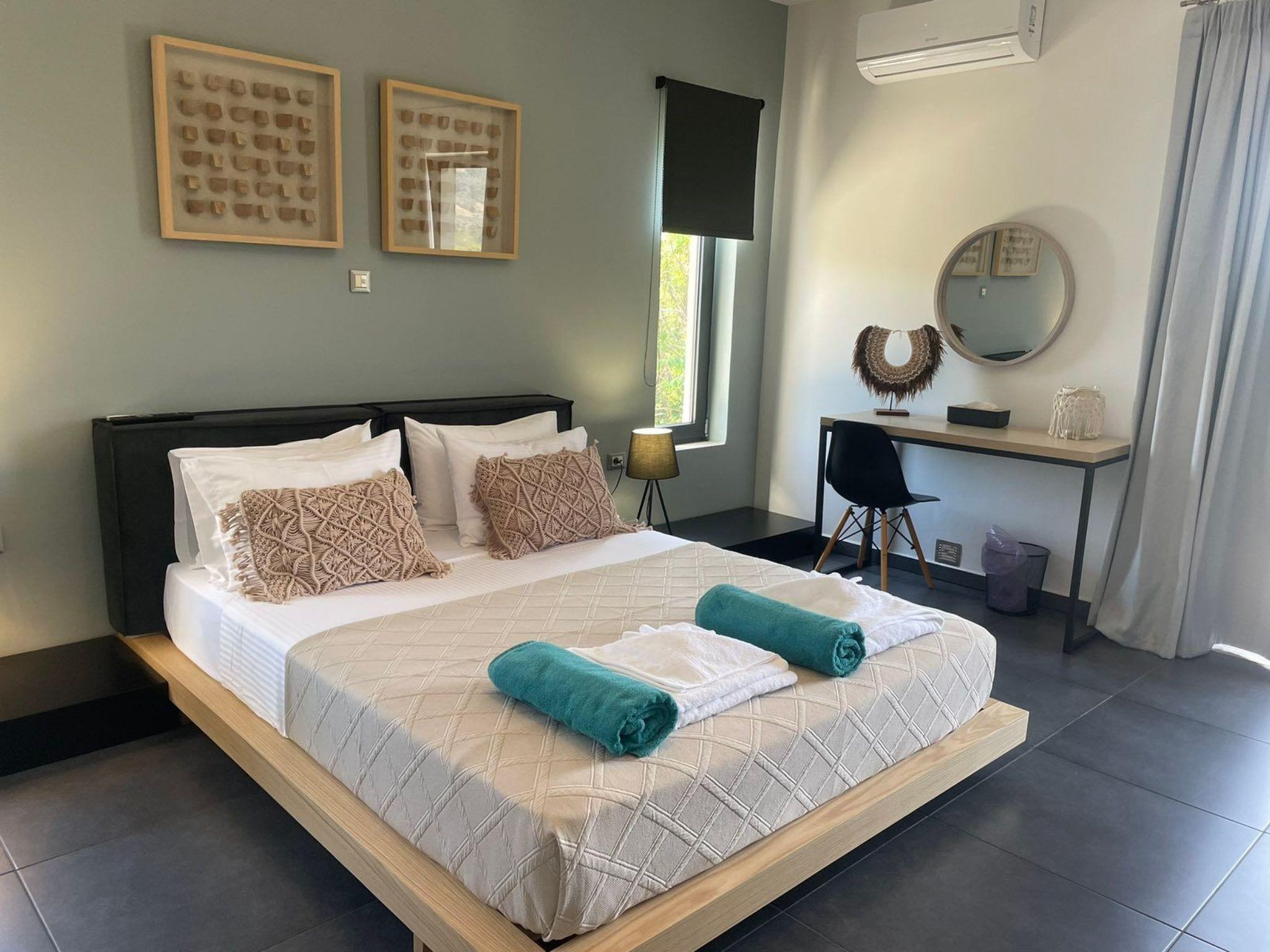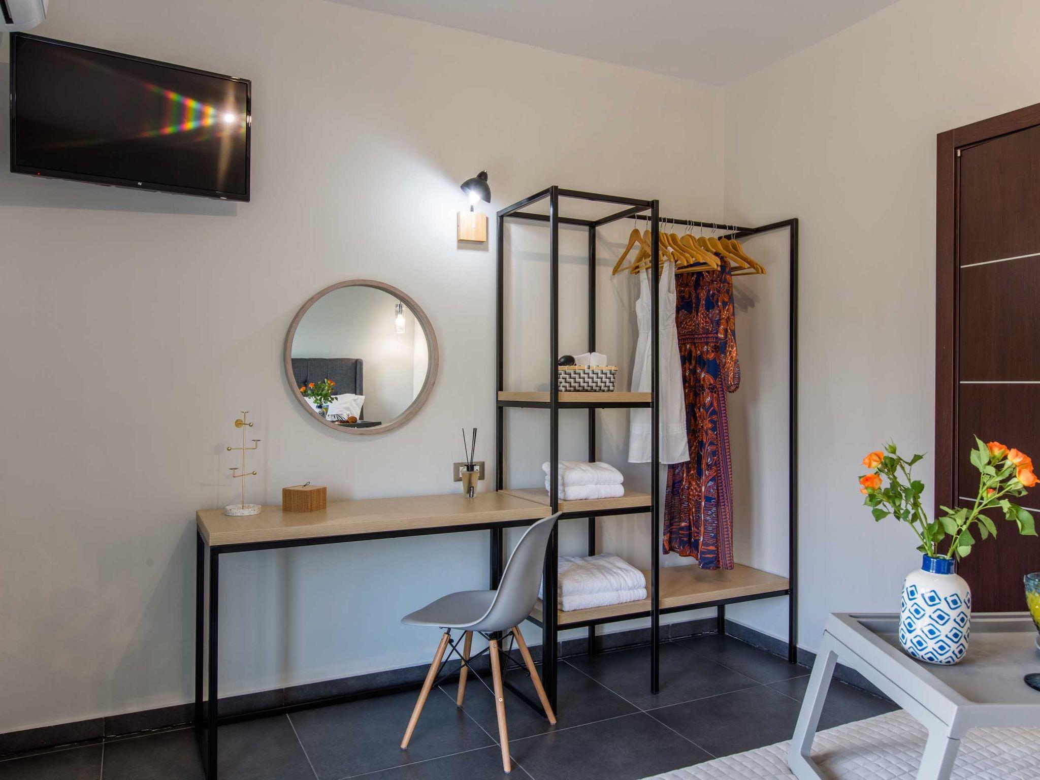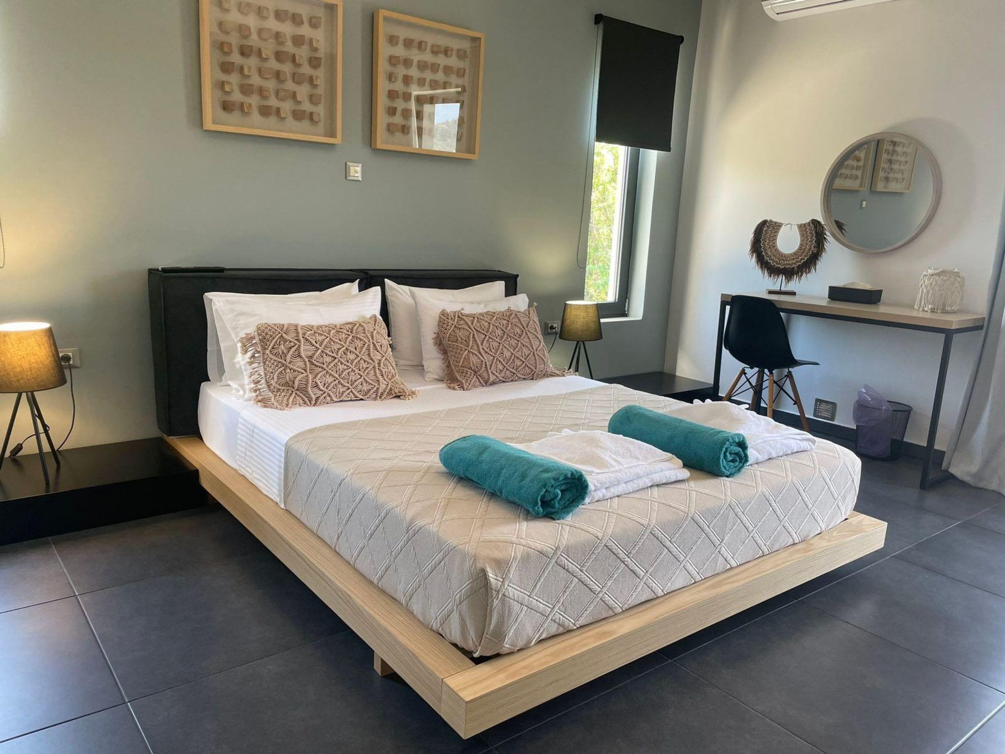Bedroom 1: Double size bed (1.60x2.00), A/C, 32’’ Smart Satellite TV, direct access to the pool area, open type closet