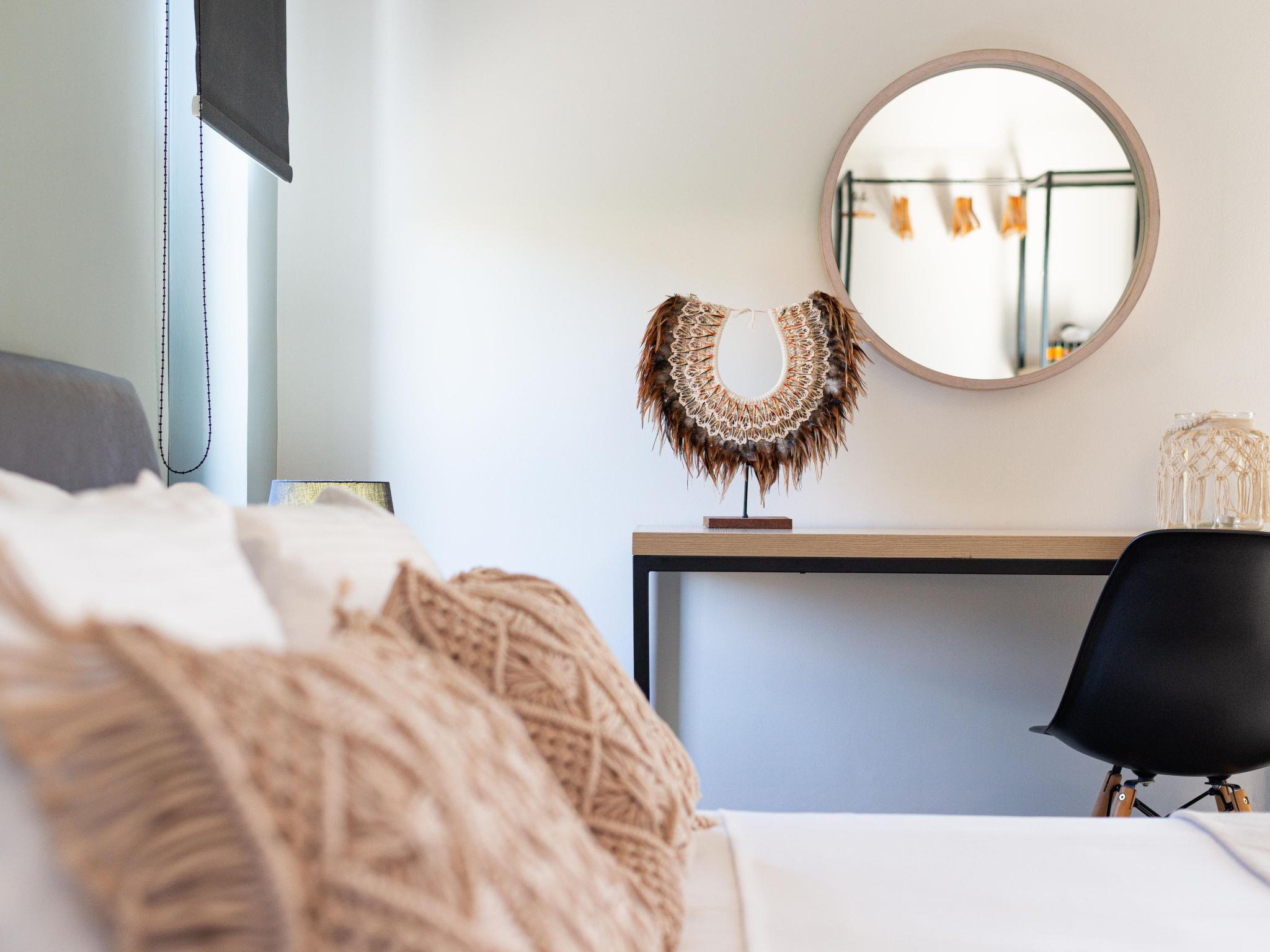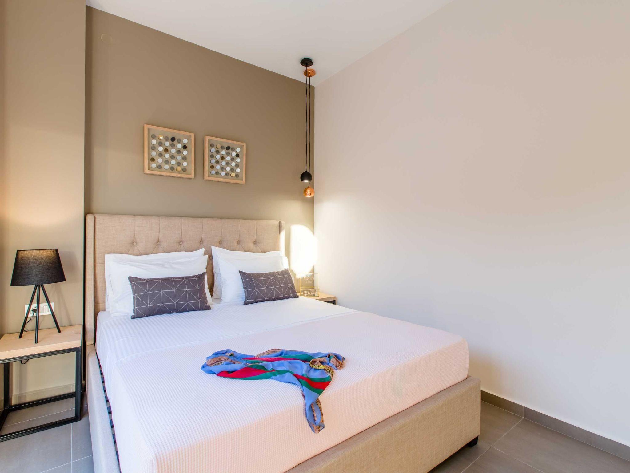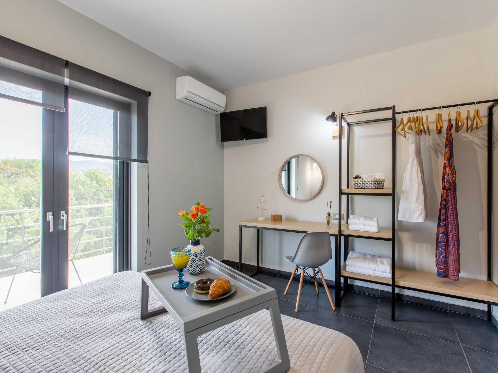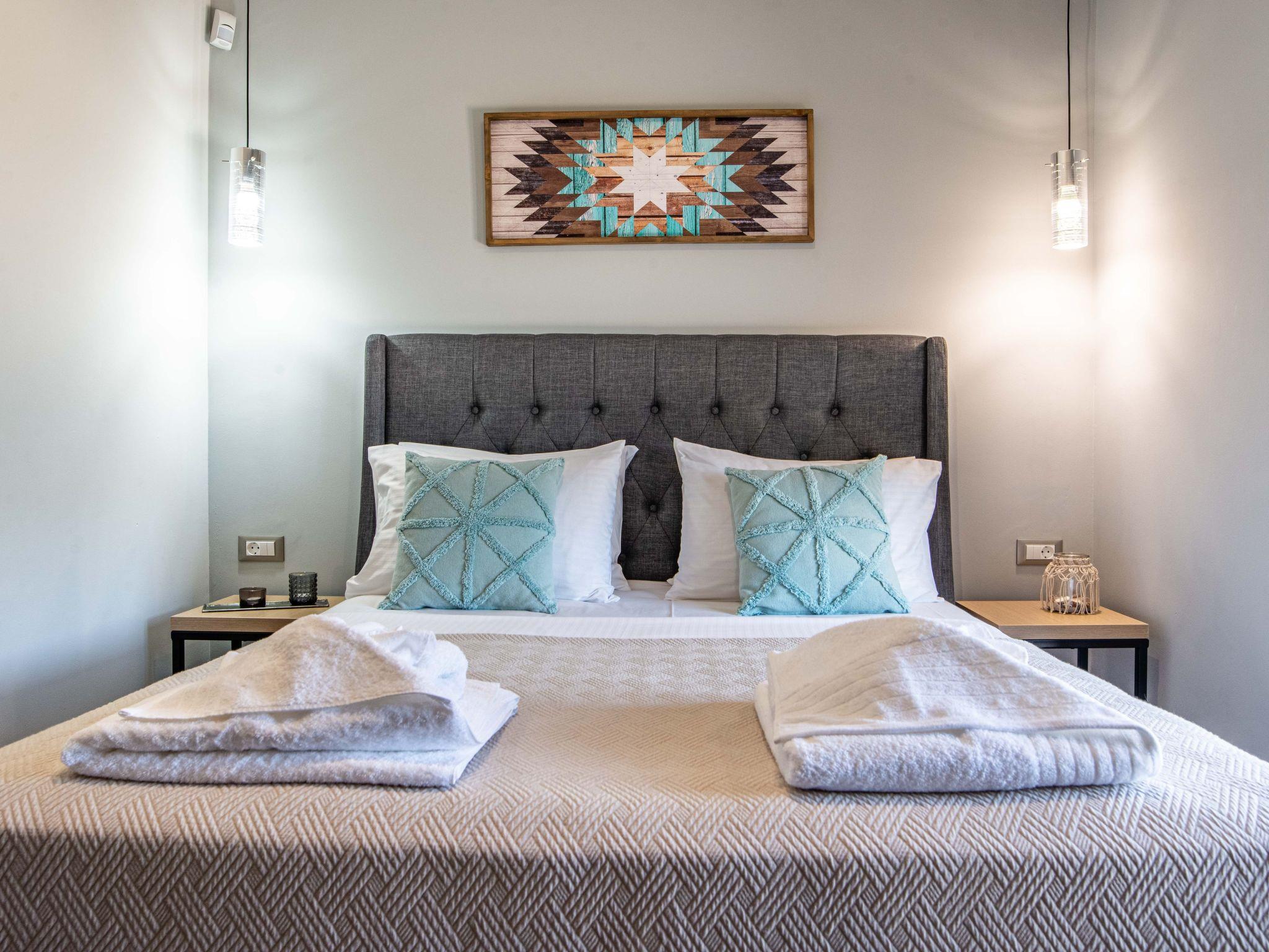 Bedroom 1: Double size bed (1.60x2.00), A/C, 32’’ Smart Satellite TV, direct access to the pool area, open type closet