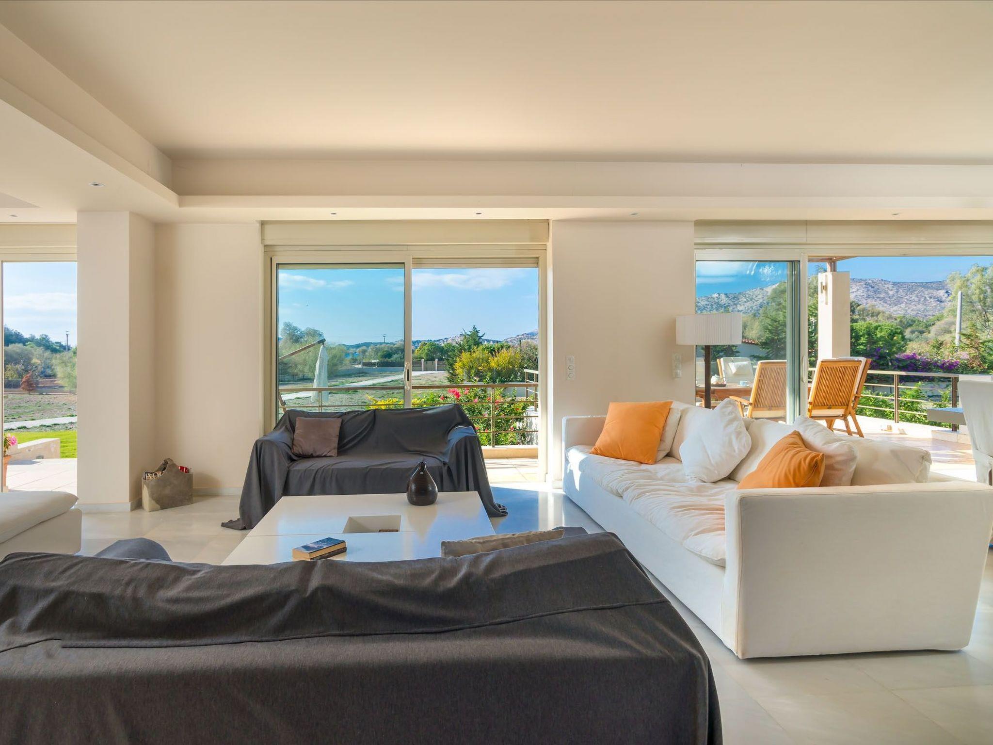 Situated in a peaceful, sparsely populated area away from the hustle and bustle of urban life, the villa's location is truly unmatched. The serene beaches and historic allure of Cape Sounio are just a stone's throw away. For your convenience, the bustling small cities of Lavrio and Anavyssos, offering shopping centers, markets, gas stations, and additional services, are only a 10-minute drive away. Plus, the villa's proximity to both the center of Athens and the Eleftherios Venizelos Athens International Airport adds to its appeal as a fantastic base for exploring this richly historic region.