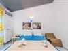 Glæd jer til et varmt indrettet og farverigt feriehus med plads til ni personer. Her kan I slappe af i den velindrettede stue, læne jer tilbage med en god bog eller give jer tid til de dybe samtaler. De yngste gæster vil især blive begejstrede for det fine børneværelse og udendørspoolen. Der er også en grill, så I kan tilberede lækre sommerretter - måske med et græsk tvist. Bagefter kan I sætte jer med retterne på den åbne terrasse og senere med en drink i liggestolen.