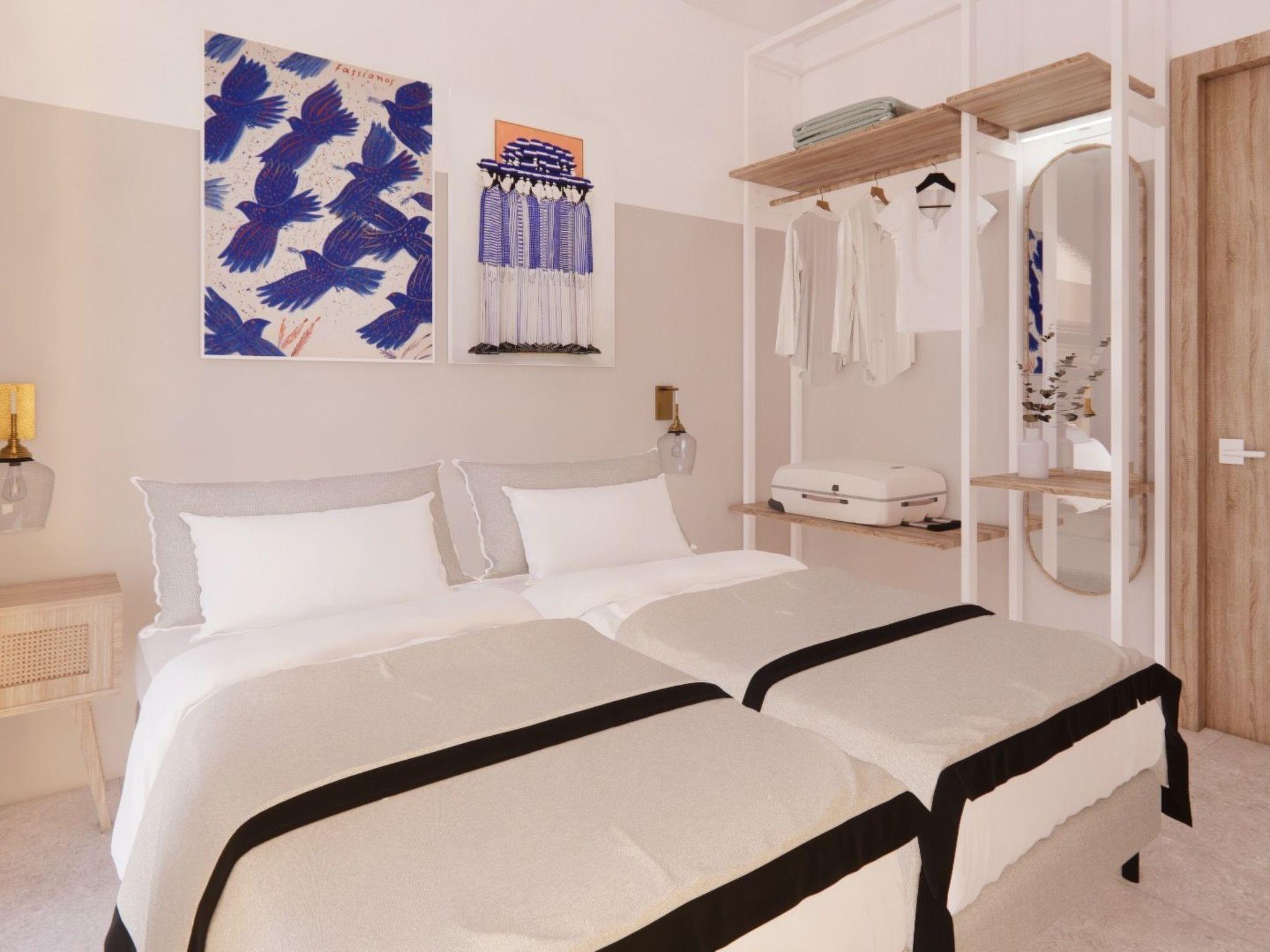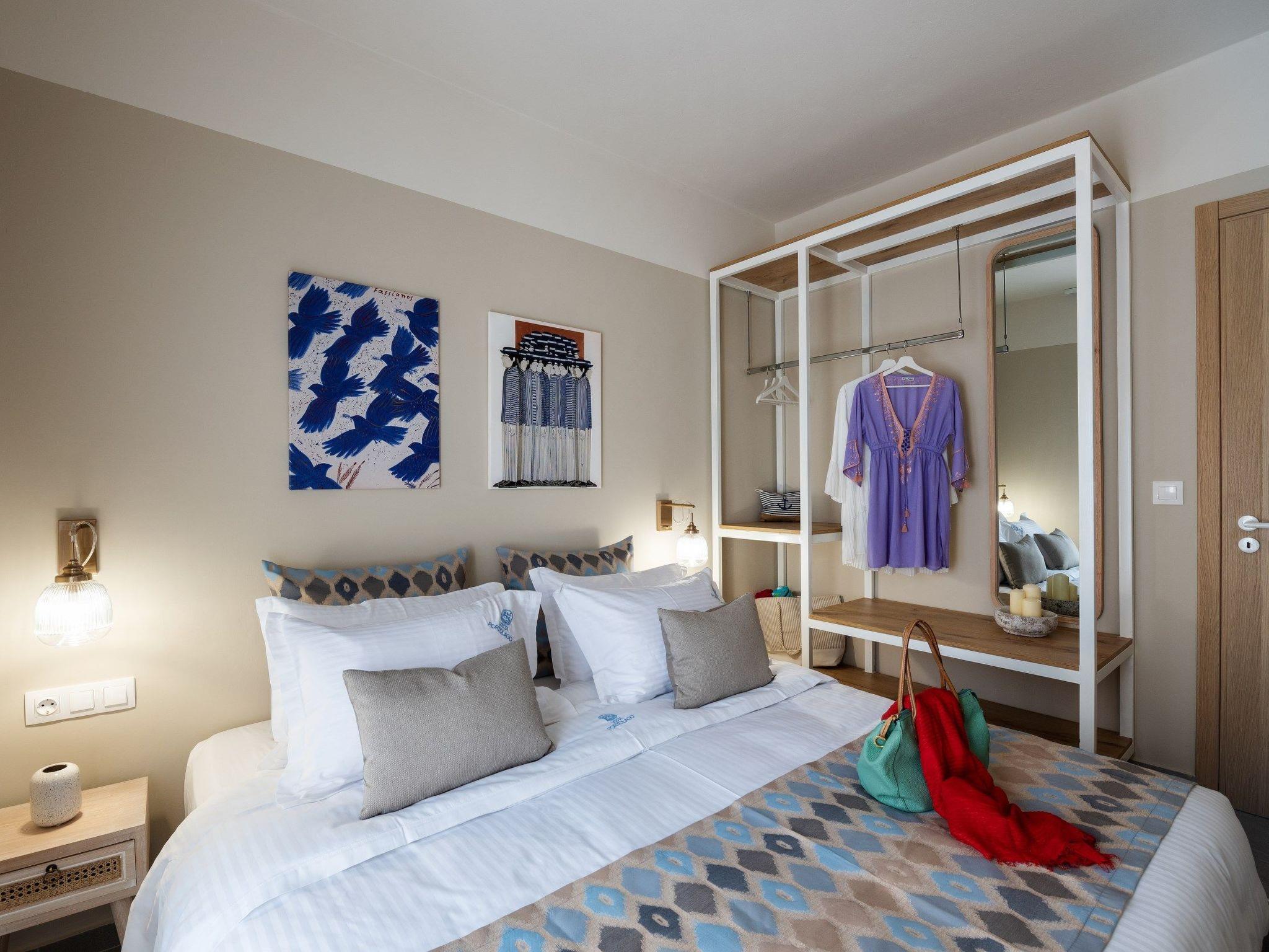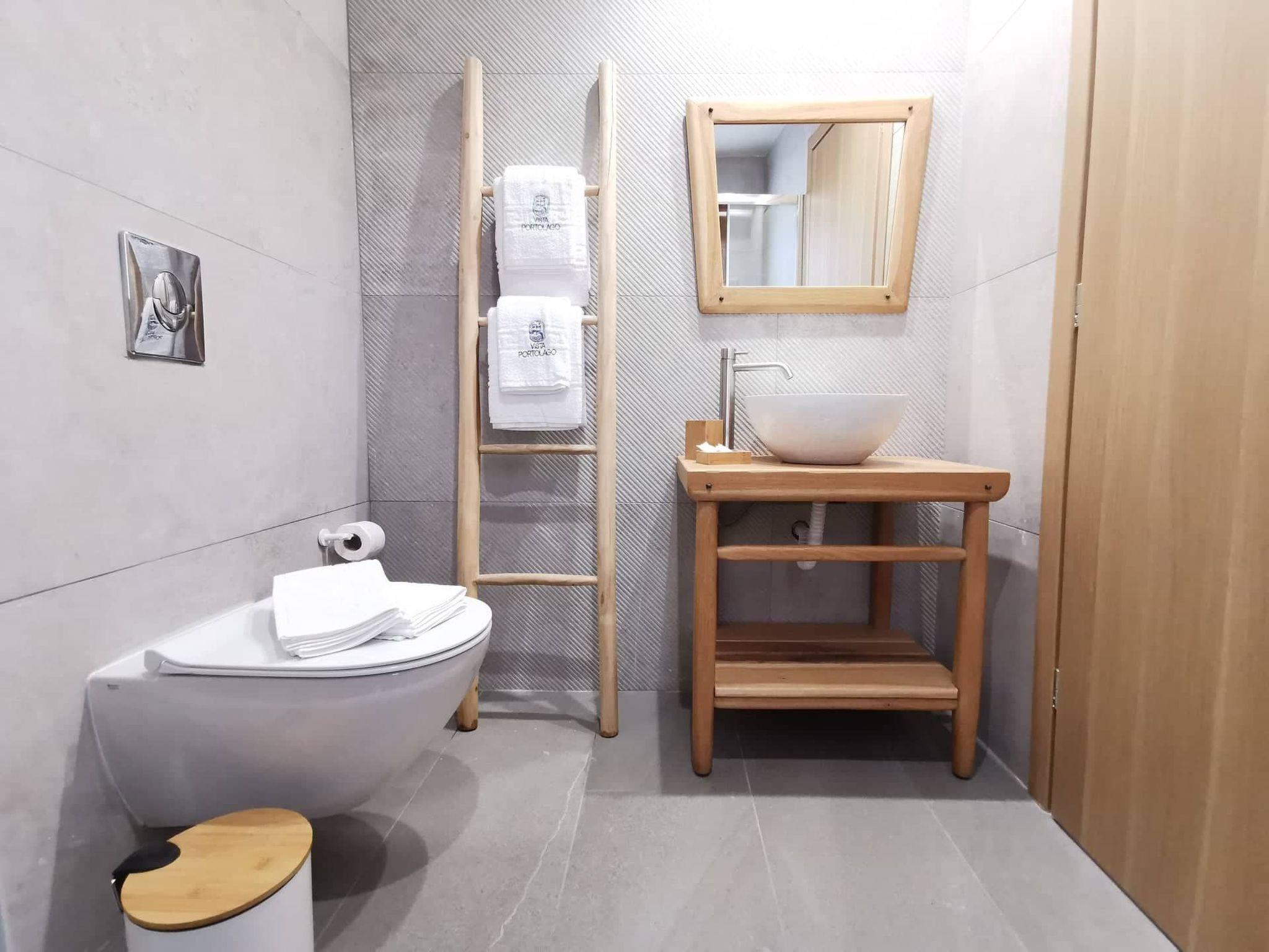 The interior of the villa is elegant as well as functional with a modern minimal decoration. Two bedrooms, one located in the ground floor with 2 single beds that can be used as a double, balcony with side view to the bay and the second one located in the first floor with one double bed and access to sunny terrace overlooking the bay. Both bedrooms are eqquiped with open closets, air condition and HD tvs. .Two bathrooms, one located in the ground floor eqquiped with hydromassage shower column and one in the first floor with free style bathtub. Both bathrooms have shower cabins.Living room located in the ground floor, eqquiped with a 3 seated sofa bed and a modern relaxing armchair, opening to a stonebuilt balcony with uninterrupted views. Plus there is a fully-equipped bright kitchen with an oven, microwave, coffee machine and a dining area.Washing machine and small wc available on the basement.