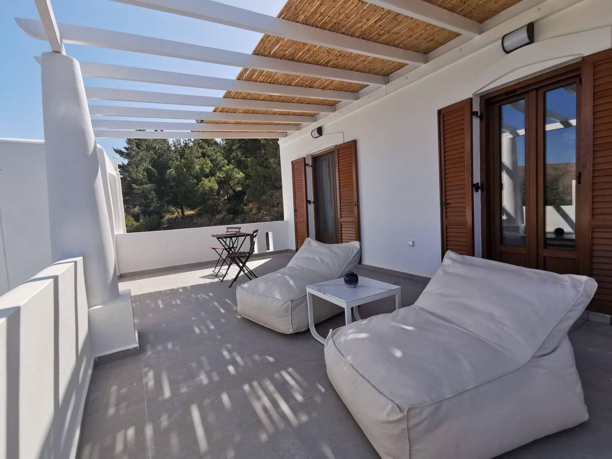 Stonebuilt balcony with glass outside the living room eqquiped with outdoor furniture. Balcony with dinning table outside the ground floor bedroom and semi covered sunny terrace on the first floor . All offer amazing relaxing views.