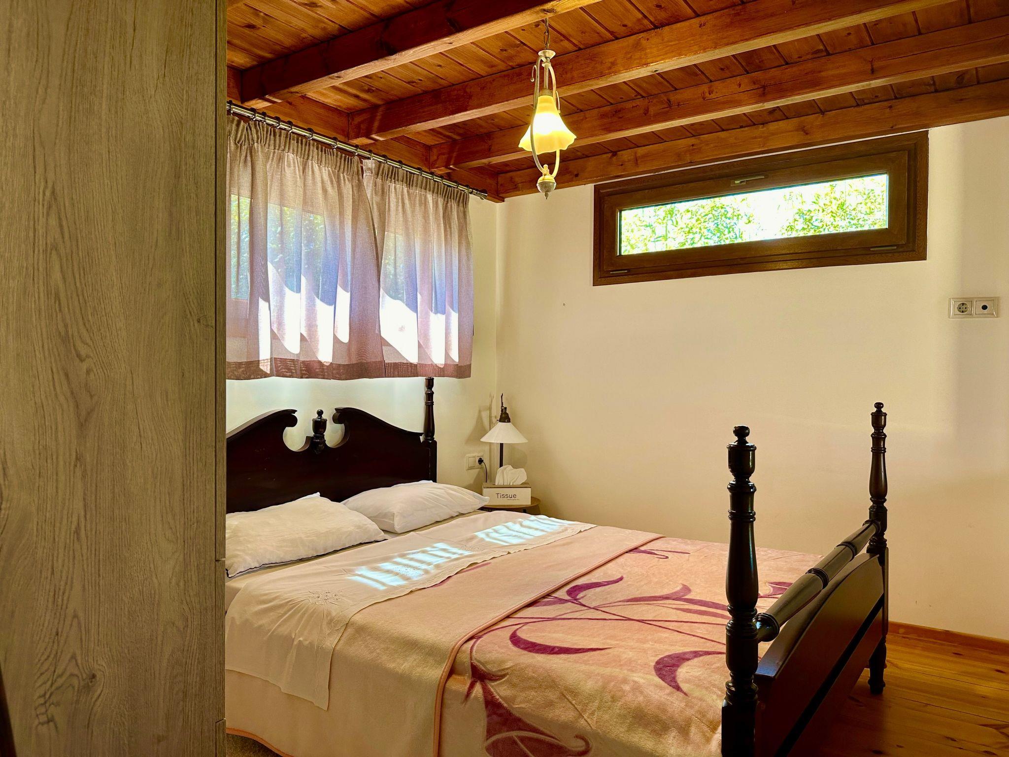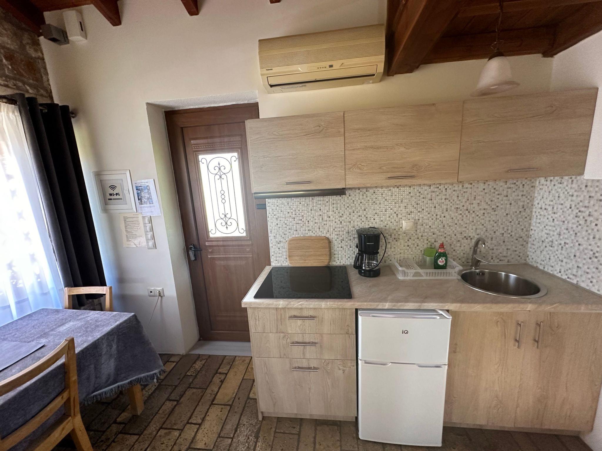 The interior of the Garden View Apartment is meticulously designed to provide a feeling of a true home away from home. It boasts a comfortable double bedroom and a versatile attic space that can accommodate extra guests, making it perfectly suited for both romantic getaways and family vacations. The apartment features an open-plan layout that cleverly integrates a cozy living room with a sofa bed and a fully equipped kitchen. This setup not only allows guests to prepare and savor their favorite meals at their own pace but also ensures every moment of their stay is enveloped in comfort and convenience. Large windows and access to a garden offer views of lush greenery, with glimpses of the sea visible, reminding guests of their proximity to nature's beauty.