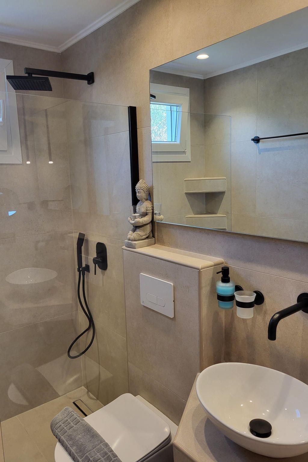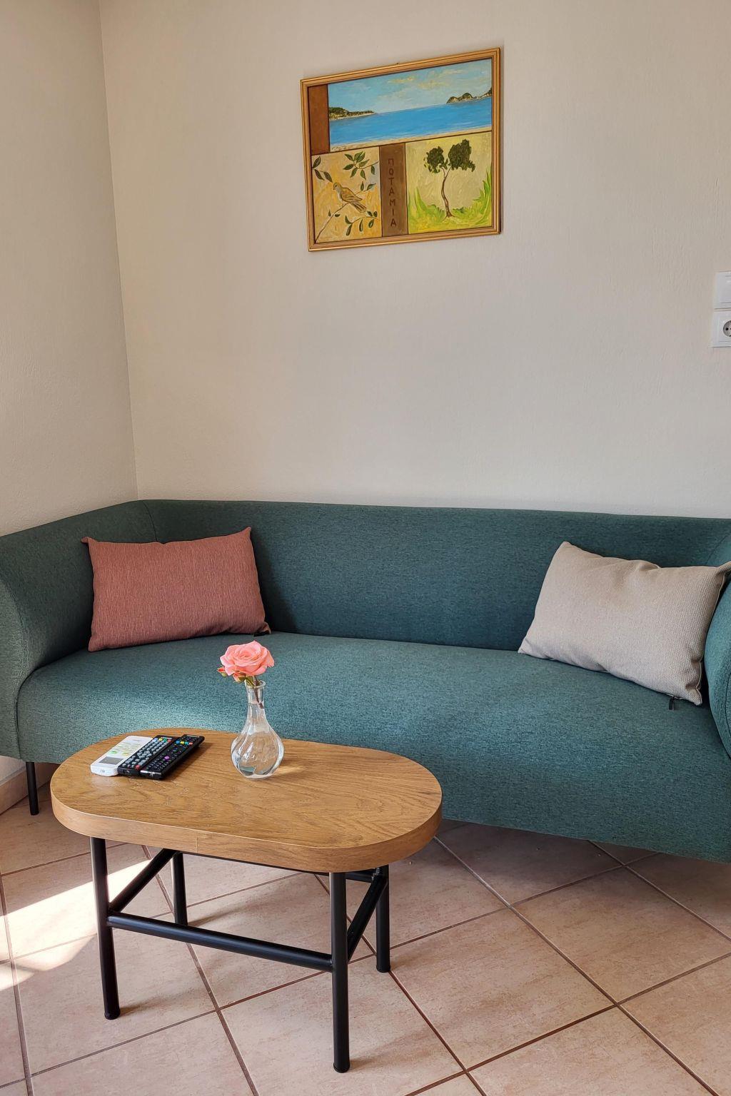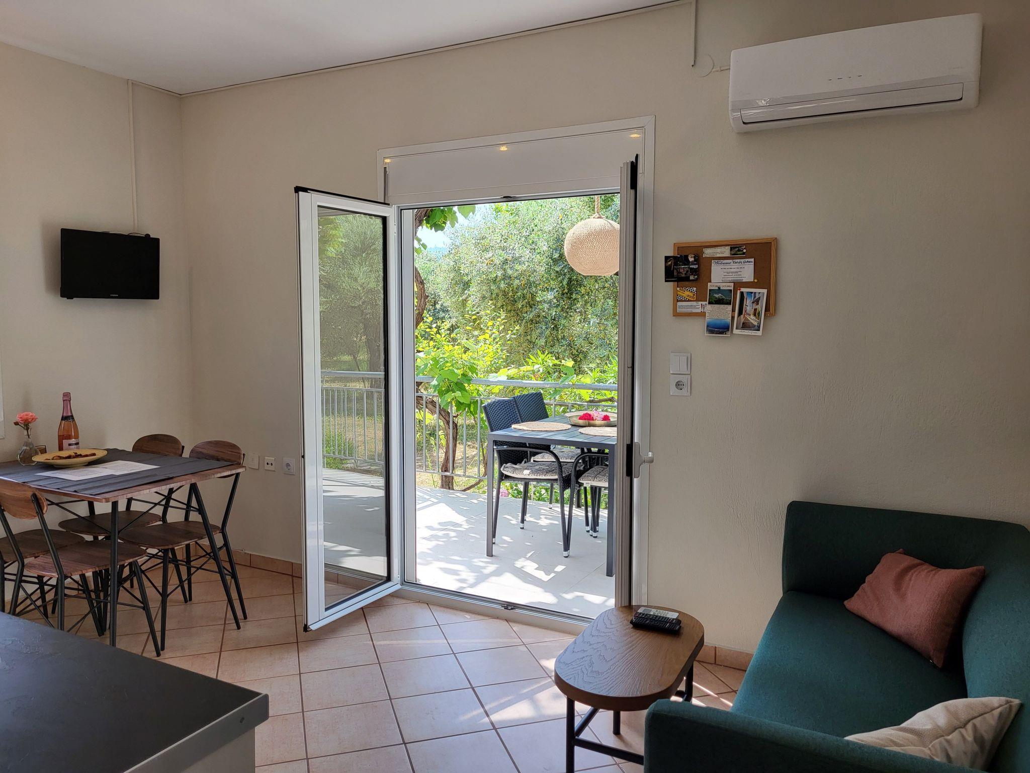 In a quiet and idyllic location, the holiday home offers you an ideal holiday domicile. In addition to two bedrooms and a bathroom, the living room has a fully equipped kitchenette and a sofa bed, the house is freshly painted and has air conditioning, satellite TV (including a selection of German programmes) and WiFi. The large terrace is perfect for relaxing hours on your sun lounger or for romantic evenings with Greek wine.your holiday home on Thassos awaits you nestled in a green olive grove, away from the stress and noise of everyday life. The imposing mountain panorama radiates an intense tranquillity that will immediately relax you. Intense colours of green and blue shine in the morning sun and there is rarely a cloud in the sky. The island also has its own special charm outside the high season. In spring, green flower meadows and in autumn the golden light of October invite you to relax. In summer, our own grapevines provide shade on the cosy terrace and if you arrive by car or hire car, you can park directly at your holiday home on Thassos. Our 10-hectare property offers enough space so that you can easily park your vehicle. If you need help planning your journey, we will be happy to help you. The two houses are identically equipped and are each suitable for up to 4 people. Each house has 2 open terraces with a garden in front. There are two bedrooms (1 double bed, 2 single beds), a bathroom with shower and a living/dining room. Your terrace is the ideal place to end a relaxing day on the island. Use fresh herbs and oregano that you have collected yourself on walks in the neighbourhood and prepare a delicious dinner with local ingredients in your fully equipped kitchenette. If you prefer to eat out, there are plenty of quaint tavernas within walking distance of your holiday home on Thassos. There is a supermarket in the immediate vicinity. It is also an ideal starting point for hikes in the forests and mountains as well as to neighbouring mountain villages. The beautiful sandy Golden Beach, which is about three kilometres long, can be reached quickly via a short footpath and is also ideal for children.German, English and Greek-speaking contact persons are available on site.Brief description 1Number of kitchens : 1Living room 1Other living room facilities : TV, fully equipped kitchen, air conditioningBedroom 1Other bedroom facilities : Cot on requestKitchen 1Other kitchen facilities : Washing machine, additional electric cookerPalettesSurroundingsLoan facilities : Car hire, boat hire, bicycle hireSports activities in the surrounding area : Fishing, mountaineering, canoeing, cycling, water skiingGarden and outdoor facilitiesRecreational facilities at the property : Shared outdoor pool, swimming poolGarden equipment : Garden furniture available, barbecueServicesServices (may apply) chargeable) : Transfer service (airport etc.)