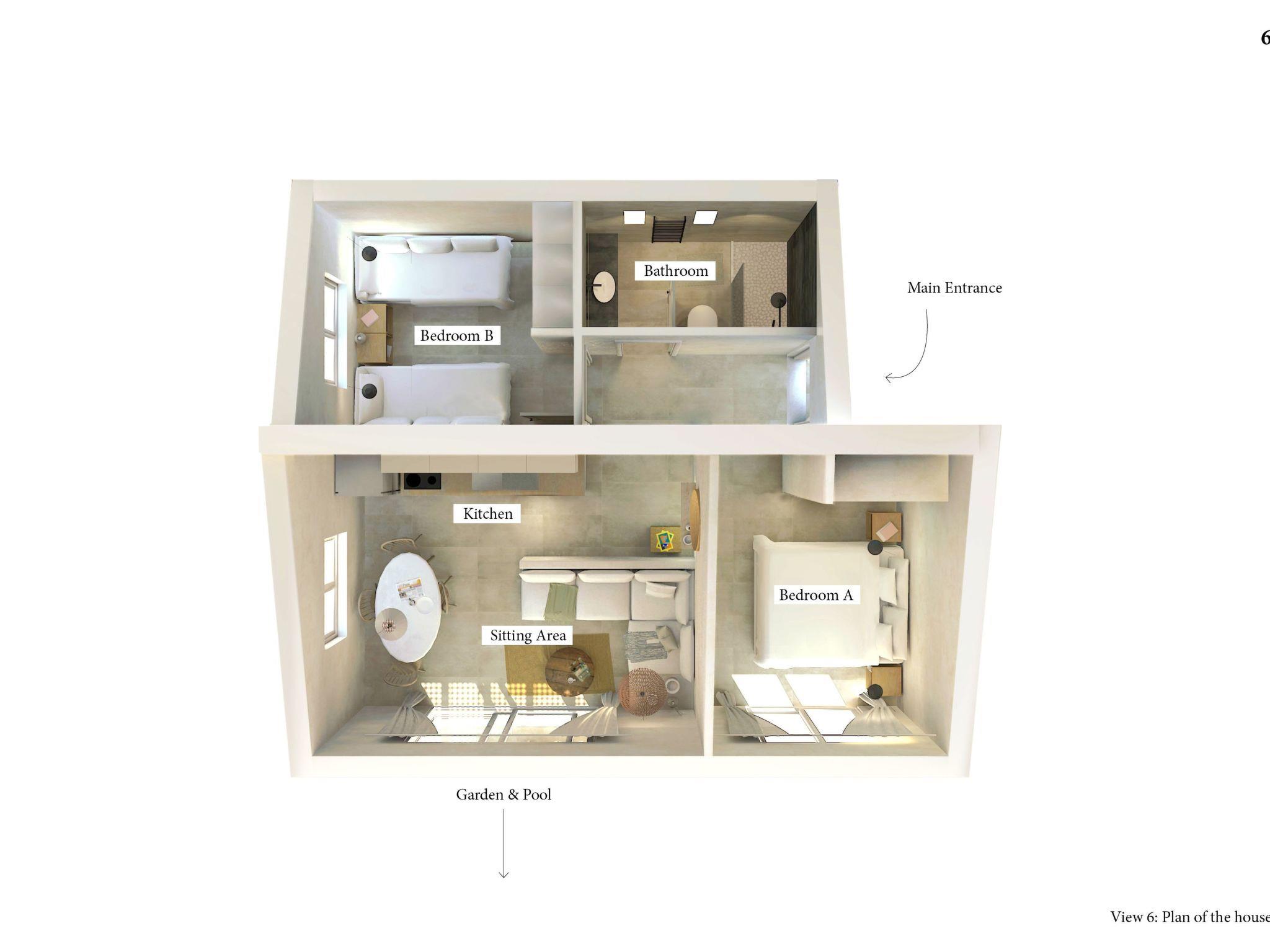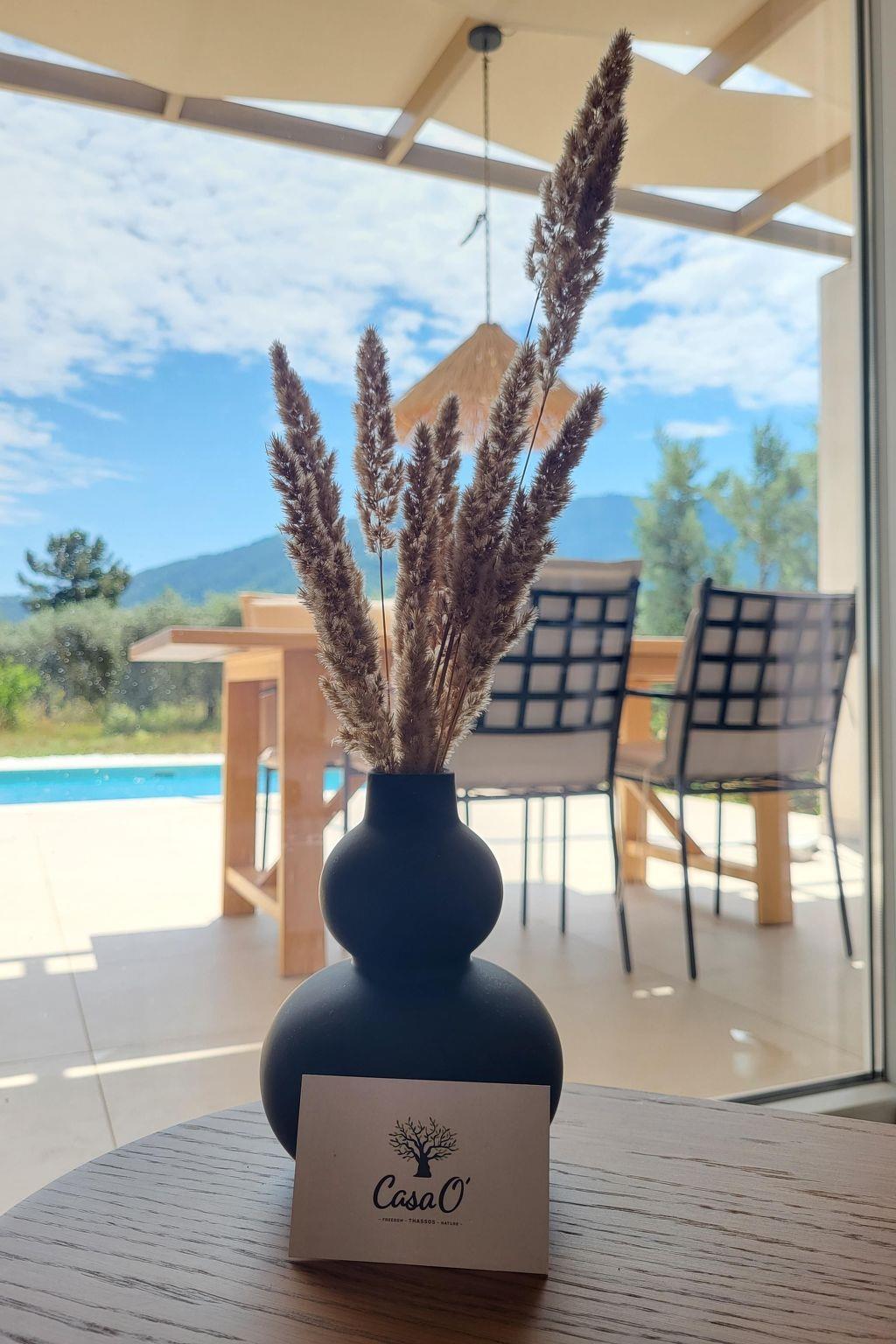 The 4 holiday homes are located on a large plot with many olive trees, but also walnut trees, plane trees and other plants. The only direct neighbours are a stream bed, a few ducks and donkeys. Ideal for those seeking peace and quiet and nature lovers. We enjoy relaxing with the great view of the mountains or simply walking around the property in the immediate vicinity and discovering new plants, but everything can be reached very quickly by car or easily on foot. The location is ideal between our unique sandy beach and the original mountain village of Potamia, a true paradise away from the hustle and bustle and yet centrally located. You can reach the beach in 2 minutes by car or 15 minutes on foot.