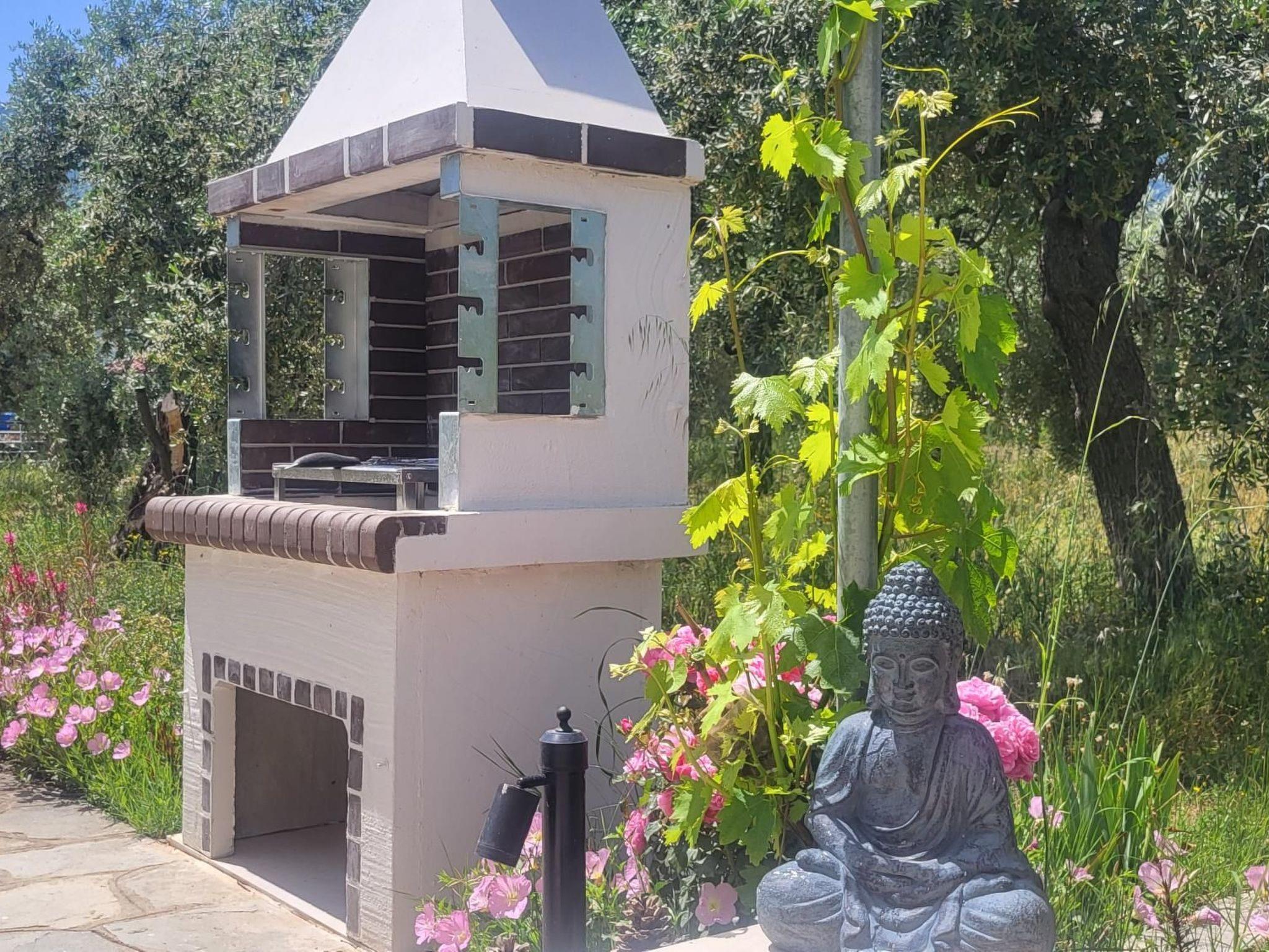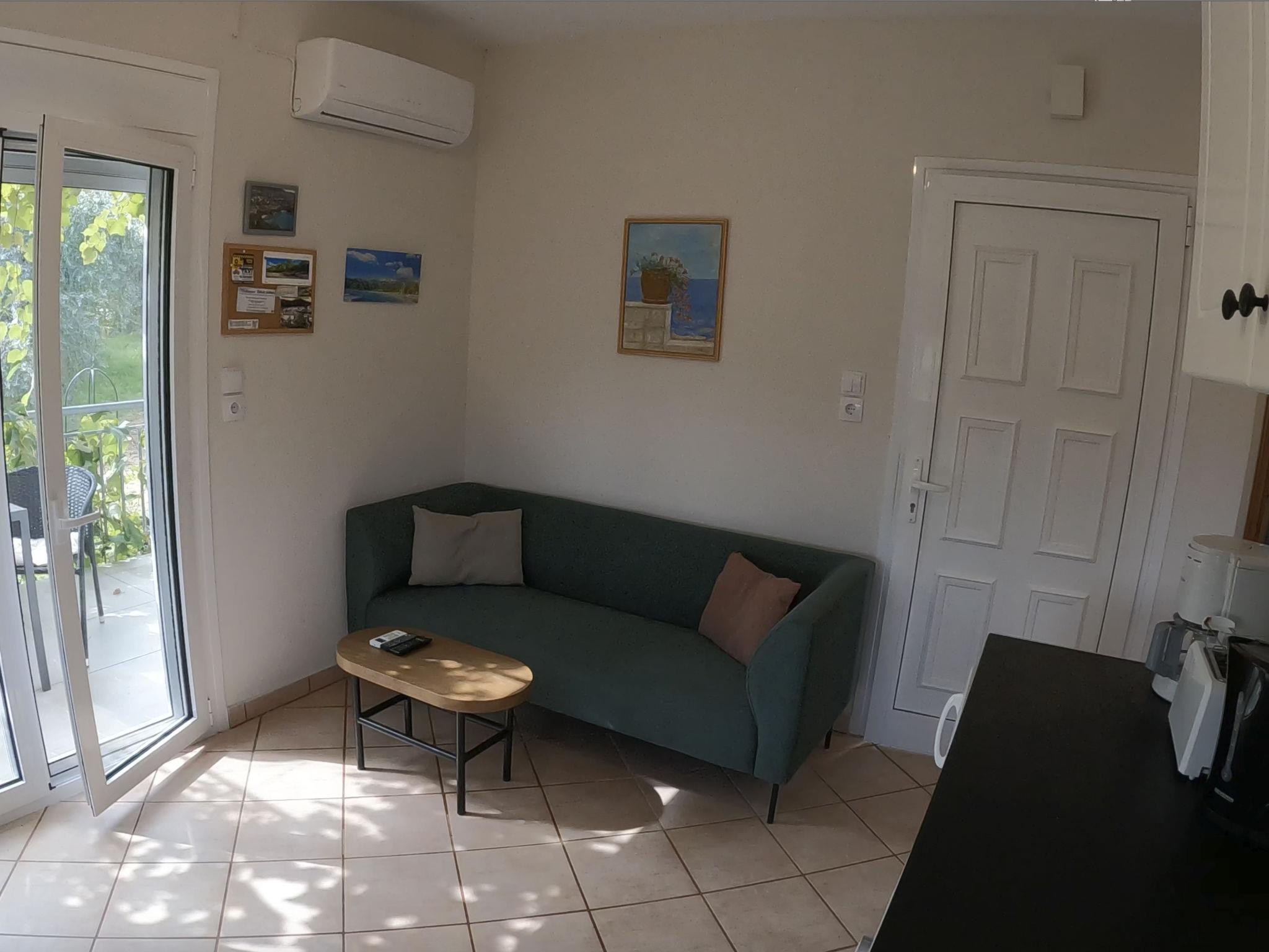 The detached holiday home was modernised in 2022 and is situated in a quiet, central location in the green bay of Potamia and Golden Beach, in the middle of an extensive olive grove with magnificent views of the surrounding mountains.