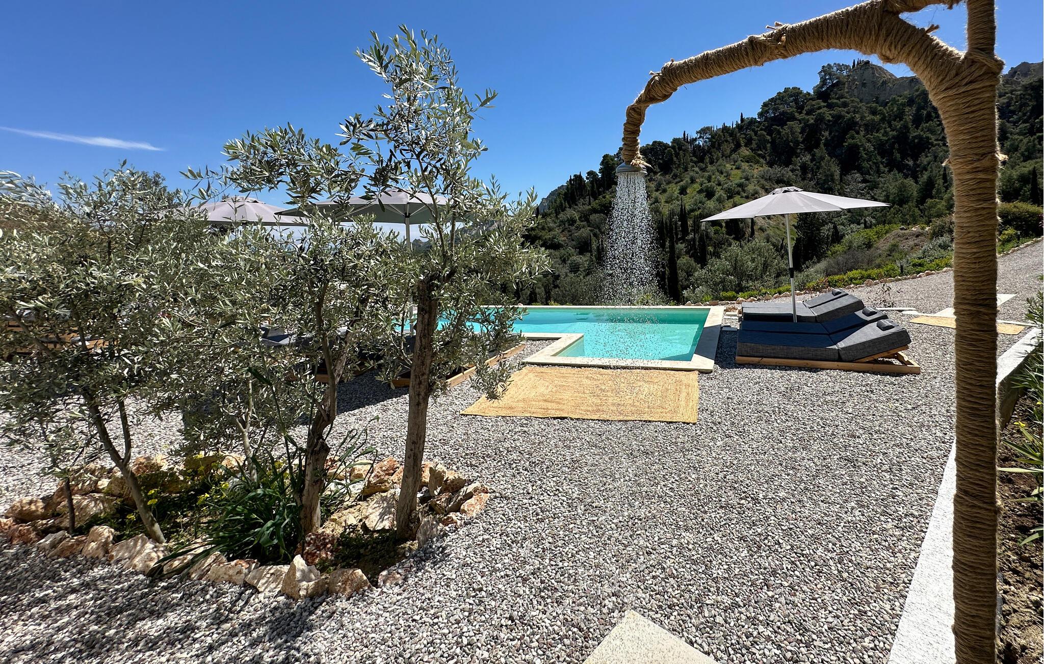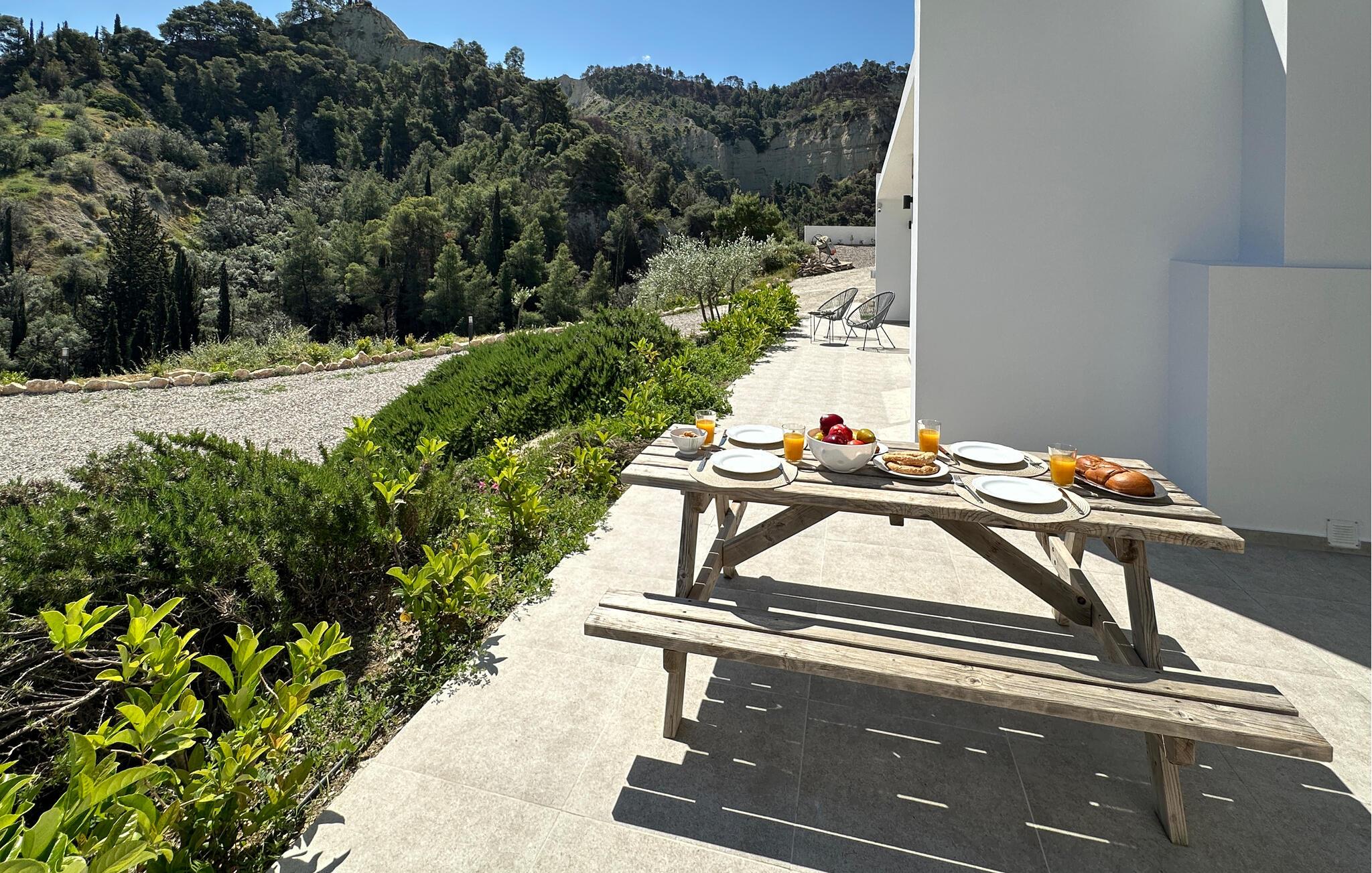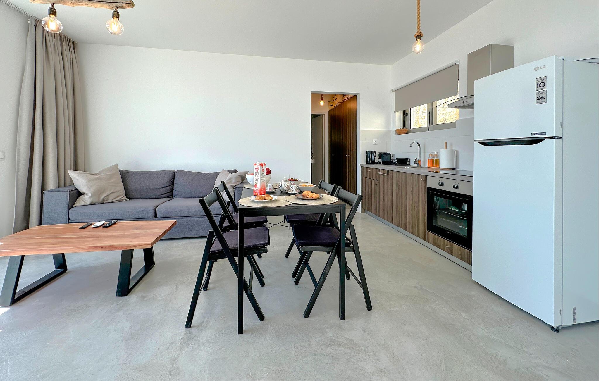 Oplev en solrig ferie i dette komfortable feriehus med havudsigt og adgang til poolen. Dette moderne feriehus forkæler jer med en smuk udsigt over Korinthbugten og byder jer velkommen med en lys og stilfuldt møbleret opholdsstue. Nyd udsigten, mens I spiser, takket være de store vinduer, og planlæg jeres aktiviteter i den friske atmosfære i det åbne opholdsområde. Efter en lang dag kan I streame en film på sofaen eller udfordre jer selv til et brætspil. Den skyggefulde terrasse er det ideelle sted til en lækker morgenmad. På varme dage kan I forfriske jer i den fælles pool og nyde solen på de behagelige liggestole. Hyg jer omkring grillen og snak over græsk vin i den lune sommernat. Vandr gennem de fantastiske Helmos-bjerge og oplev skjulte vandfald, eller slentre langs den maleriske promenade i Xylokastro med dens traditionelle tavernaer. Hold en picnic under fyrretræerne i Pefkias-skoven ved havet, tag den historiske tandhjulsbane gennem den betagende Vouraikos-kløft, eller tag en dagstur til det gamle Korinth.