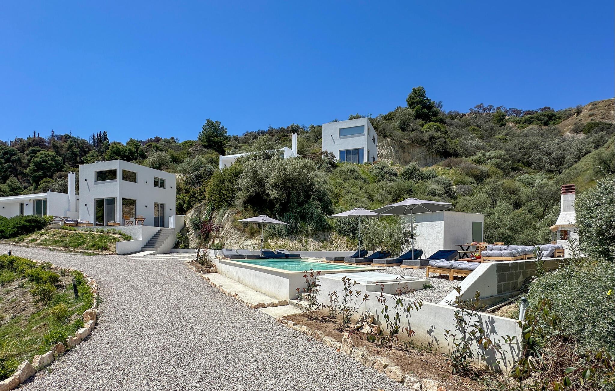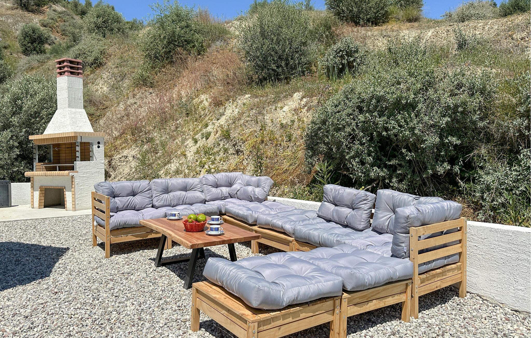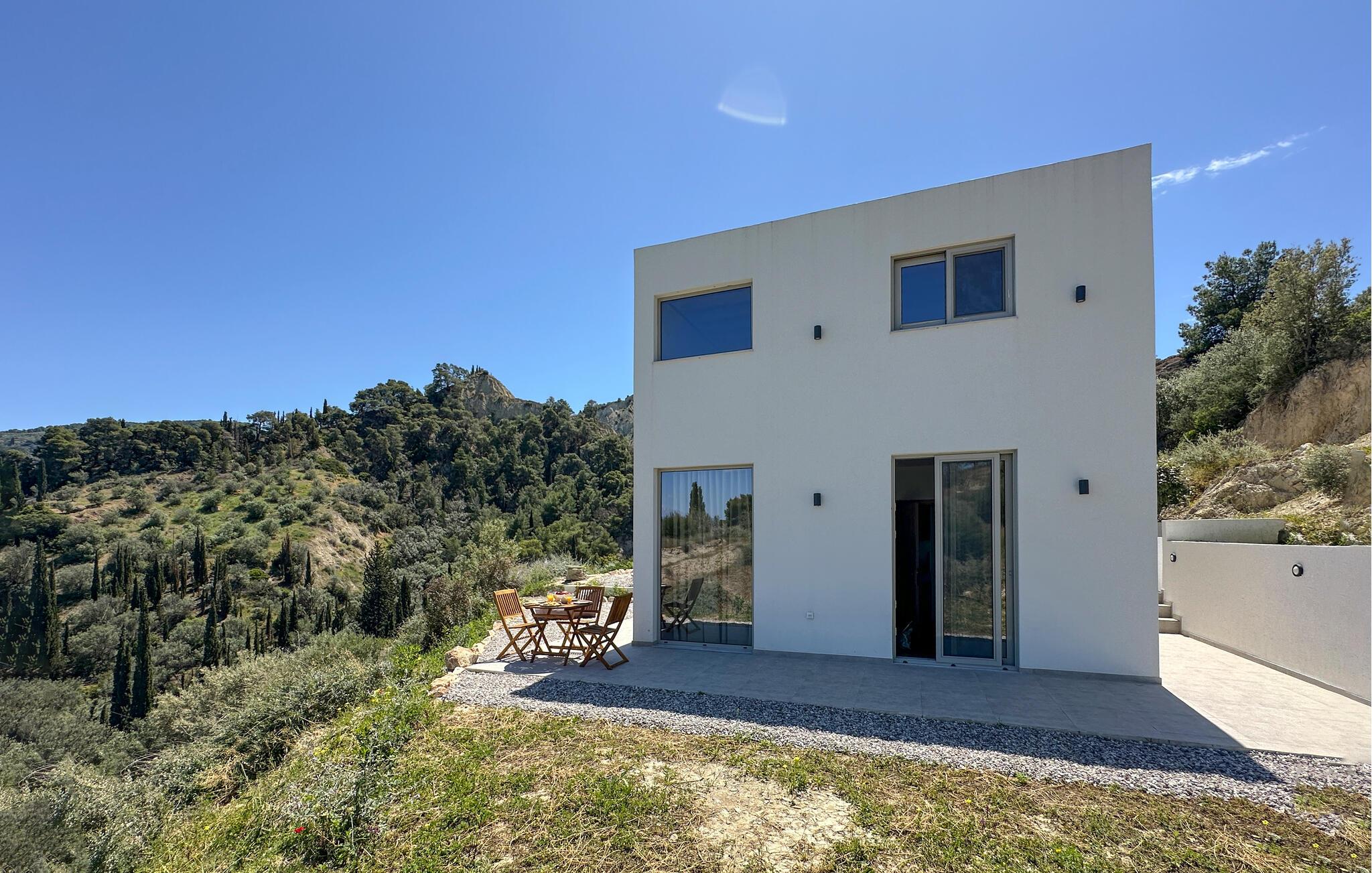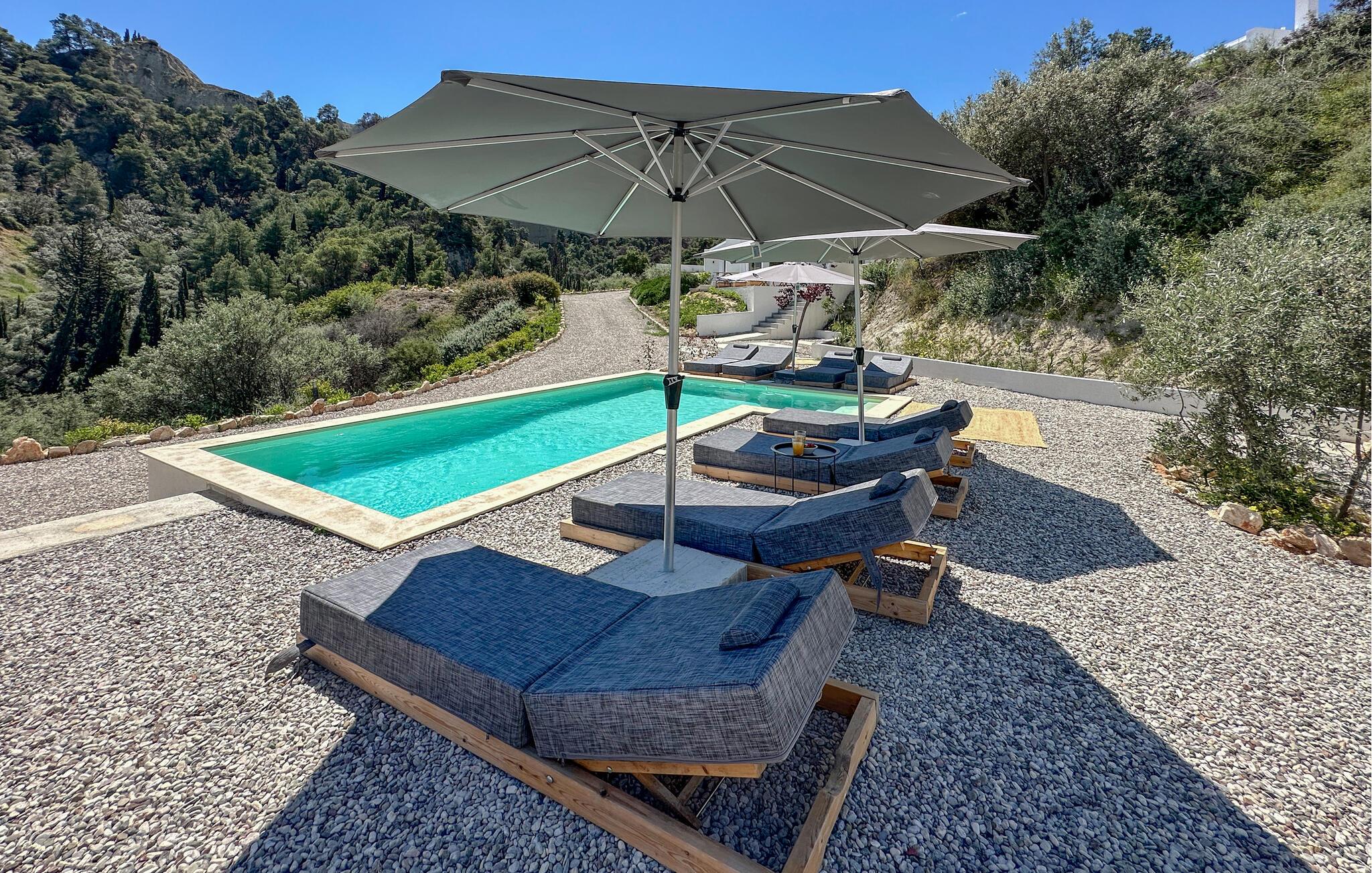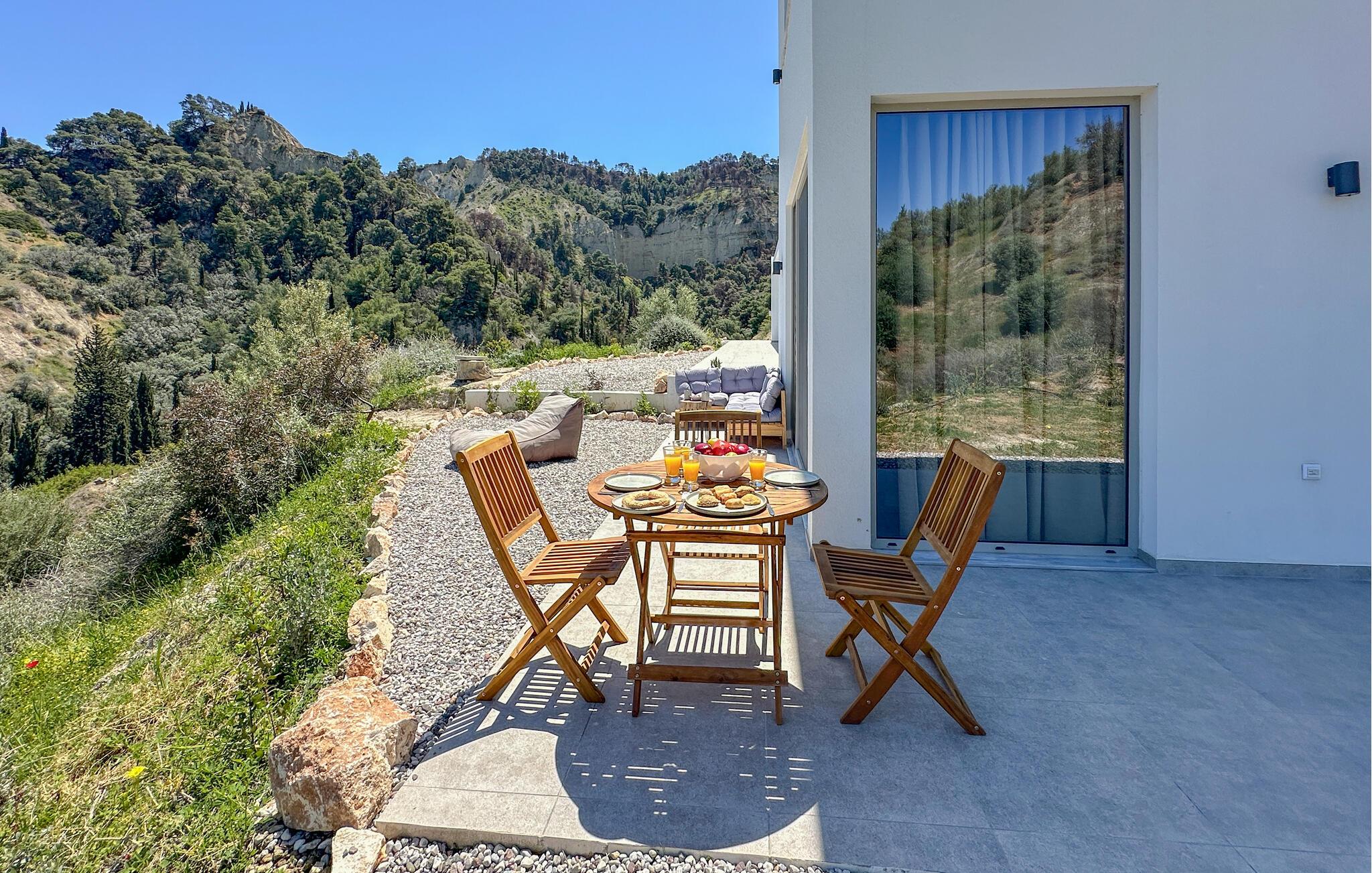 Oplev afslappende dage i dette komfortable feriehus med havudsigt og adgang til poolen. Dette moderne feriehus forkæler jer med en smuk udsigt over Korinthbugten og byder jer velkommen med et lyst og stilfuldt interiør. Glæd jer til harmoniske måltider og planlæg jeres aktiviteter i den friske atmosfære i det åbne opholdsrum. Efter en lang dag kan I streame en film på sofaen eller udfordre jer selv til et brætspil. Den åbne terrasse er det ideelle sted til en dejlig morgenmad udendørs. Forfrisk jer i den fælles pool og nyd solen på de behagelige liggestole. Hyg jer omkring grillen og snak over græsk vin i den lune sommernat. Vandr gennem de fantastiske Helmos-bjerge og oplev skjulte vandfald, eller slentre langs den maleriske promenade i Xylokastro med dens traditionelle tavernaer. Hold en picnic under fyrretræerne i Pefkias-skoven ved havet, tag den historiske tandhjulsbane gennem den betagende Vouraikos-kløft, eller tag en dagstur til det gamle Korinth.