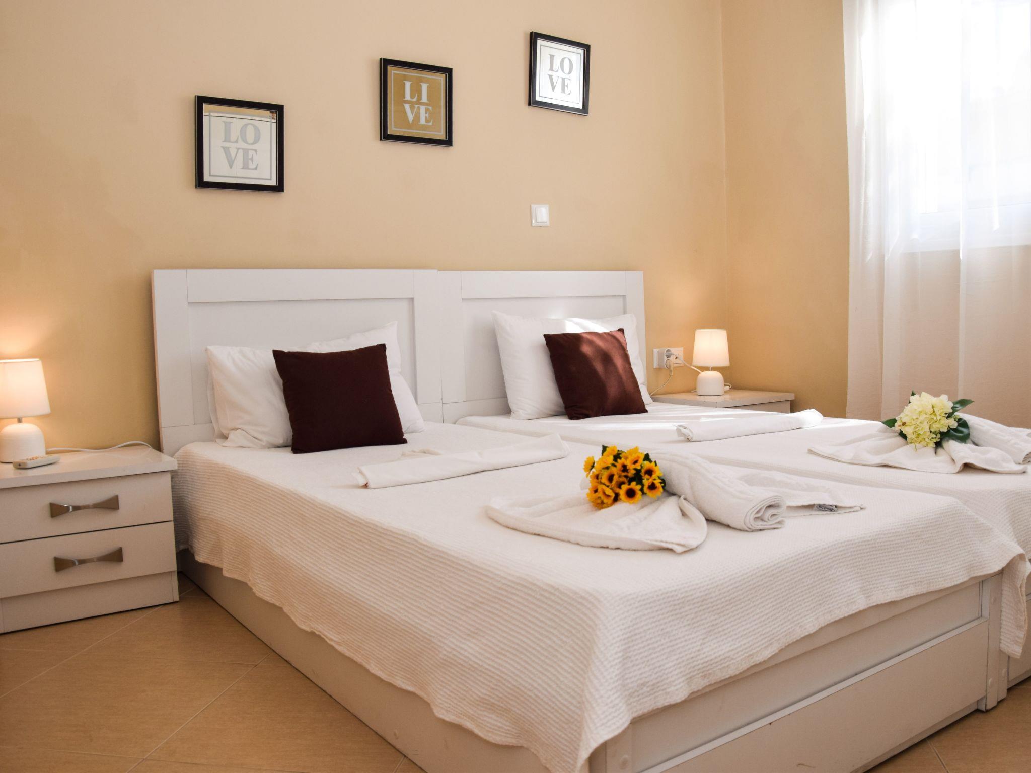 Modern holiday apartment only approximately 3 minutes walk from the sandy beach, with a private sea view balcony This apartment is located in Agia Marina region close to a sandy beach.