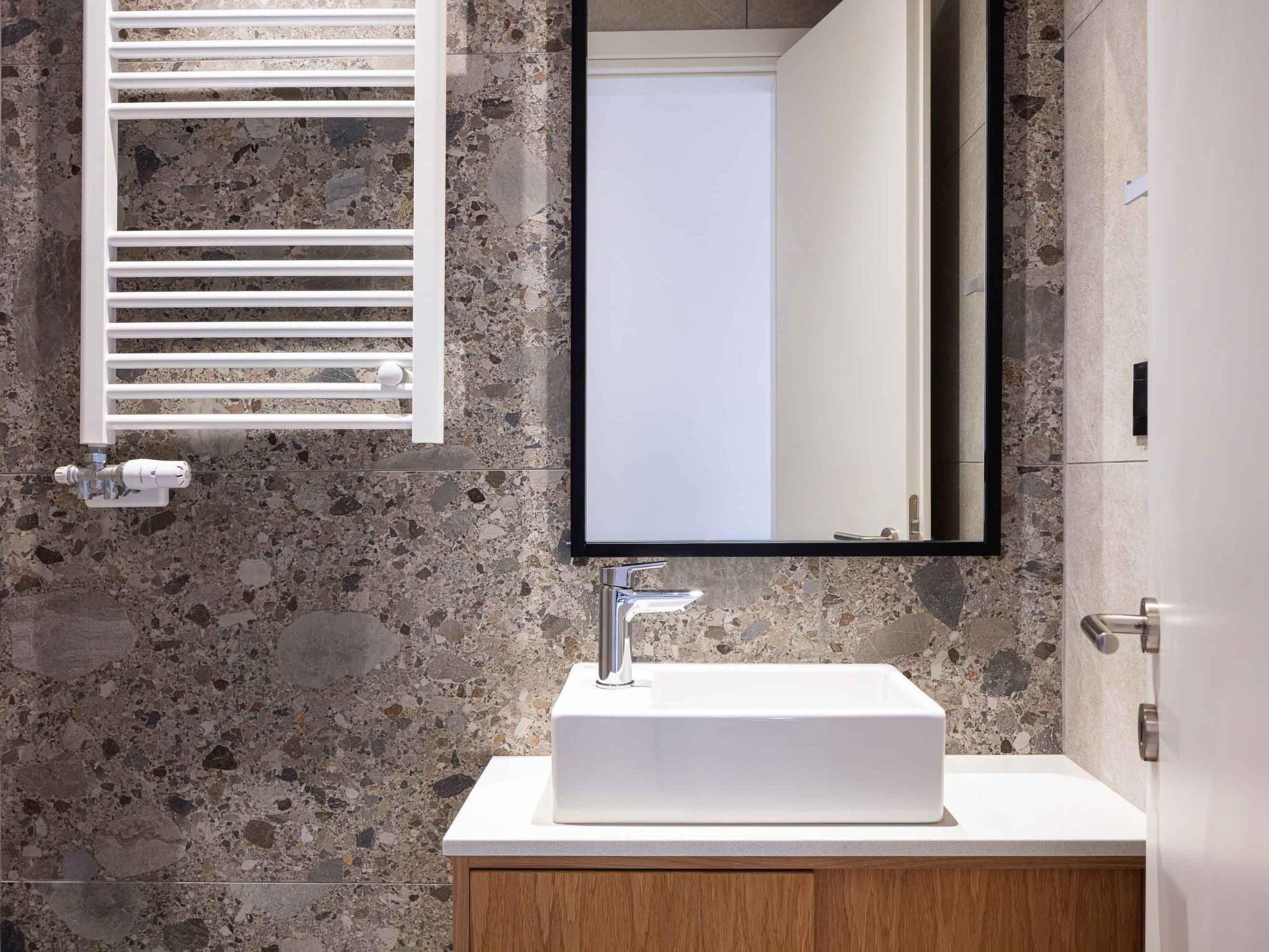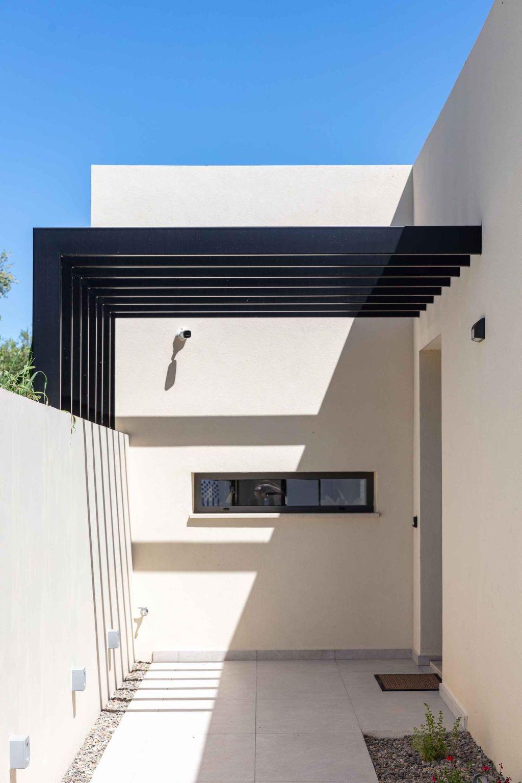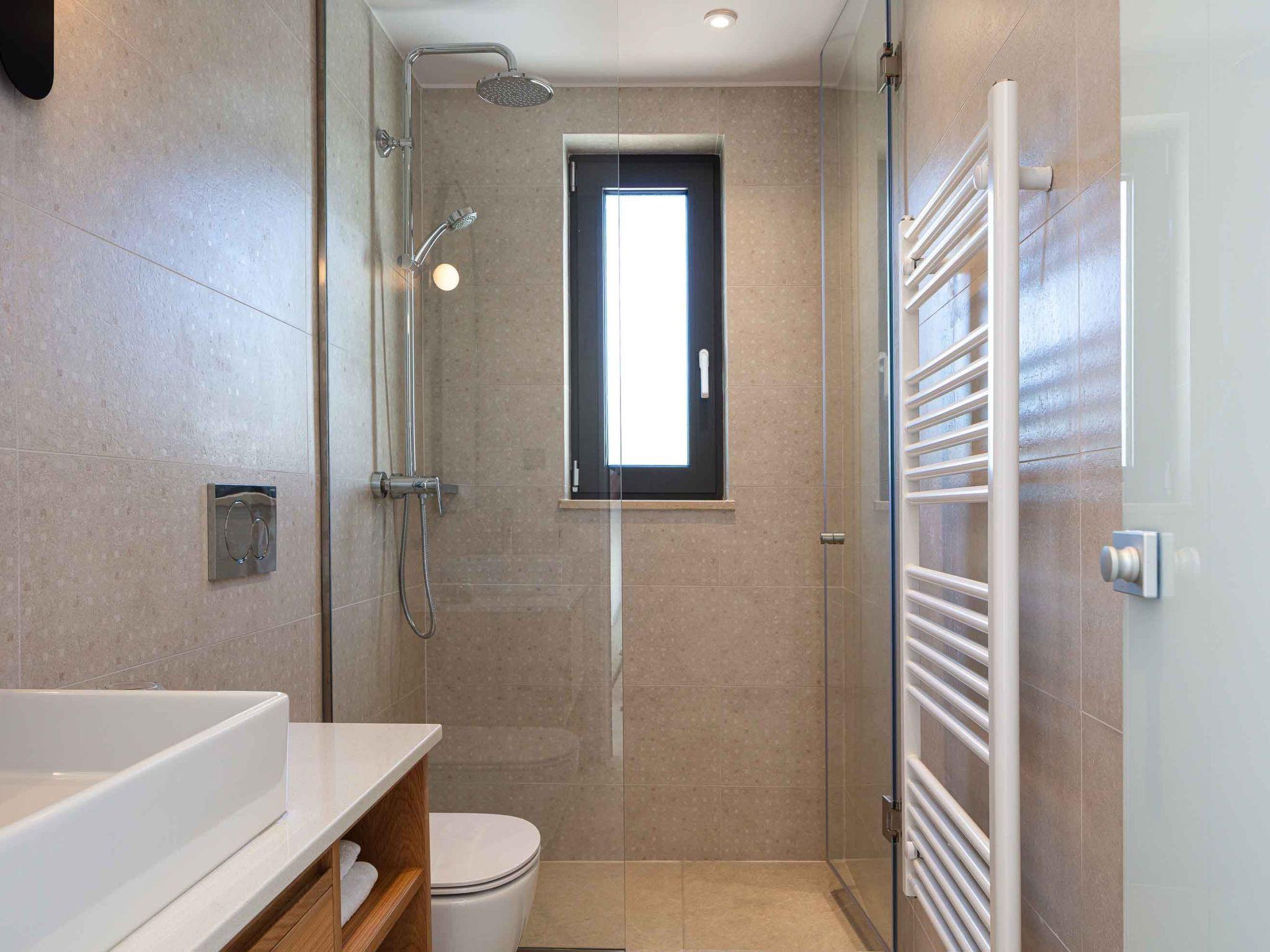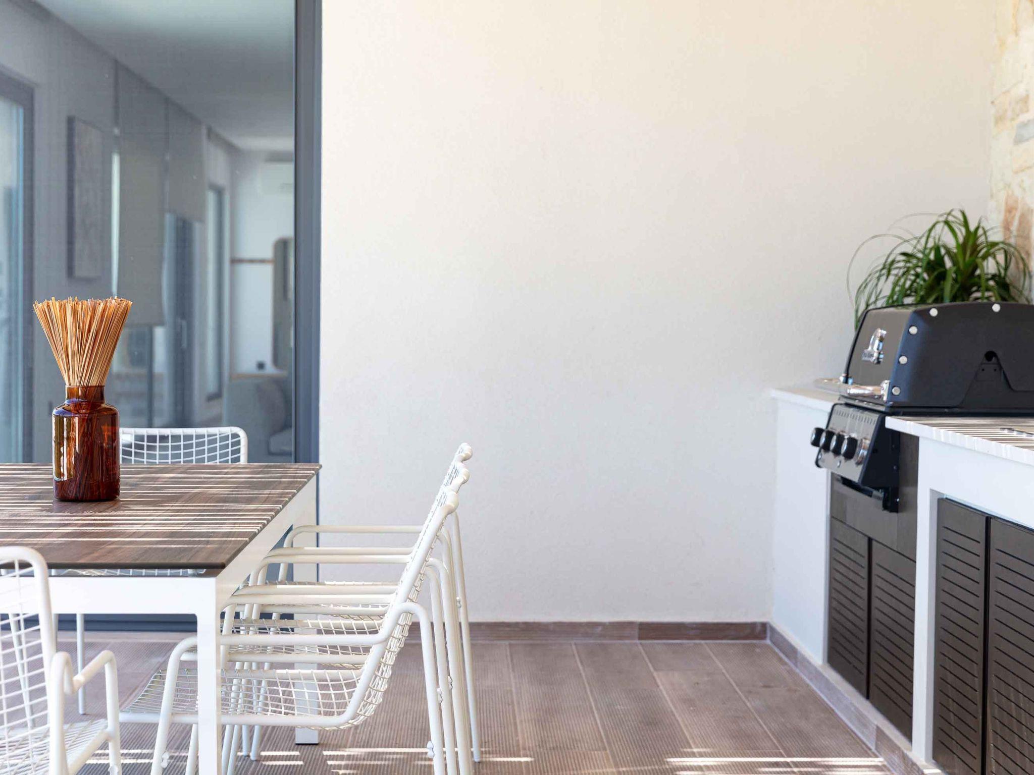 Villa Aglaea is set on one floor, covering 157 sq.m. in total and it accommodates 6 guests in its 3 ensuite bedrooms. Sleek, monochrome and practical, combining the wooden element with the earthy stone, Villa Aglaea invokes a sense of calm, something that makes staying here feel like a proper treat! Entering through its airy open-plan living space, you will be amazed by how the contemporary and fresh interior balances neutral tones, and hues of beige with textures creating the perfect spot for you and your loved ones. The lounge area wraps around the fireplace and the 55” Smart Satellite TV includes a sofa seating large enough for the entire family or friends. Unfolding across one floor, the large windows create a bright, airy living space waiting for you while in the meantime, a few steps further a fully equipped kitchen is found. The same area consists of three bedrooms, spread all over the left side of the villa, with en-suite bathrooms all with showers, adequate for you and your loved ones after a long day in the sun. Not far from this area, there is an extra communal WC, which is suitable for every guest here. There are two yoga mattresses for yoga lovers.