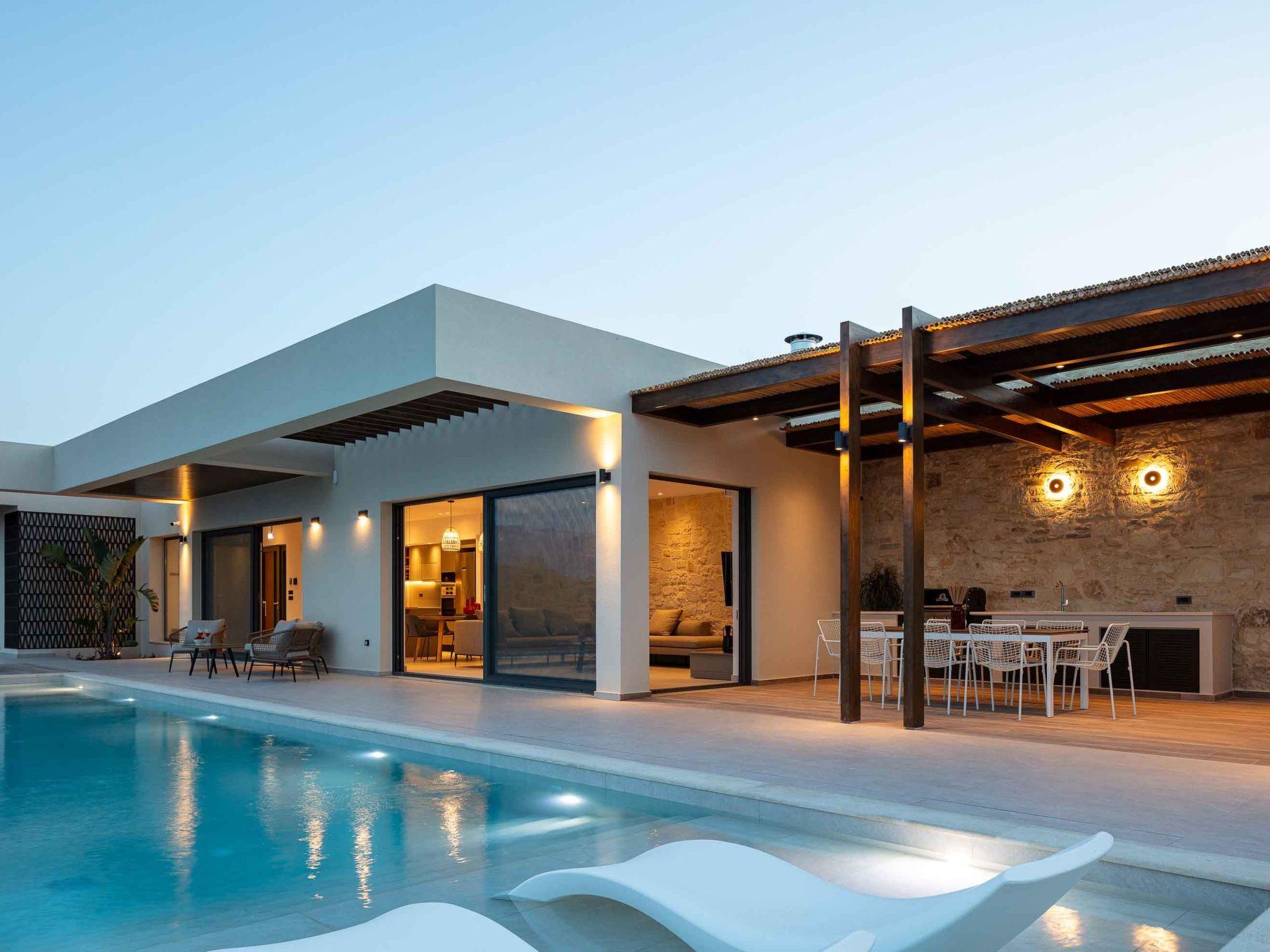 This hidden residence set within the area of Xirokambi, is a true gem and the perfect spot for guests who would like to relax away from the lights of a town! Spread over one floor, Villa Aglaea is designed to bring ease, offering everything needed for a comfy home base. A one-floor property equipped with all the necessary facilities, furnished with an exceptional selection of elements and its impeccable stylish decor will instantly wow you from the moment you step foot in it. On an envious spot with a panoramic view, you can make the most of your holiday and create an unforgettable experience, this is your unique well-being retreat break!