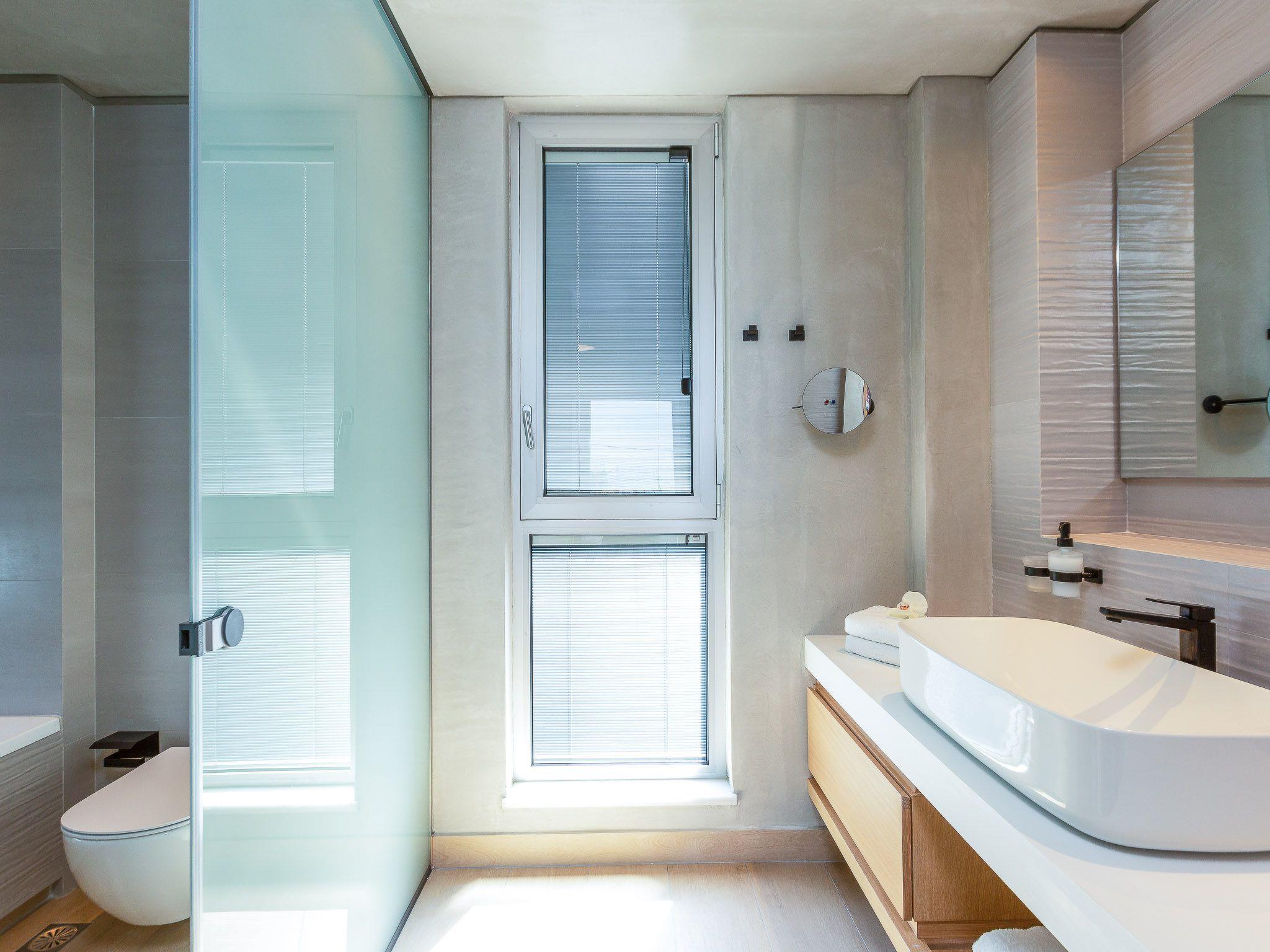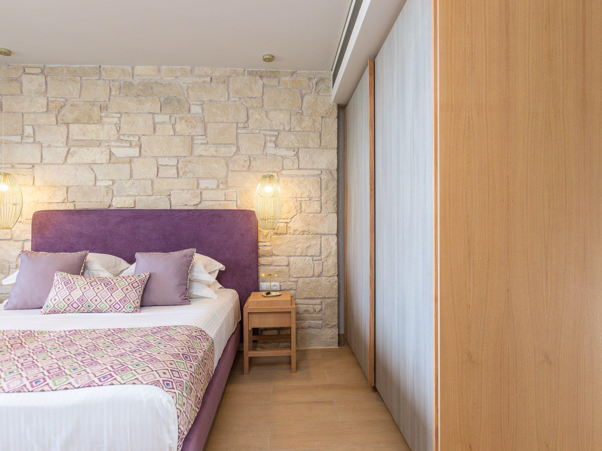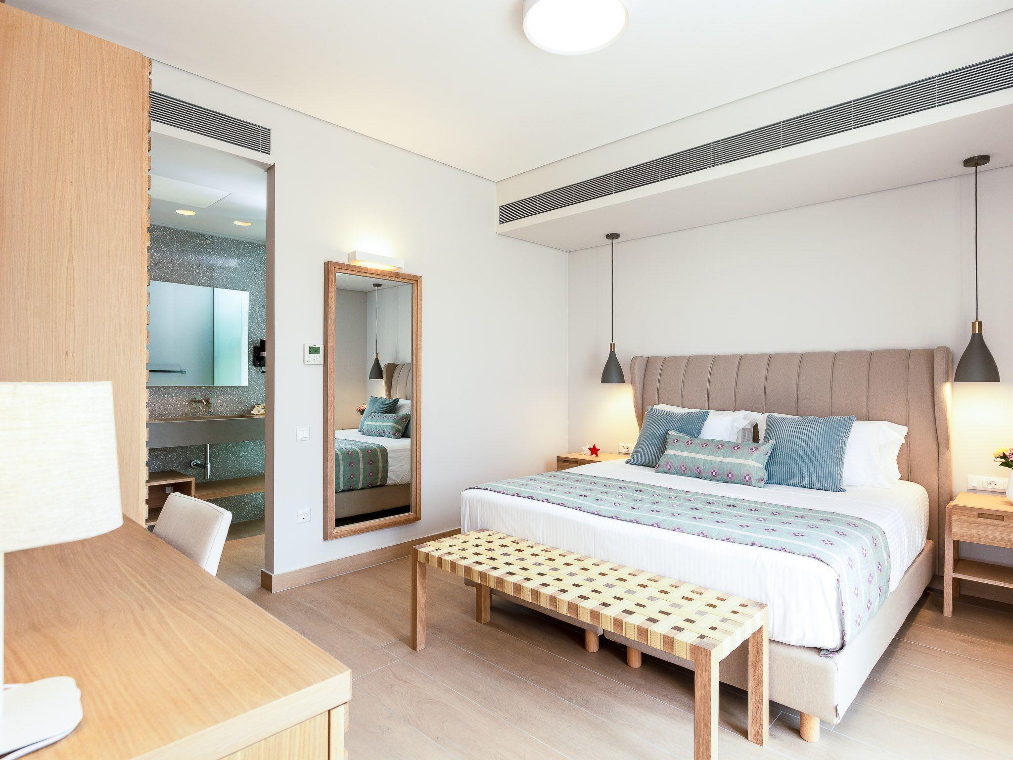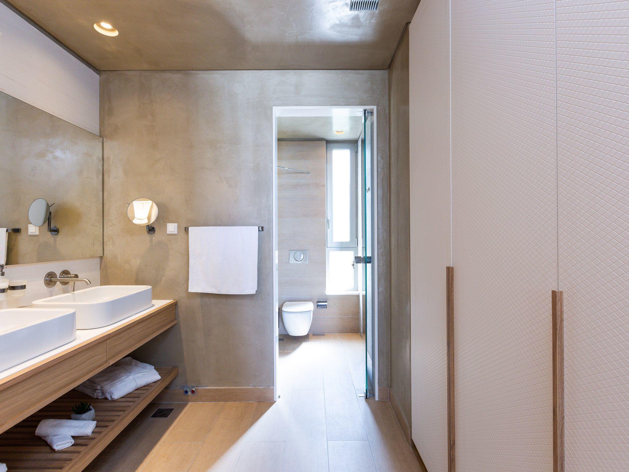 Floor Layout: •Ground floor -one master bedroom with one double bed, en-suite bathroom room, a living room with fully-equipped kitchen and dining area for up to 10 persons -1 WC Bathroom •First floor: -3 bedrooms with king size bed and en-suite bathrooms all with A/C, TV and balconies