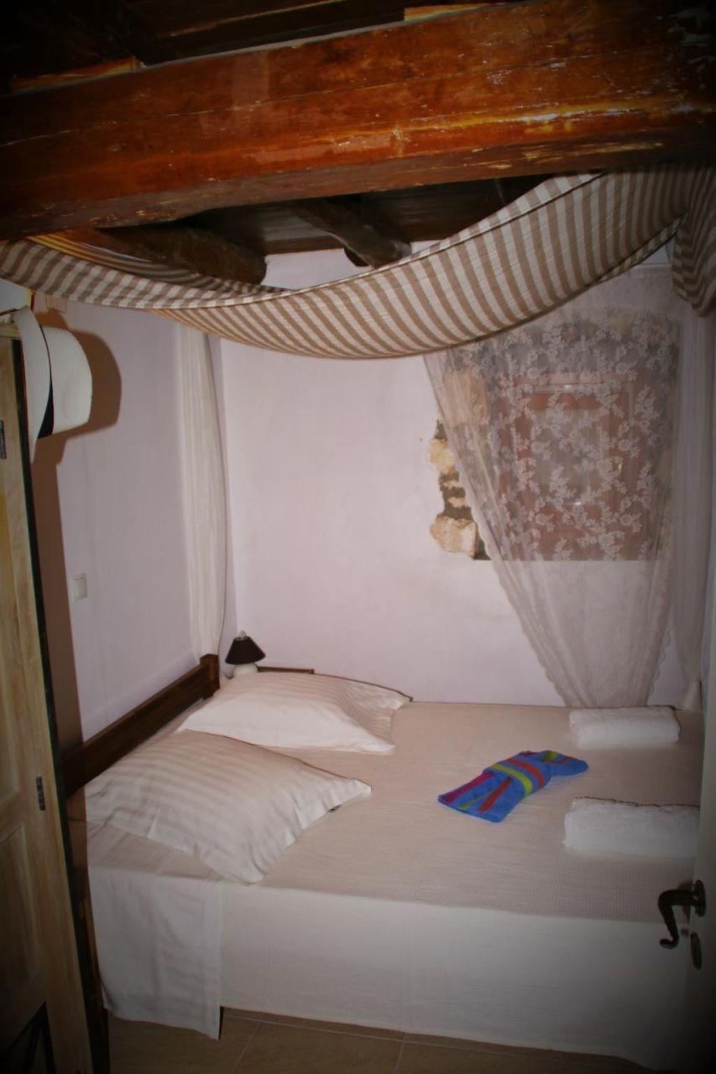 An old stone staircase leads to the big outside balcony on the first floor, where you can have your breakfast in the morning watching the nice view around or enjoy your drink at night watching the millions of stars in a clear sky. As you enter to the house, there is on the right side, The master bedroom with king size bed facing from the window the outside alea and the hill across, while from the inside bathroom's window the view to the village and the sea is catching your eye. On the left side of the floor exist Another double bedroom and A two single beds room sharing a bathroom. In between the bedrooms there is the living-dining room and kitchen place where you can enjoy as well the 42 inches flat satellite TV either laying in the huge couch or sitting in the Chesterfield leather sofa.
