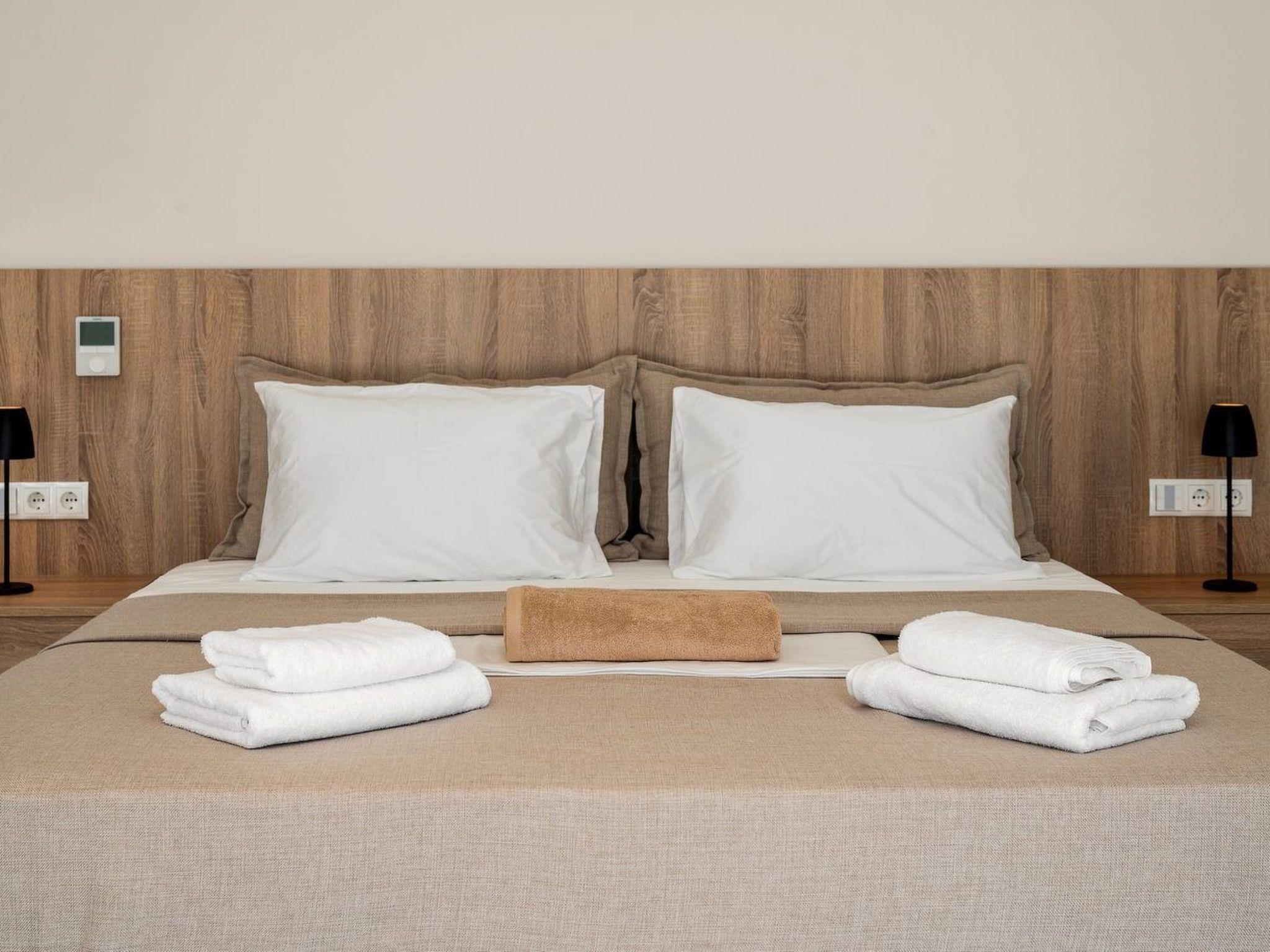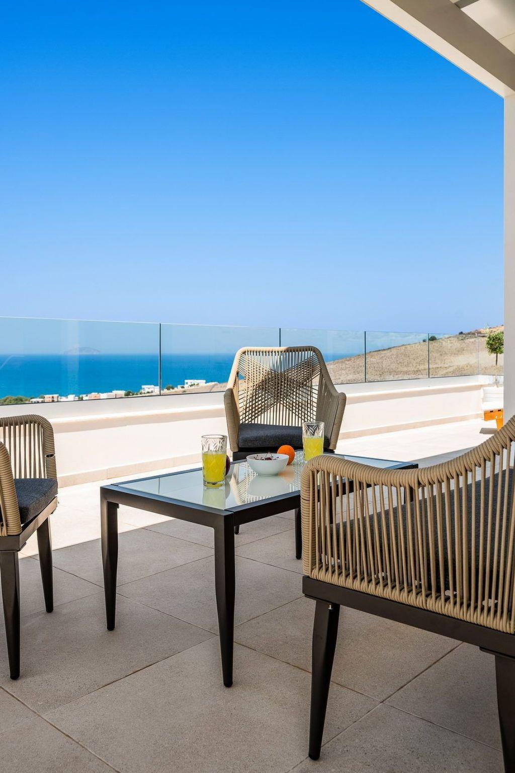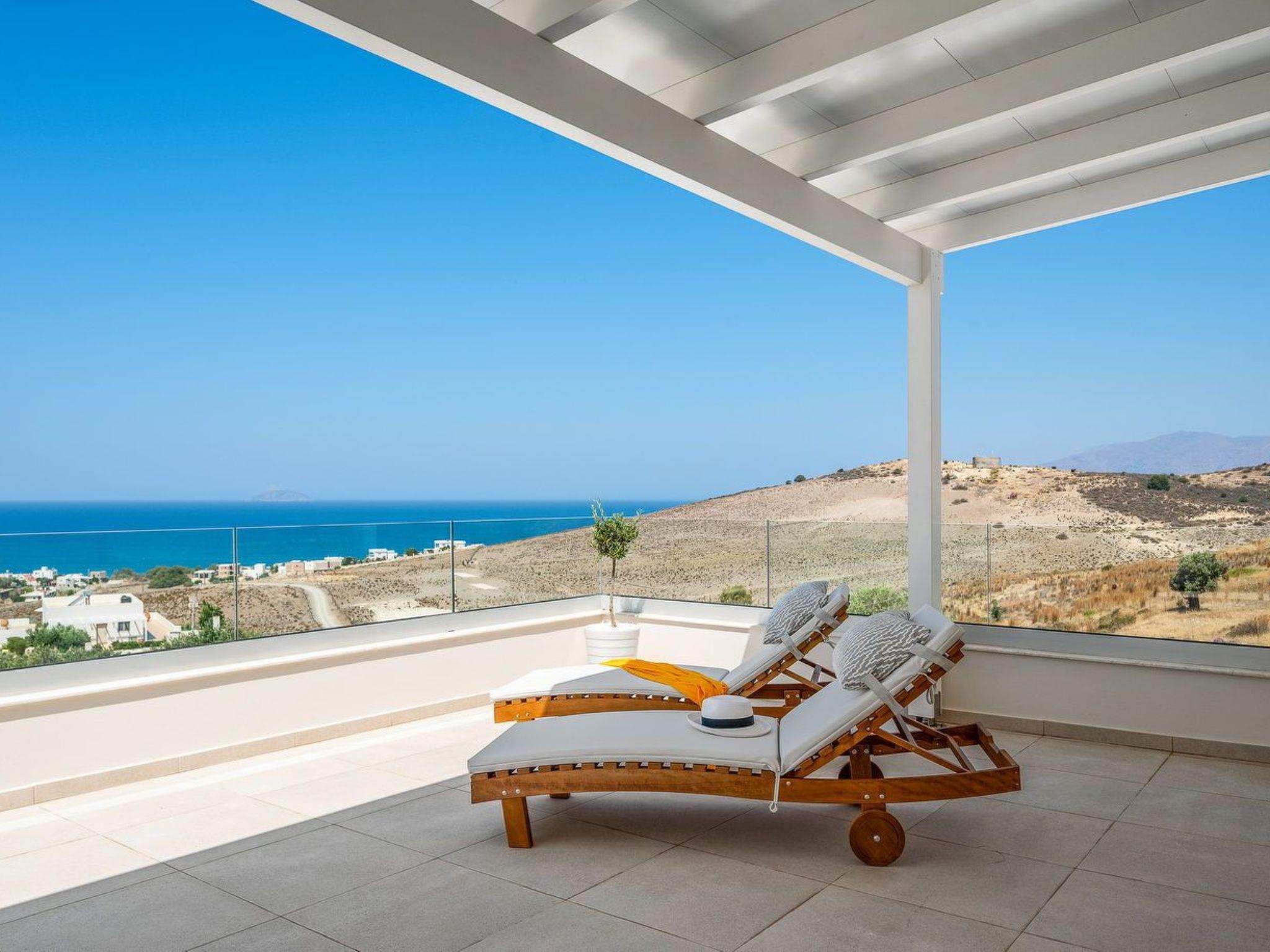In the villa you will find a modern interior design on two levels with a total of 150m² of living space and a 50m² balcony, ideal for 4-6 people. The upper floor contains an inviting eat-in kitchen with smart home technology, sofa bed, high-quality kitchen equipment, dining table and panoramic windows that flood the room with light and bring the fascinating sea view directly into your living room. A staircase leads to the 3 spacious bedrooms on the lower floor, each equipped with king-size beds, Smart TV, fan coil air conditioning and an en-suite shower room, each with access to the pool and outdoor kitchen.