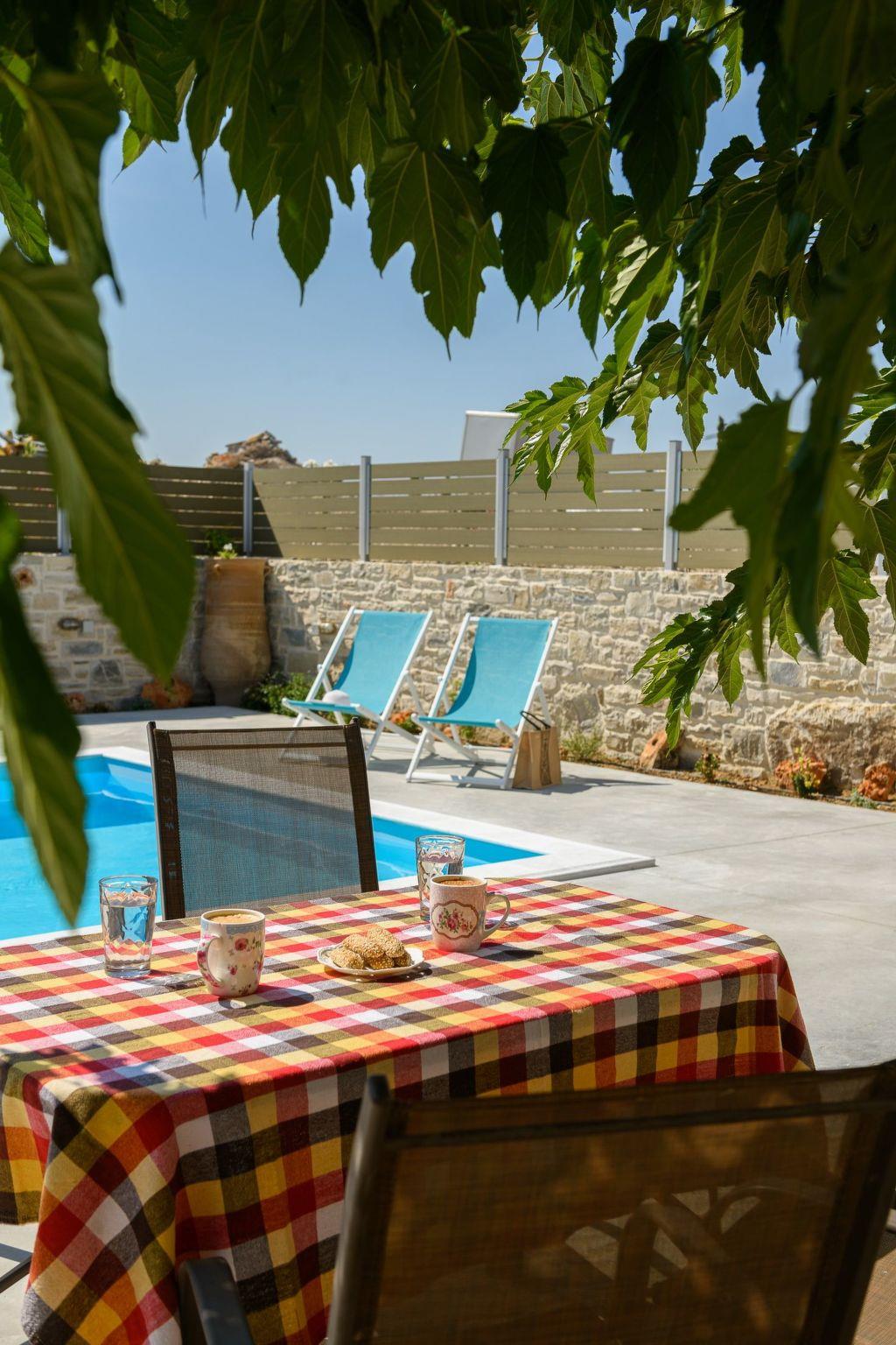 The natural stone villa has its own entrance with a private terrace and a private freshwater pool 6 x 4 m (1.20 m deep) for your exclusive use, so you can enjoy your coffee or your meals in complete serenity at any time of the day. Whenever you arrive to start your holiday, everything you need for a pleasant stay will be waiting for you, including a welcome basket.