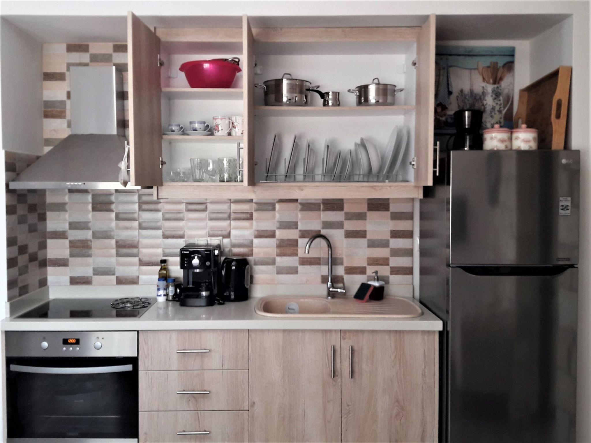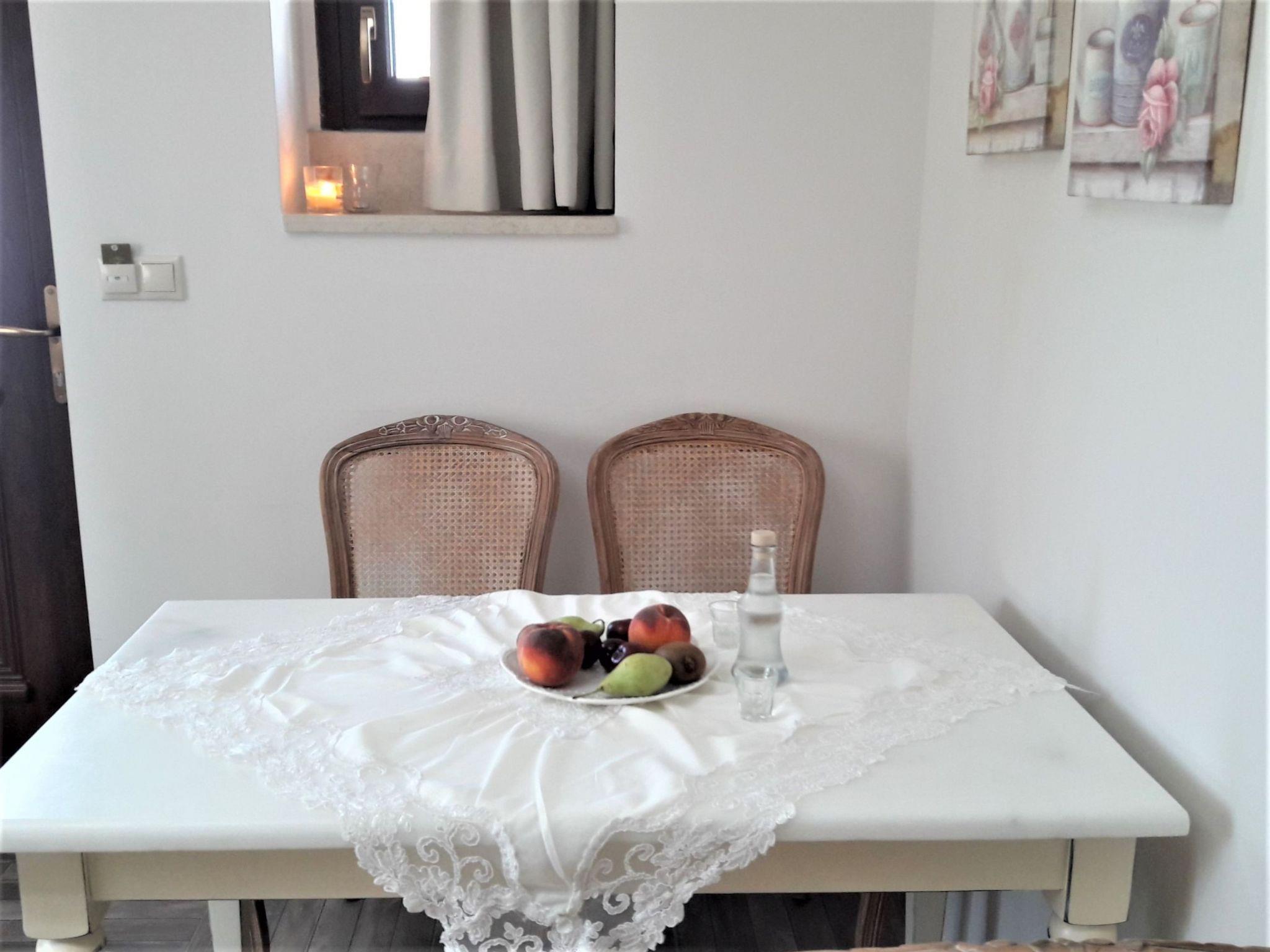 The flat has its own entrance with a private terrace, so you can enjoy your coffee or meals in complete serenity at any time of the day. Whenever you arrive to start your holiday, everything you need for a pleasant stay will be waiting for you, including a welcome basket. The flat of 45 square metres was built in 2017 and has a living room, a bedroom with a double bed and a bathroom suitable for 2 people. The flat has a fully equipped kitchen with all modern appliances (electric hob with oven, extractor fan, fridge with integrated freezer, filter coffee and espresso machine, toaster, kettle, electric fruit juicer), together with crockery, glassware and cookware. The bathroom is well equipped with shower cubicle, shampoo, towel sets, hairdryer and a first aid medicine kit. - High quality heating and air conditioning. - Ironing set. - Plasma TV with satellite channels. - Lockable safe. - Free Wi-Fi in the rooms and pool area. - Bed linen and towels are changed twice a week and cleaning is done twice a week. - The terrace is fully equipped with appropriate tables and chairs and a sun pergola.