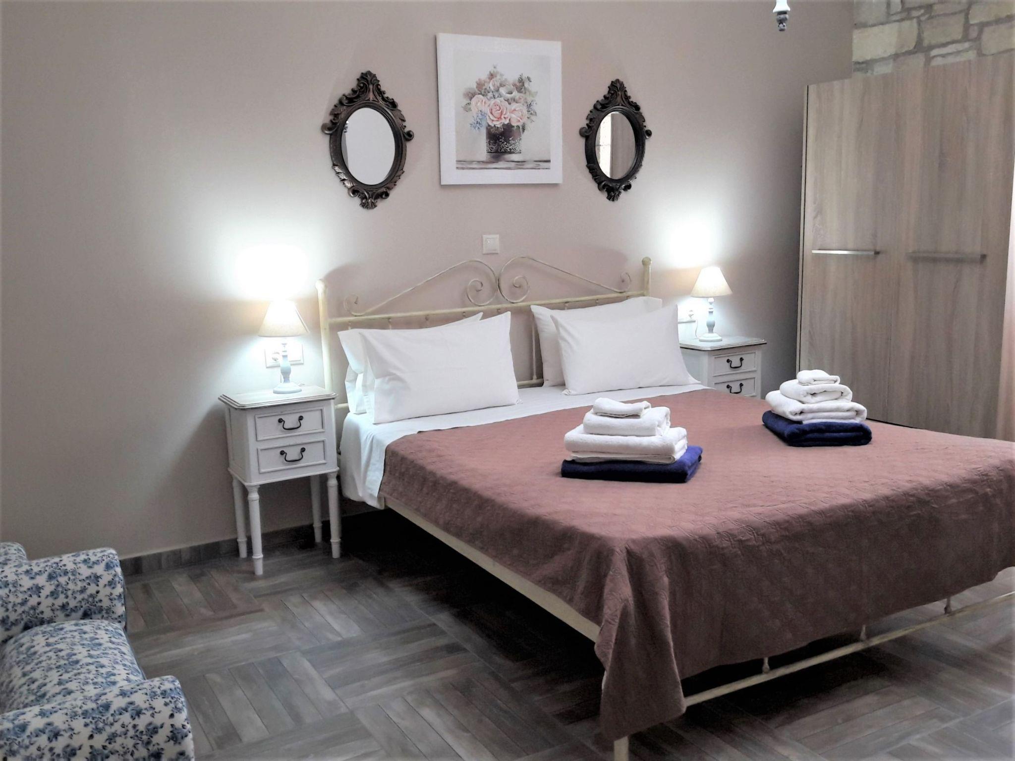 This cosy stone-built flat with mountain views is located on the crest of a small hill near the village of Kamilari (1km) with views of the top of the Psiloritis mountain range, not far from the beautiful sandy beach of the seaside resort of Kalamaki (2km).