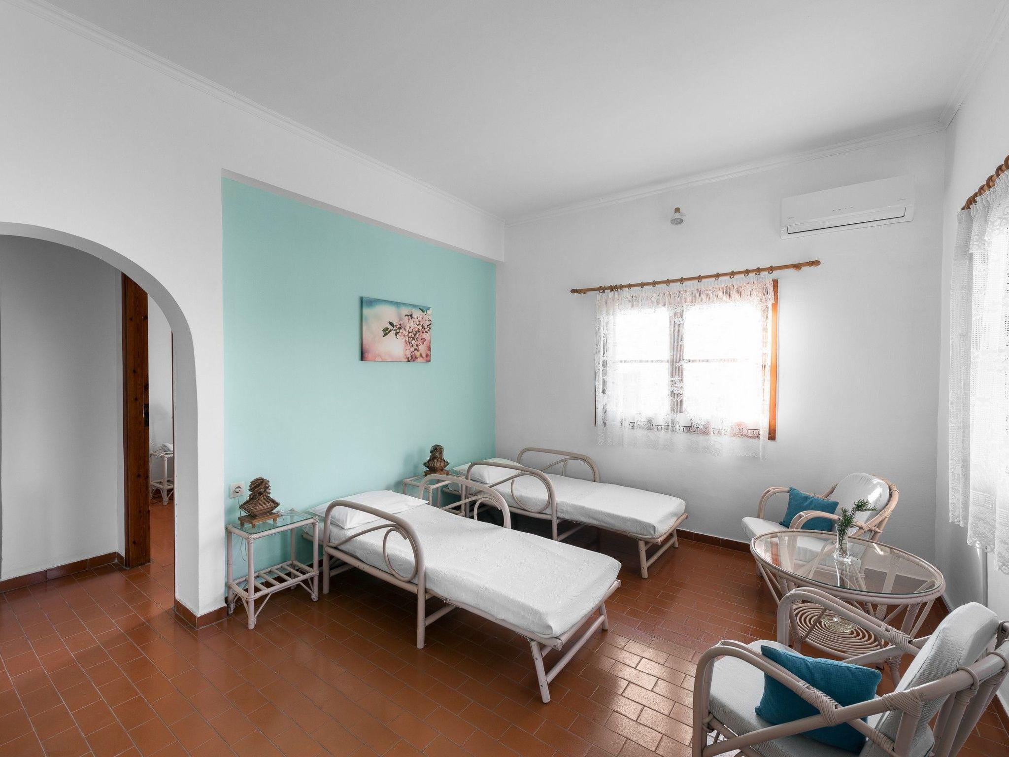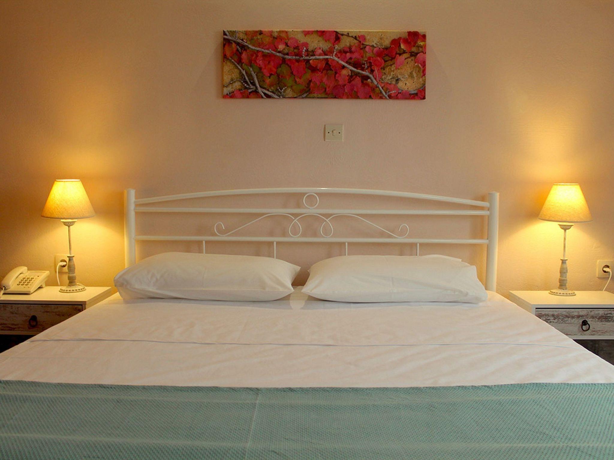 Location: Completely quiet on a large plot of land with olive and pine trees on a hillside on the edge of the pretty village of Mavrovouni. The complex is located above the long sandy beach, which can be reached via a small side road. There are 3 tavernas and a beach bar along the beach and a surf school 1.5 km away.