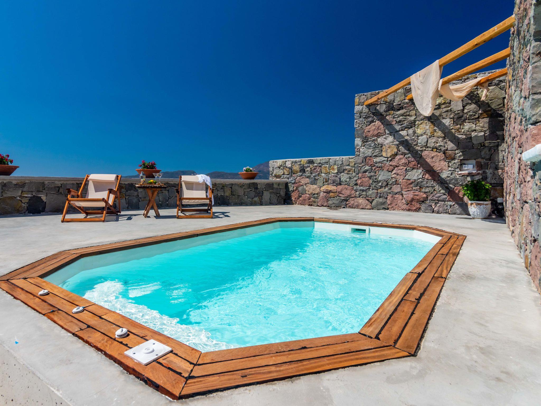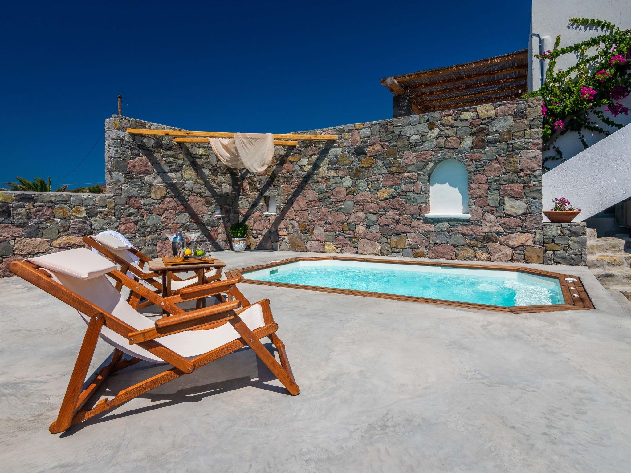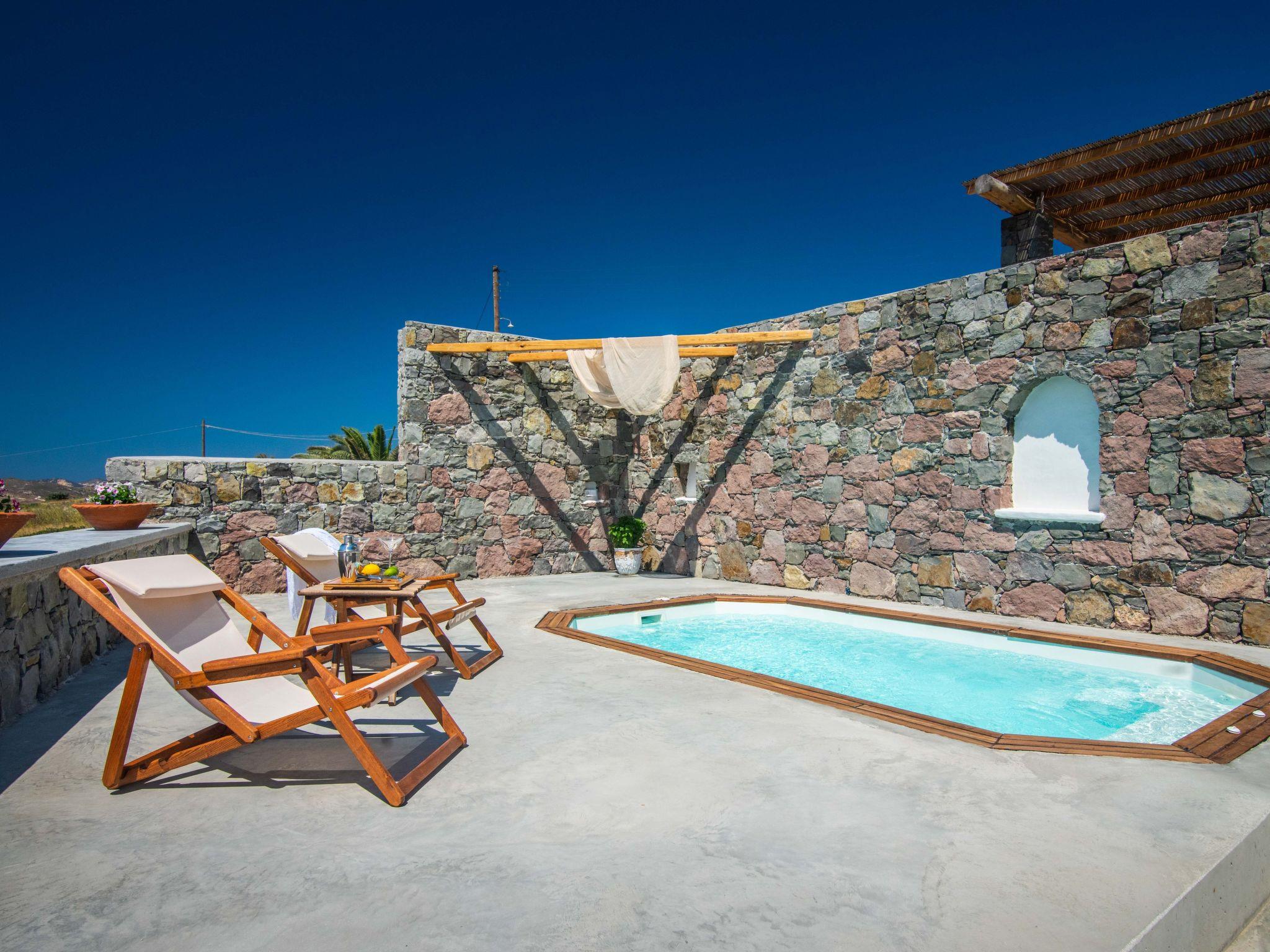 Traditional brand new , one floor Cycladic-style house (77 square meters) with a big veranda, 3,1 klm from the port of Adamas, with mini spa pool, sea view panoramic , fully equipped kitchen and ideal for vacations .