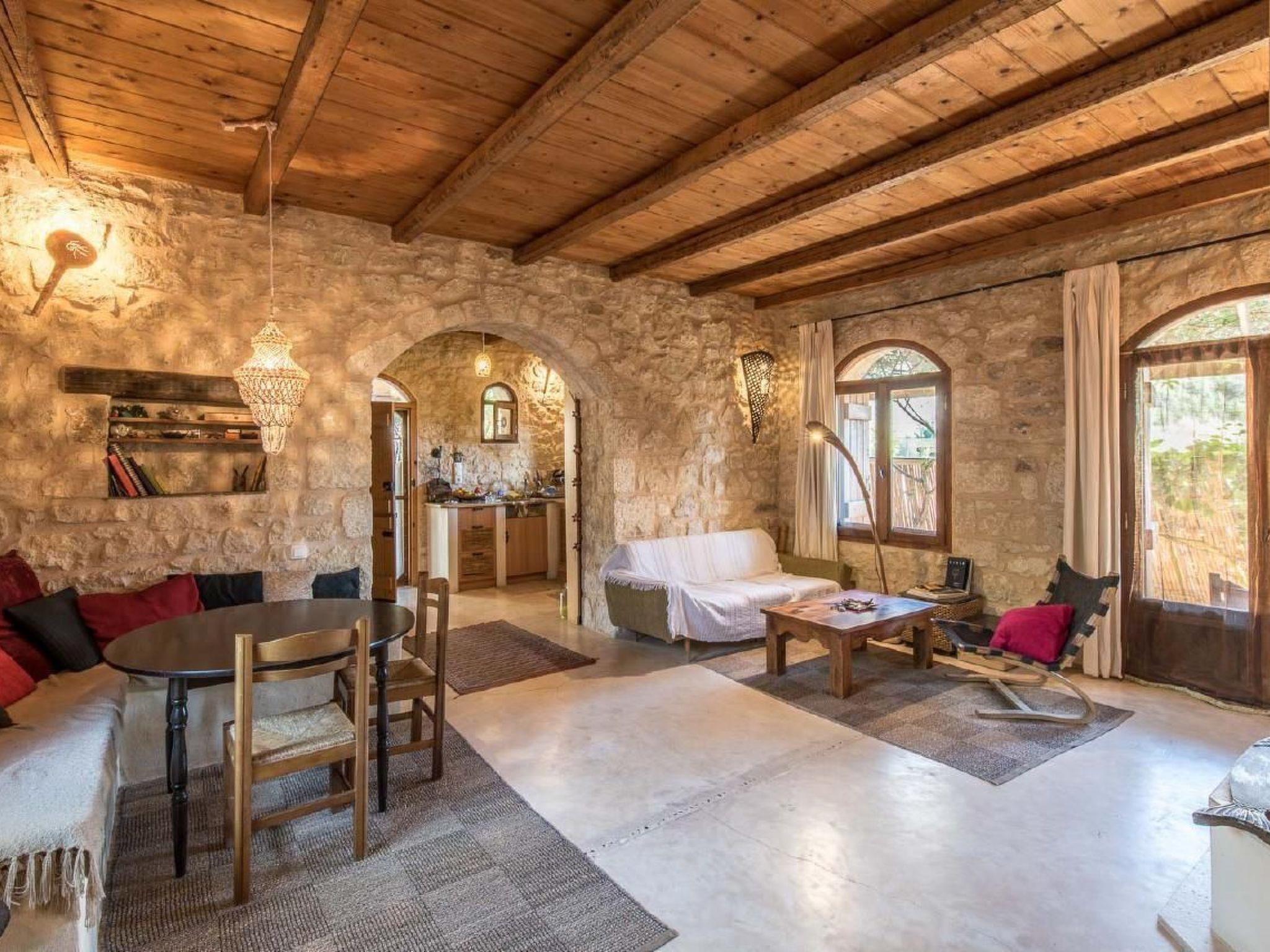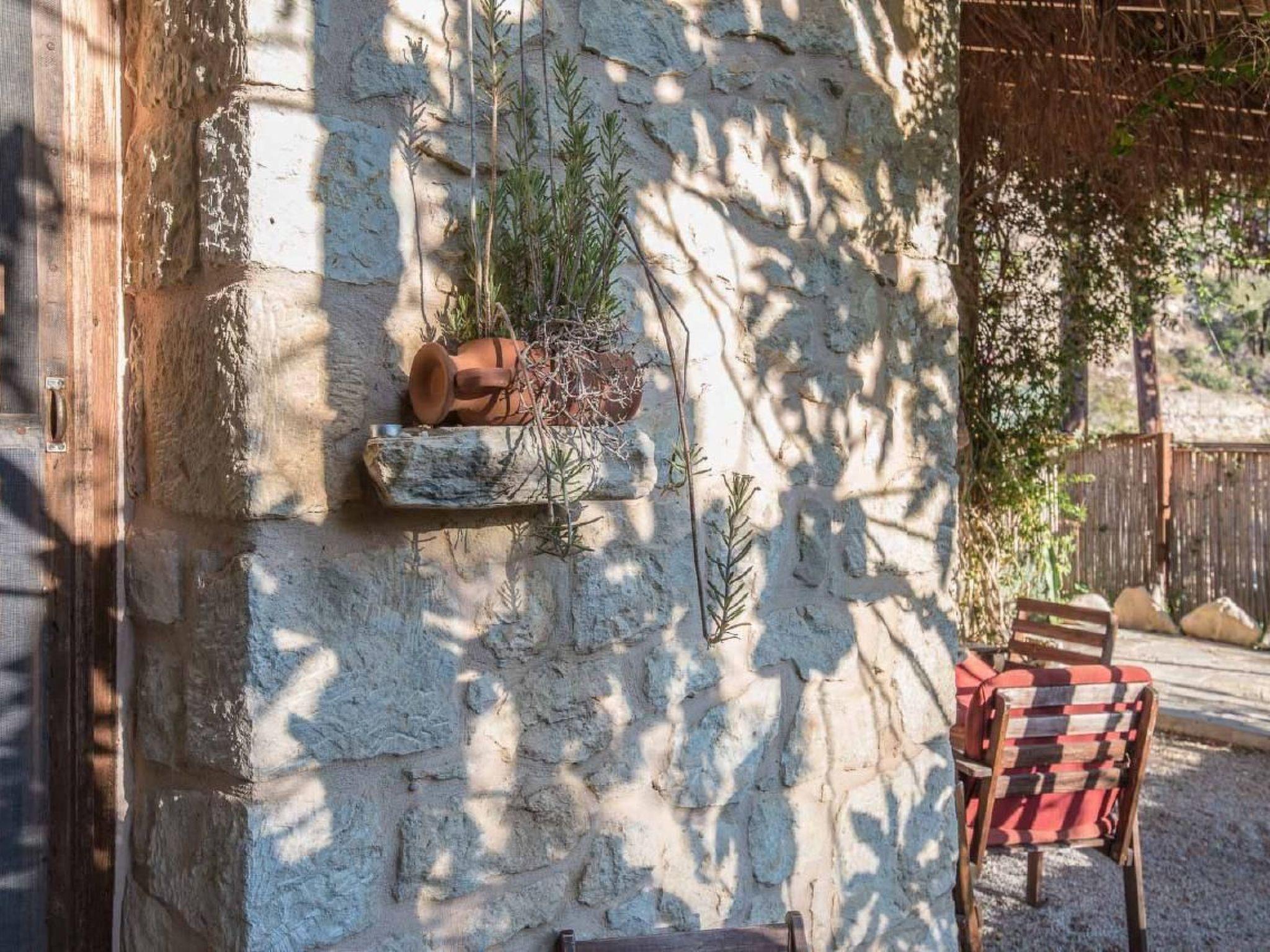 In middle of the idyllically small Tertsa Valley, below the small church, 500 m to the see, the stone built house was designed and built with respect for the environment, in a garden with flowers and fruit trees. Thanks to the traditional stone construction, it offers a comfortable and pleasant stay all year round. It provides simple and bright, well aerated spaces, ideal for relaxation. Outside, there are seating areas to enjoy. There is also a fire-place with possibility for barbecue. The Interior offers a kitchen in addition with a storage-room for refrigerator, washing machine and space for all the essentials for every days use. It has a spacious living room to feel pleasant. In winter nights a fireplace gives warmth and atmosphere. The two bedrooms are with double beds. They have doors to the garden. WLAN Access and a screen with an apple-tv Box.