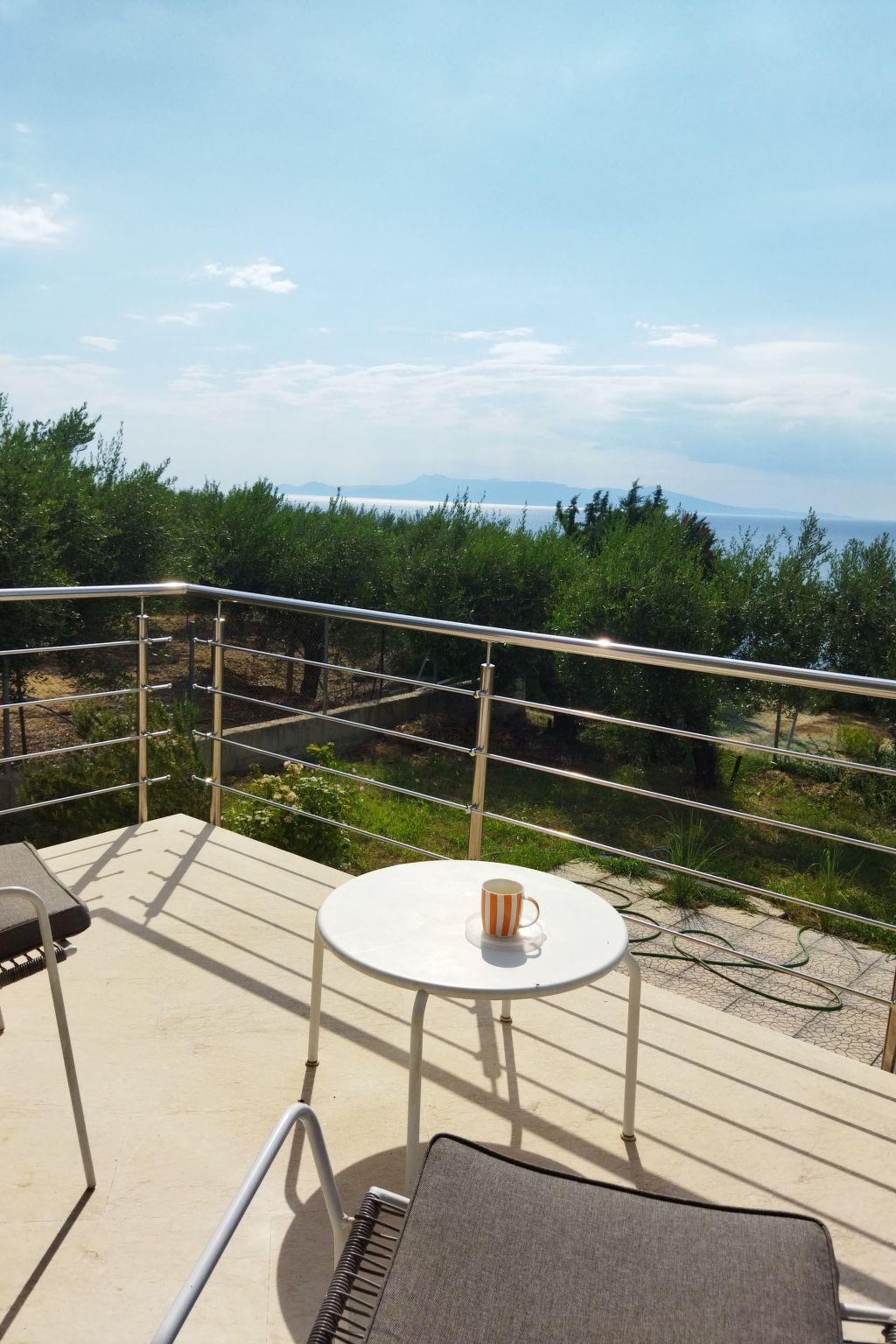Discover your own private paradise in this charming villa in Paralia Mirtofitou, ideal for couples seeking peace and seclusion in a picturesque setting. Nestled among olive groves, this detached holiday home with its exclusive terrace and breathtaking sea views provides the perfect backdrop for an unforgettable getaway. Thanks to the generous window fronts, the feeling of living indoors is complemented by the natural beauty of the surroundings - a place that puts tranquillity and nature centre stage.