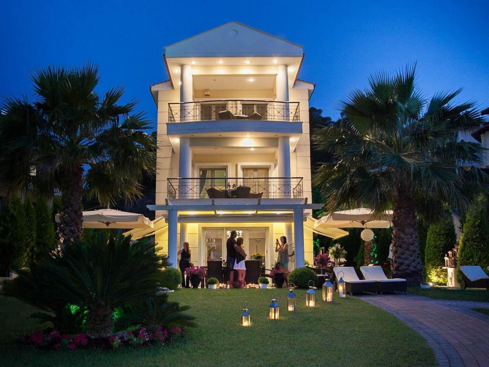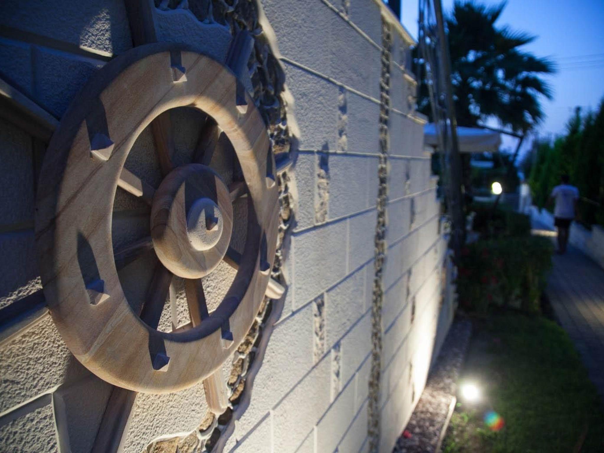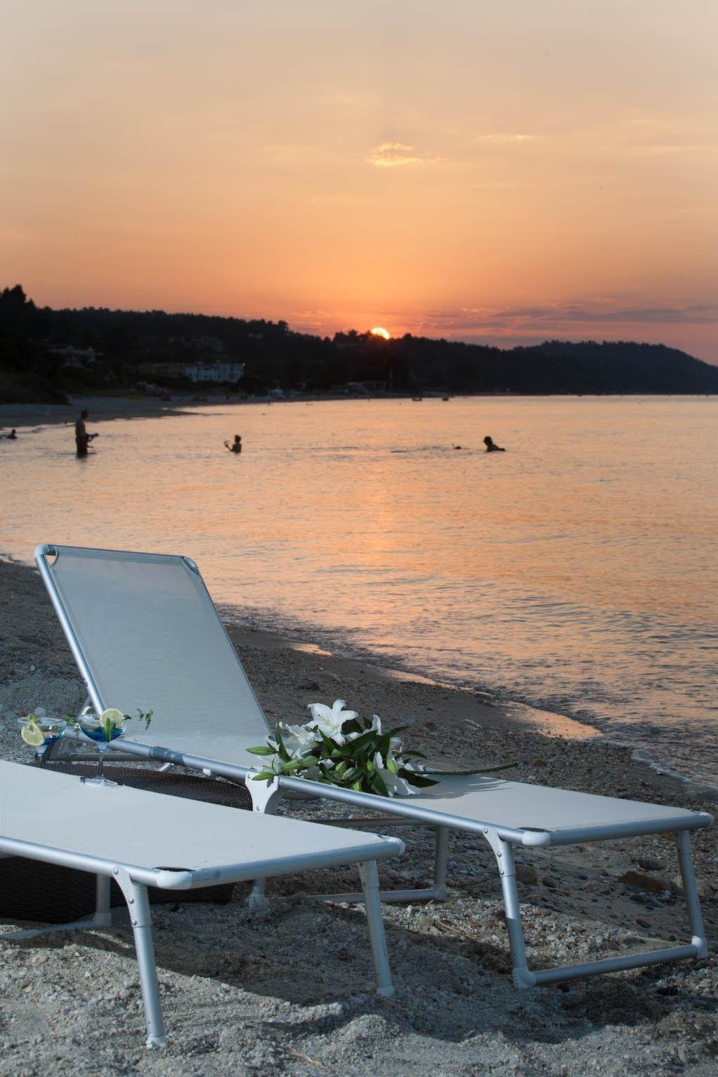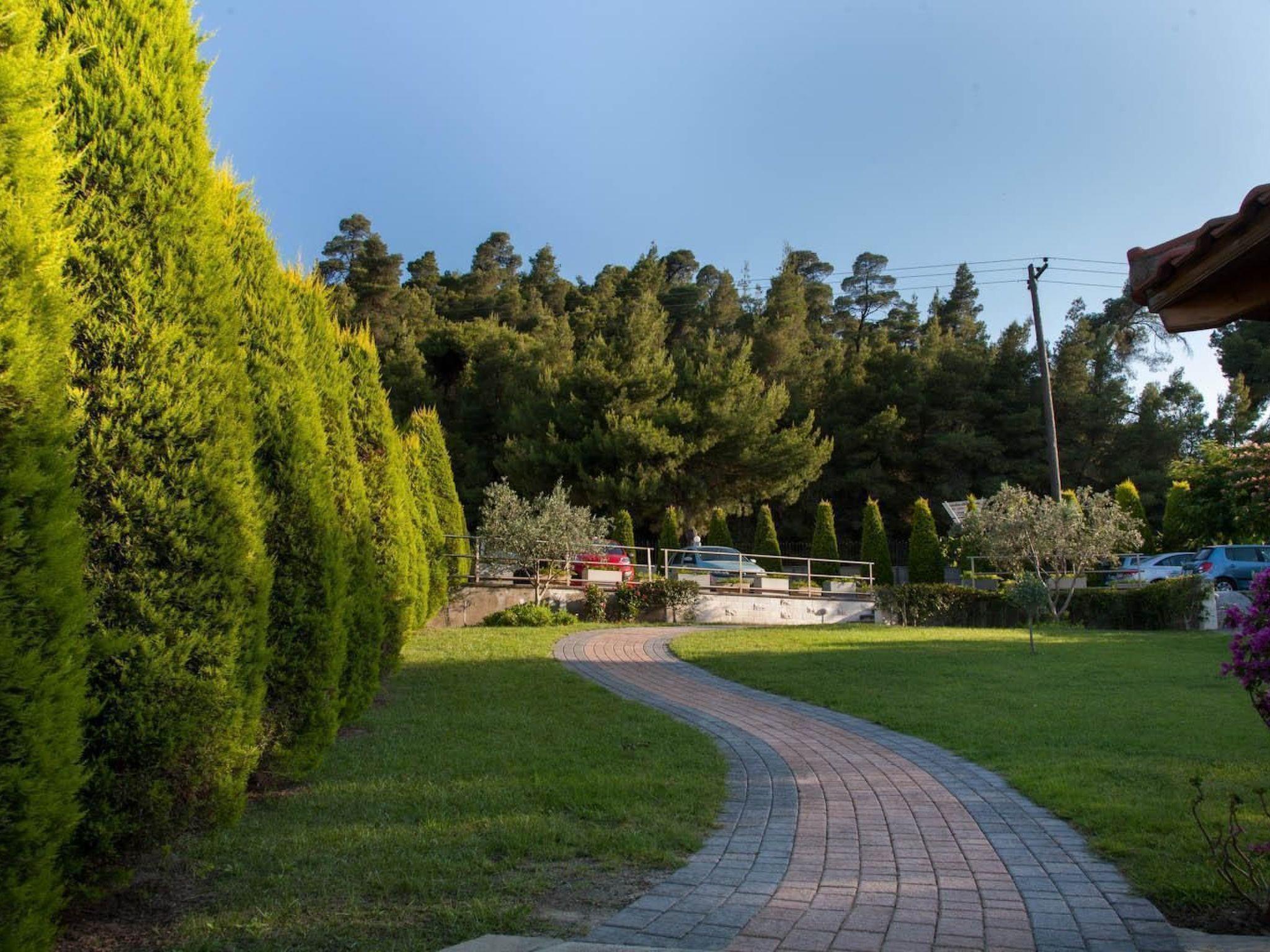 You are in a place where you can enjoy the sea breeze and the best Mediterranean climate. With private access to the beach, direct location to the crystal-clear bay with sunrises and sunsets, surrounded by idyllic countryside and several cycling and hiking trails. The ideal retreat from the hustle and bustle of modern life. Would you prefer to enjoy nature rather than water sports such as water skiing or windsurfing? You can still have a wonderful time in the area surrounding your accommodation, mountain biking, cycling tours, hiking, golf, mini golf, bowling, and so on. In general, you can see, hear, smell, taste and feel Greek culture in Halkidiki. When travelling around the peninsula, you can hardly get enough of the visual attractions that the natural landscape has to offer. Green pine forests alternate with golden flat sandy beaches, green meadows with olive and pistachio trees, steep coasts with extensive vineyards. You will be accompanied by the scent of herbs from the lush vegetation, birdsong and fresh, iodised sea air. For history buffs, there are also numerous museums, archaeological sites and artefacts to explore to familiarise you with ancient Greek culture. Take a trip to Kassandra, where the traditional market takes place, to Meteora, to the Pella theatre and open-air concert, to the ancient archaeological site of Olynthos or to the famous cave in Petralona. Also worth a visit is Athitos, a newly awakened traditional stone-built village with cobbled alleyways and marvellous panoramic spots and bathing bays. The town centre is approx. 700 m away on foot for shopping facilities.