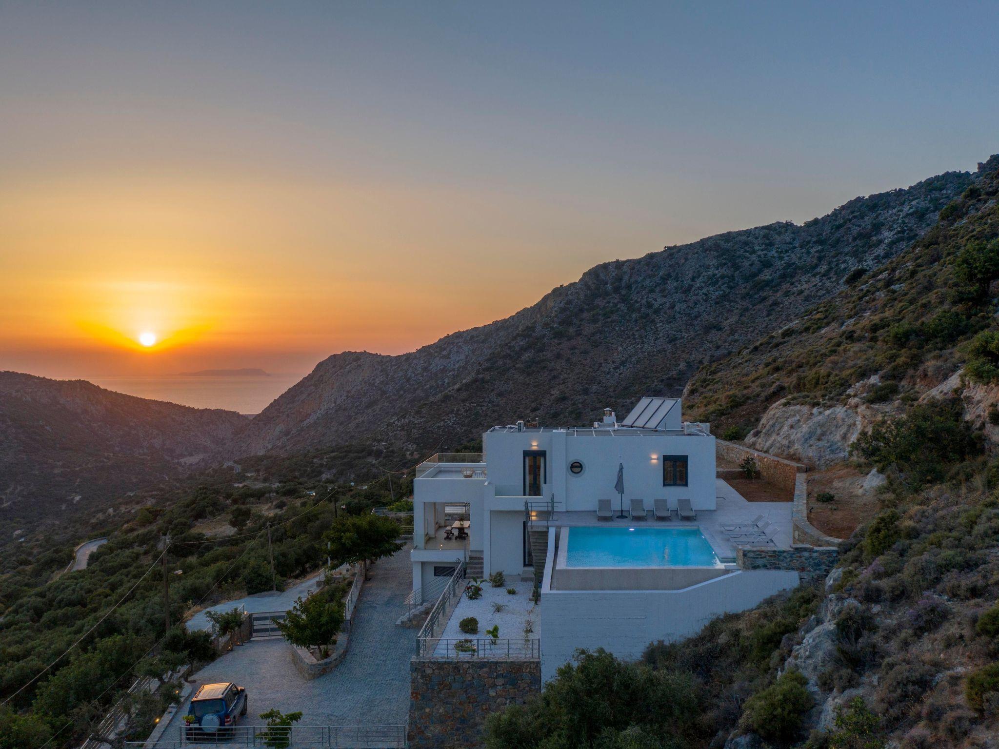 The estate is built on the upper level of the village and faces the North to North-West. This unique spot, offer a breathtaking view of the sunset from the front veranda, that extends to the small island of Dia, North of Crete. The location provides the privacy required to enjoy your much-required vacation, yet it offers easy access to many beautiful beaches on the North of Crete, like Sissi and Malia, as well as worth-visiting attractions, such as Elounda, Spinaloga, Agios Nikolaos and Heraklion.Villa AiresWe are dedicated to providing memorable stays for travelers who seek to enjoy tranquility and luxury in a serene environment. but also the ideal basis for those who want to explore the east of Crete, the Elounda area, Agios Nikolaos town and the beautiful beaches of the South.It’s been only 3 years since Villa Adagio welcomed its fists guests; during all this period we met special people who got really enthusiastic with our services. This is how Villa Aires comes of, following the same philosophy and culture. Our goal was to create a luxurious point of hospitality in an untouched mediterranean landscape next to Vrachasi village. The village of Vrachasi maintains its traditional and authentic aesthetics while being unspoiled from the activities of massive tourism. Aires Villa is located on the foothills of Anavlochos mountain and it offers you a breathtaking panoramic view over the hills of Lasithi and over the cretan sea.The Villa consists of 5 bedrooms, 5 bathrooms and 1 WC in 3 separate levels. On the ground floor there is a living room, a kitchen, an additional WC,one bedroom with an ensuite bathroom. On the first level there are two bedrooms and one more bedroom with an ensuite bathroom. The underground floor there is a detached guest house with an ensuite bathroom.The 50m2 infinity pool is eco-friendly with salt-electrolysis and it is located on the higher floor of this property offering an amazing experience of swimming and relaxing, with an incredible view.