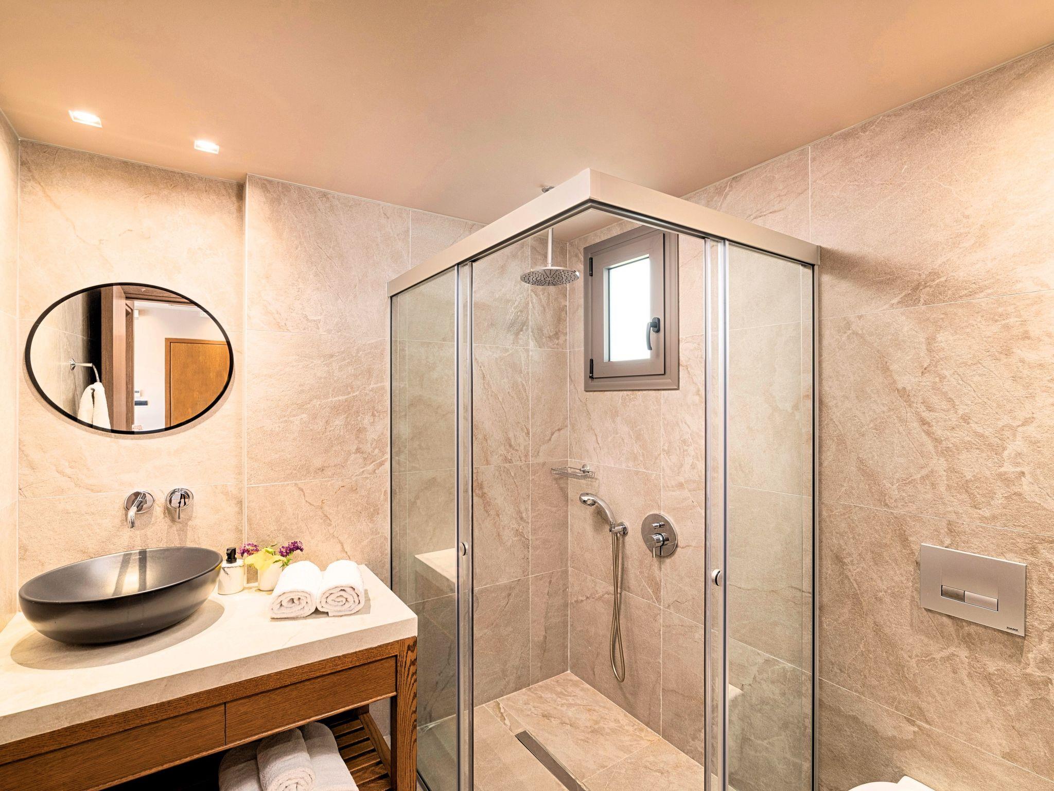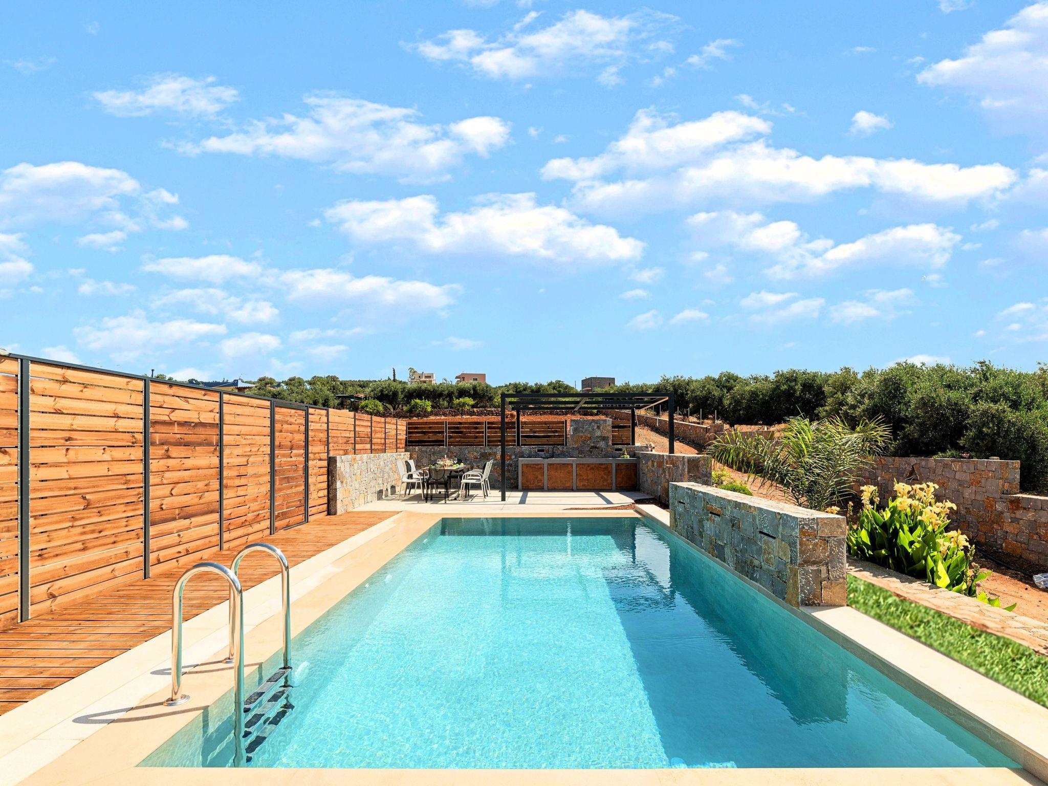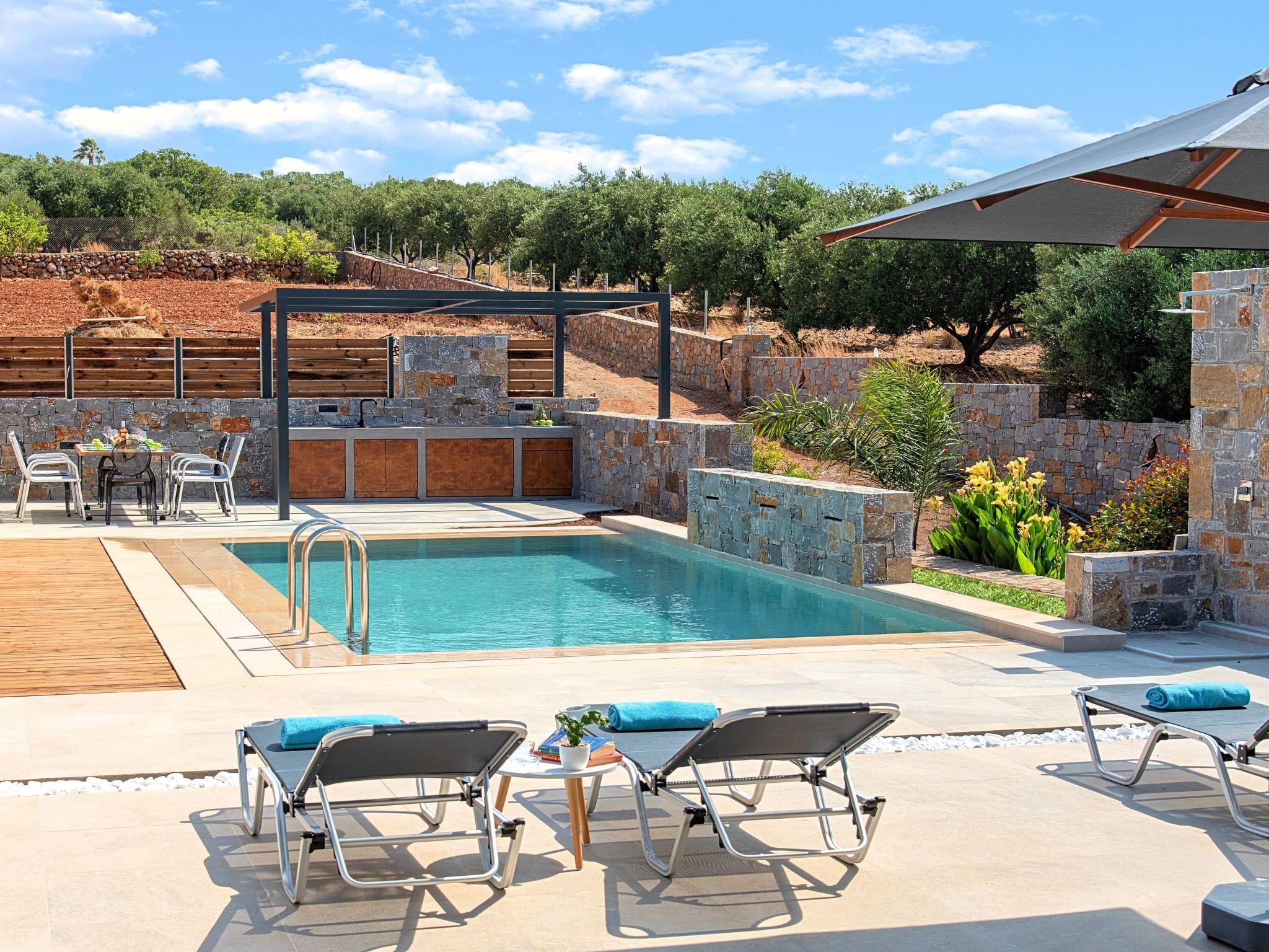 Ground floor* A bedroom with two single pushed together beds and private bathroom.* A bedroom with two single pushed together beds and private bathroom Upper floor* A living room with a large corner sofa (can accommodate two beds) and direct access to the terrace and the pool area.* Smart TV at the living room* Large Kitchen / dining area with an oven, a fridge, a coffee maker, tea facilities, a juicer, a toaster and a dish set.* A bedroom with a queen-size double bed. * A second bedroom with two single beds pushed together. * A large bathroom with shower.* Washing machine / Dryer* Large terrace overlooking the swimming pool* Air-conditioning in all areas.* Free WiFi internet access.* Outdoor dining set (table with chairs).* Iron and ironing board.* Safe deposit box.* Hair dryer.* Linen and towels.* Toiletries.* Swimming pool towels.* Baby cot.* High chair for children.* Towels and bed linen changed and cleaned every 3 or 4 days.* Private parking area.* Direct access to the swimming pool area.* Private swimming pool.* Sun lounge area with sun beds and umbrellas.* BBQ with cooking and dining area next to the swimming pool.Omega Sissi Lux Villa can accommodate up to 10 guests.Guests of Omega Sissi Lux Villa can also be provided with the following services, upon request and at extra cost:* Daily cleaning.* Daily linen and towel change.* Daily swimming pool cleaning.* Car rental service.* Transfer service.* Travel services.* Daily delivery of groceries.* Water sports.* Yacht cruises.* Babysitting.