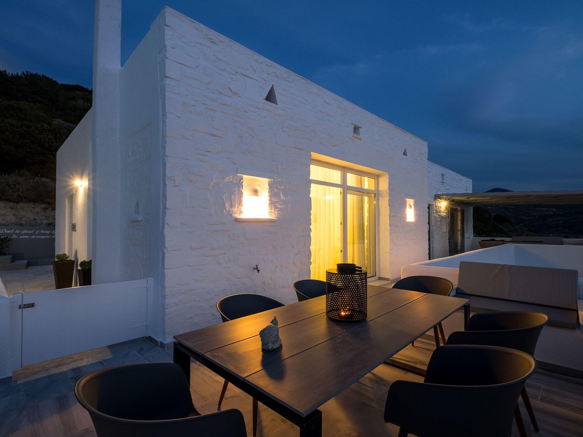 This is a complex consisting of three independent residences in two levels total area of 283m2, is built in respect to the Cycladic Architecture and environment. Located on the hill of Elitas in Parikia with unlimited view to the port of Paros.