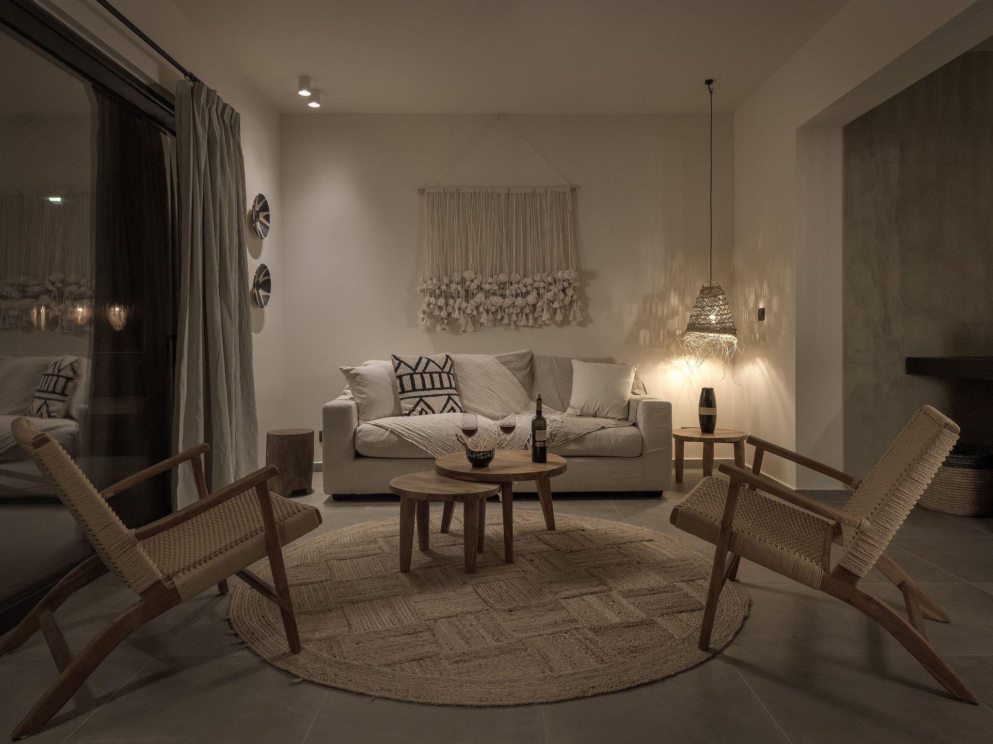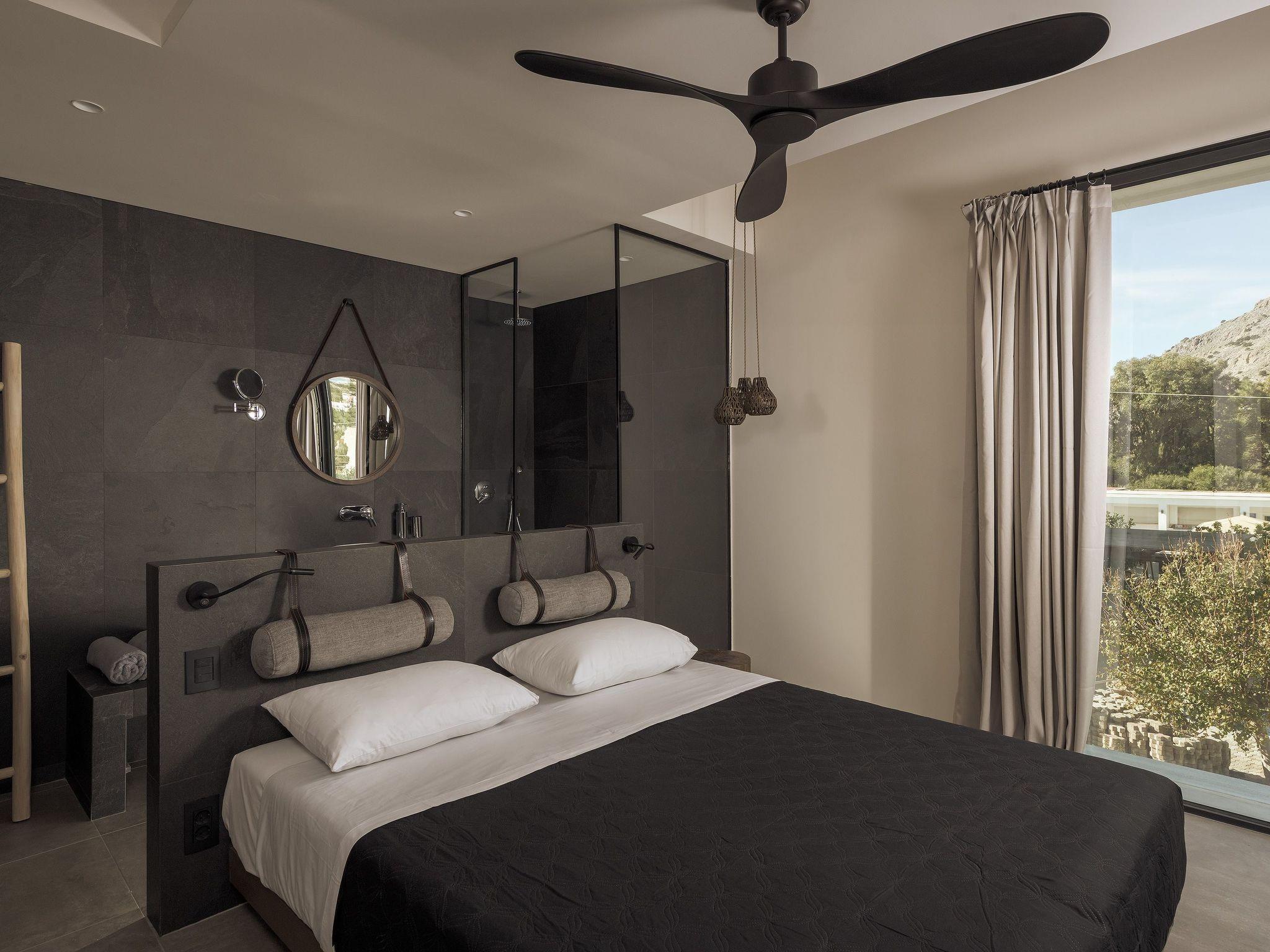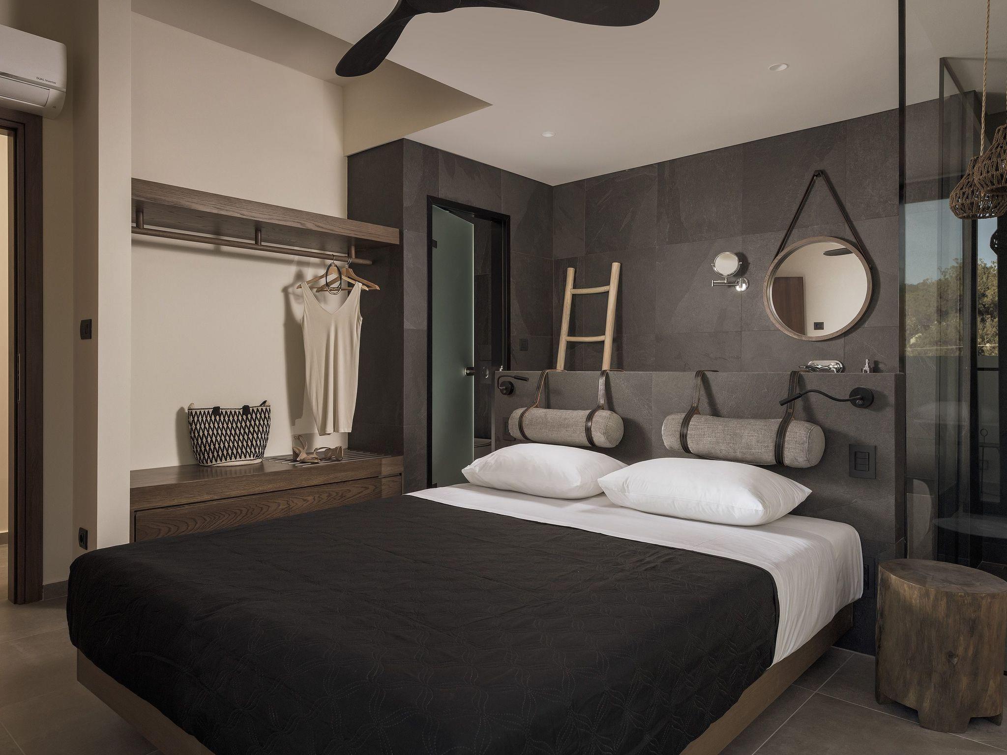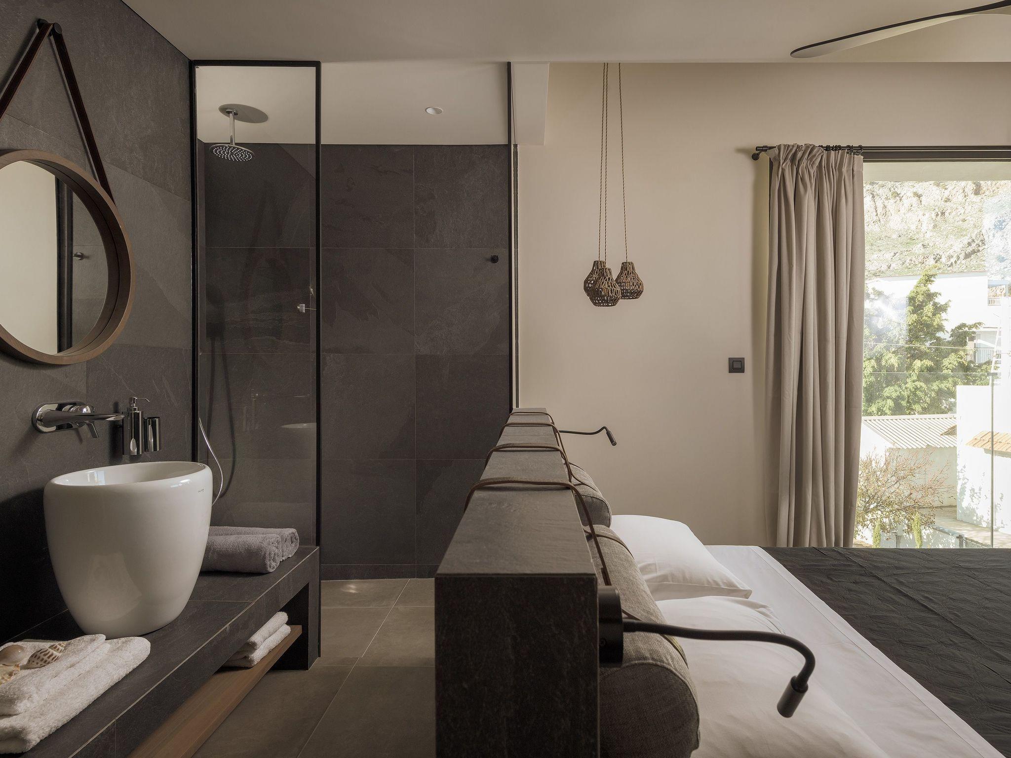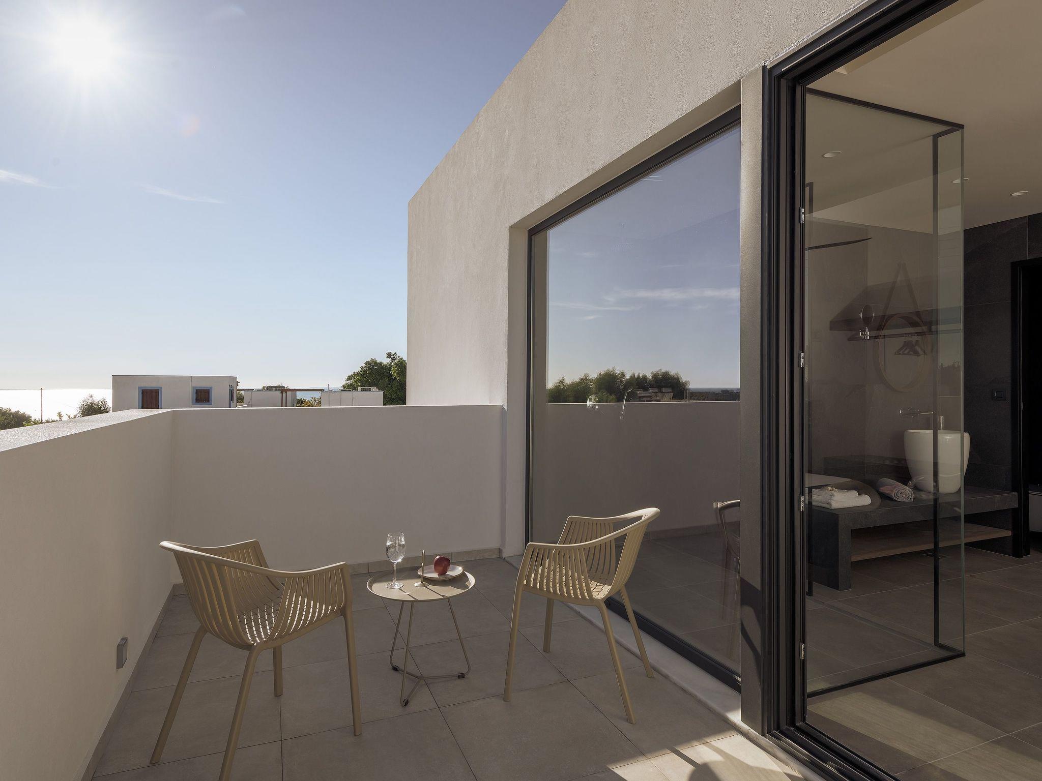 Eva Villa features 3 wonderful bedrooms with ensuite bathrooms and beautiful balconies, some of them offer a sea view. Two of the bedrooms have double beds and the other one has 2 single beds, all of them are fully air-conditioned. The modern living room, along with a siting area, combines luxurious comforts with a clear sense of home. The care that was put to the design of the property was meant to create a welcoming ambience with a warm modern décor. The classy kitchen is fully equipped with every amenity you may need and is complimented by the BBQ facility outside, for you to indulge in culinary. Guests can enjoy free Wi-Fi access throughout the property. Outdoors, you will find the amazing private swimming pool along with its stylish sunbeds. There, you can enjoy the summer sun; without doubt you’ll get the island feeling. The surrounding of the tastefully designed pool is quite pleasant, with a sitting area allowing you to enjoy any meal with your loved ones.