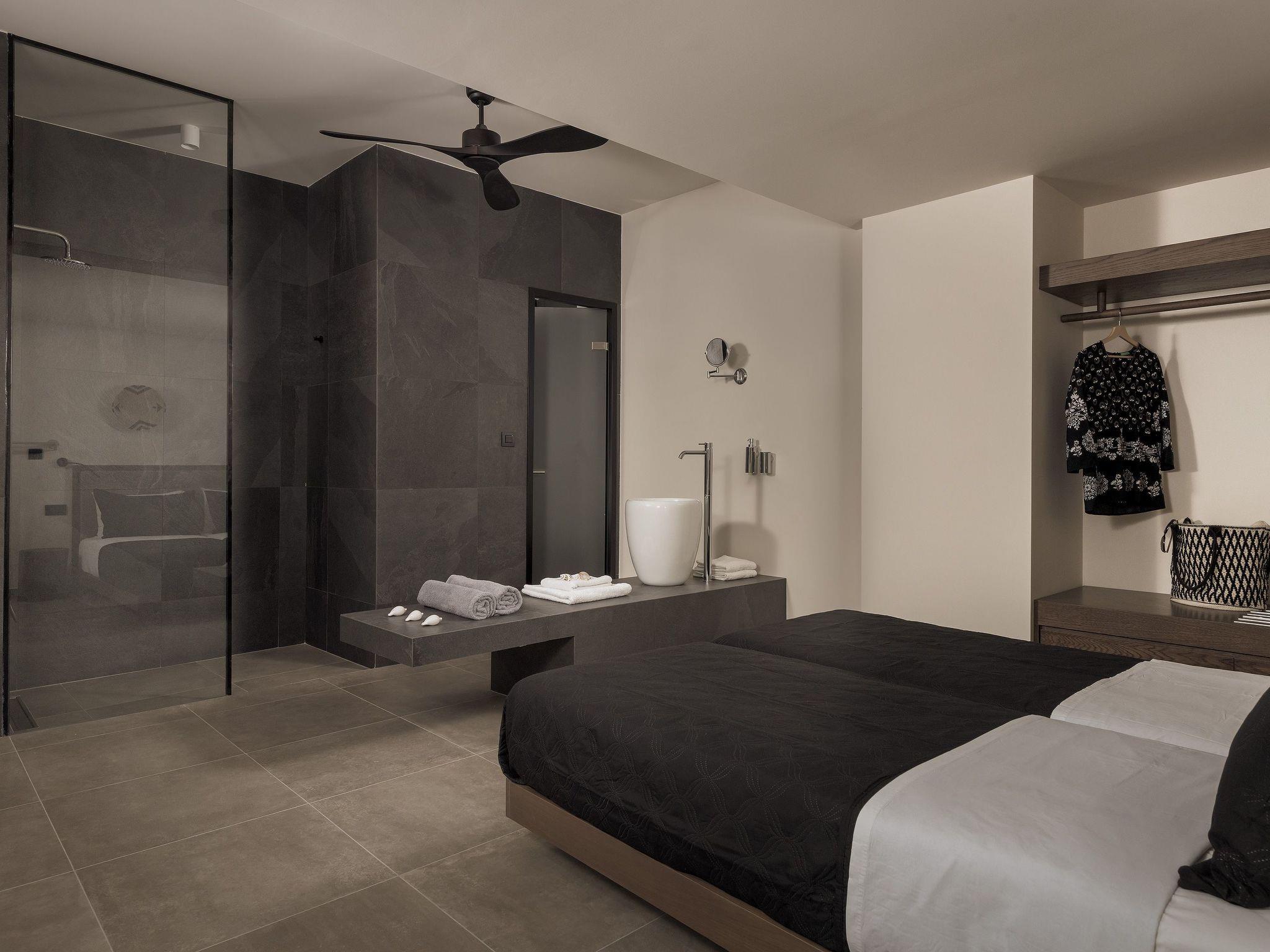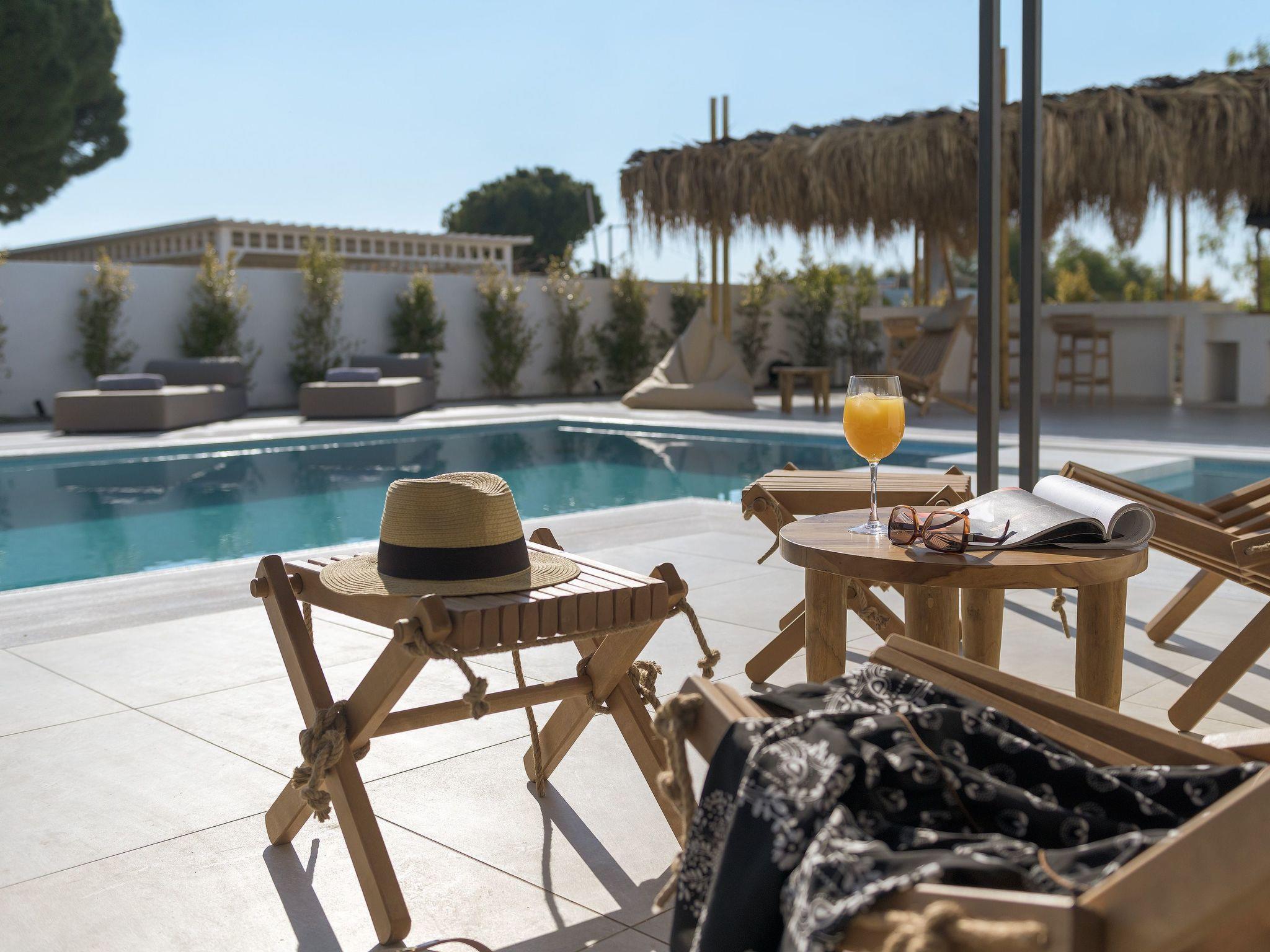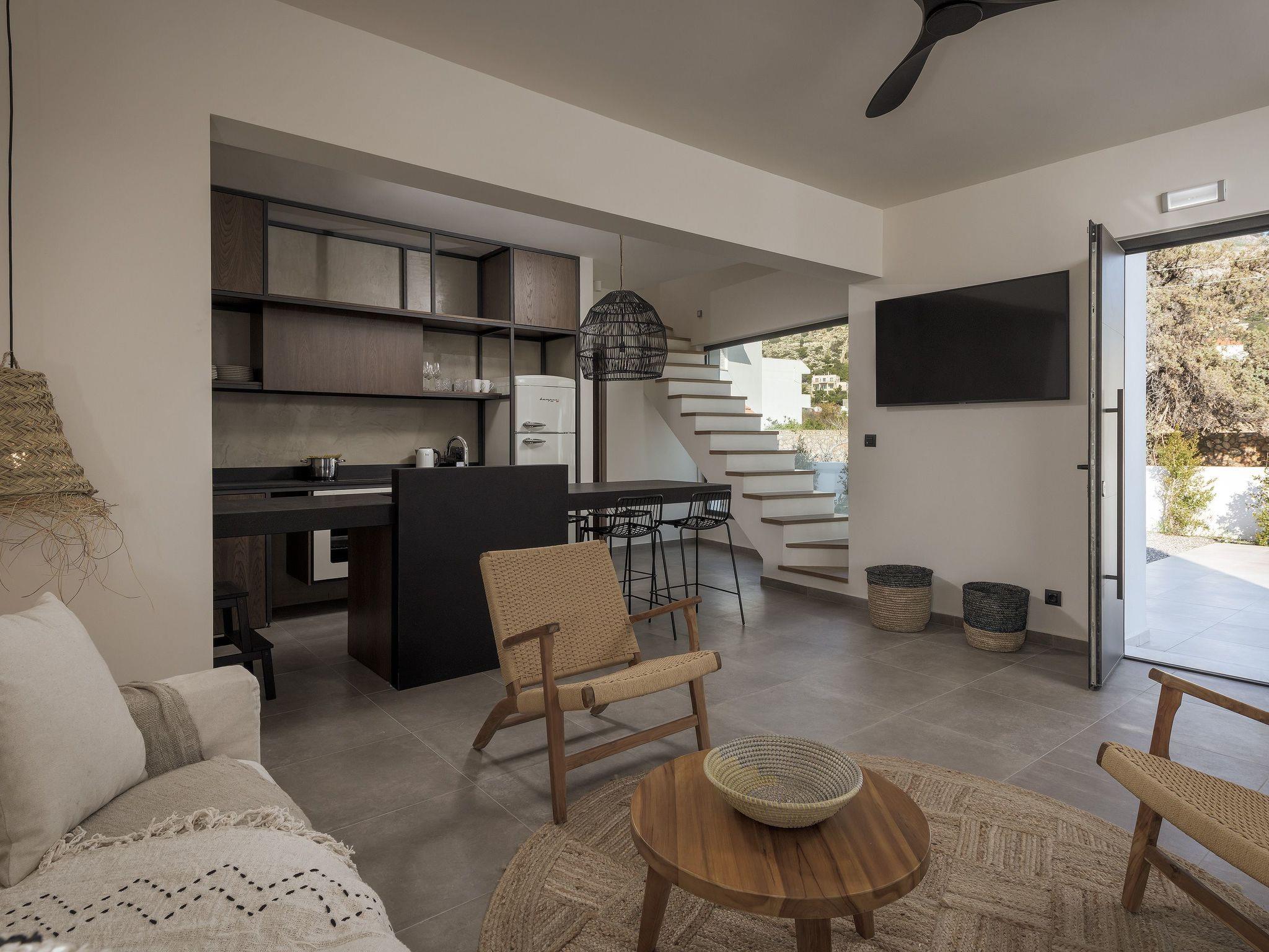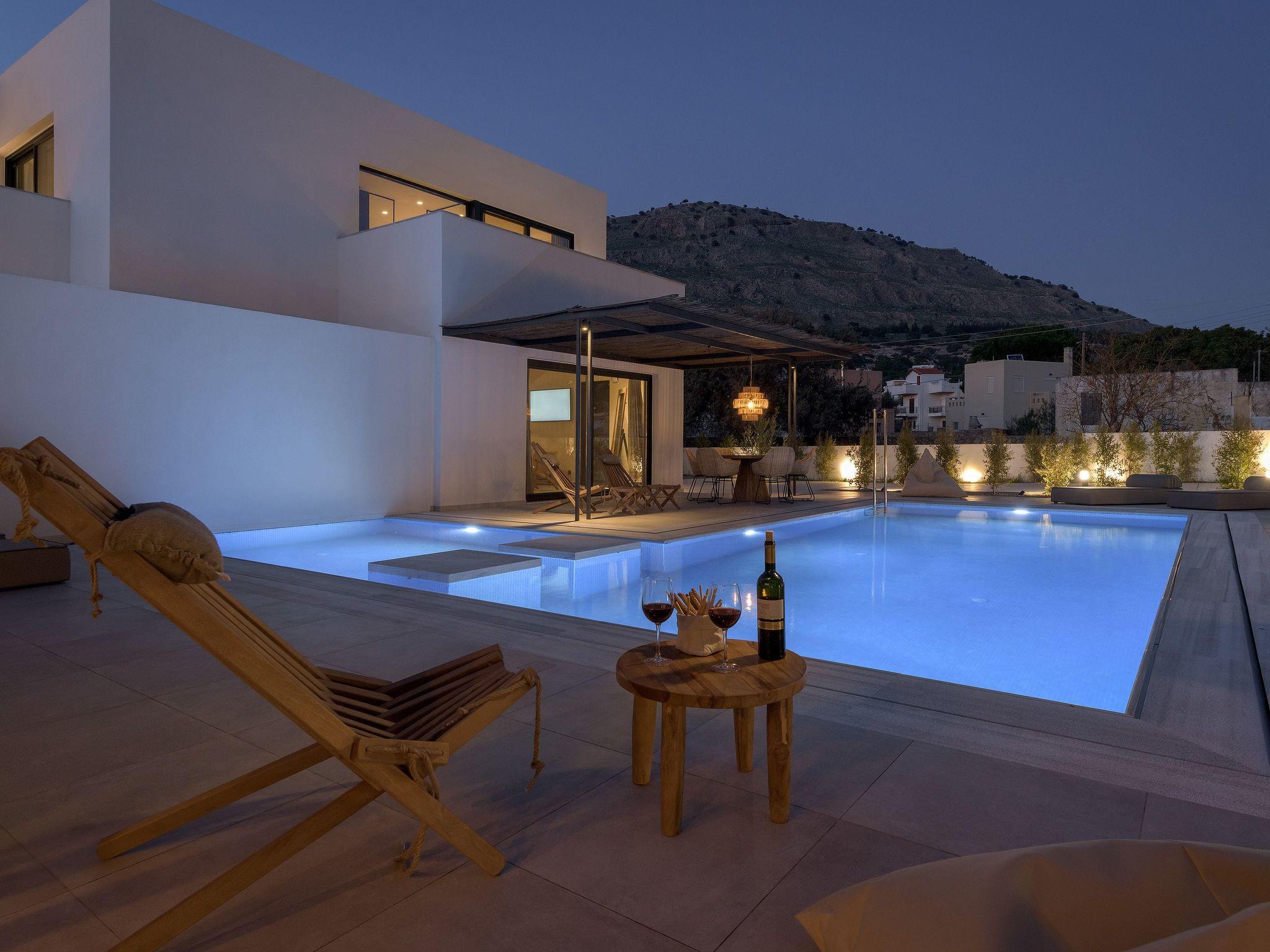 Eva Villa features 3 wonderful bedrooms with ensuite bathrooms and beautiful balconies, some of them offer a sea view. Two of the bedrooms have double beds and the other one has 2 single beds, all of them are fully air-conditioned. The modern living room, along with a siting area, combines luxurious comforts with a clear sense of home. The care that was put to the design of the property was meant to create a welcoming ambience with a warm modern décor. The classy kitchen is fully equipped with every amenity you may need and is complimented by the BBQ facility outside, for you to indulge in culinary. Guests can enjoy free Wi-Fi access throughout the property. Outdoors, you will find the amazing private swimming pool along with its stylish sunbeds. There, you can enjoy the summer sun; without doubt you’ll get the island feeling. The surrounding of the tastefully designed pool is quite pleasant, with a sitting area allowing you to enjoy any meal with your loved ones.