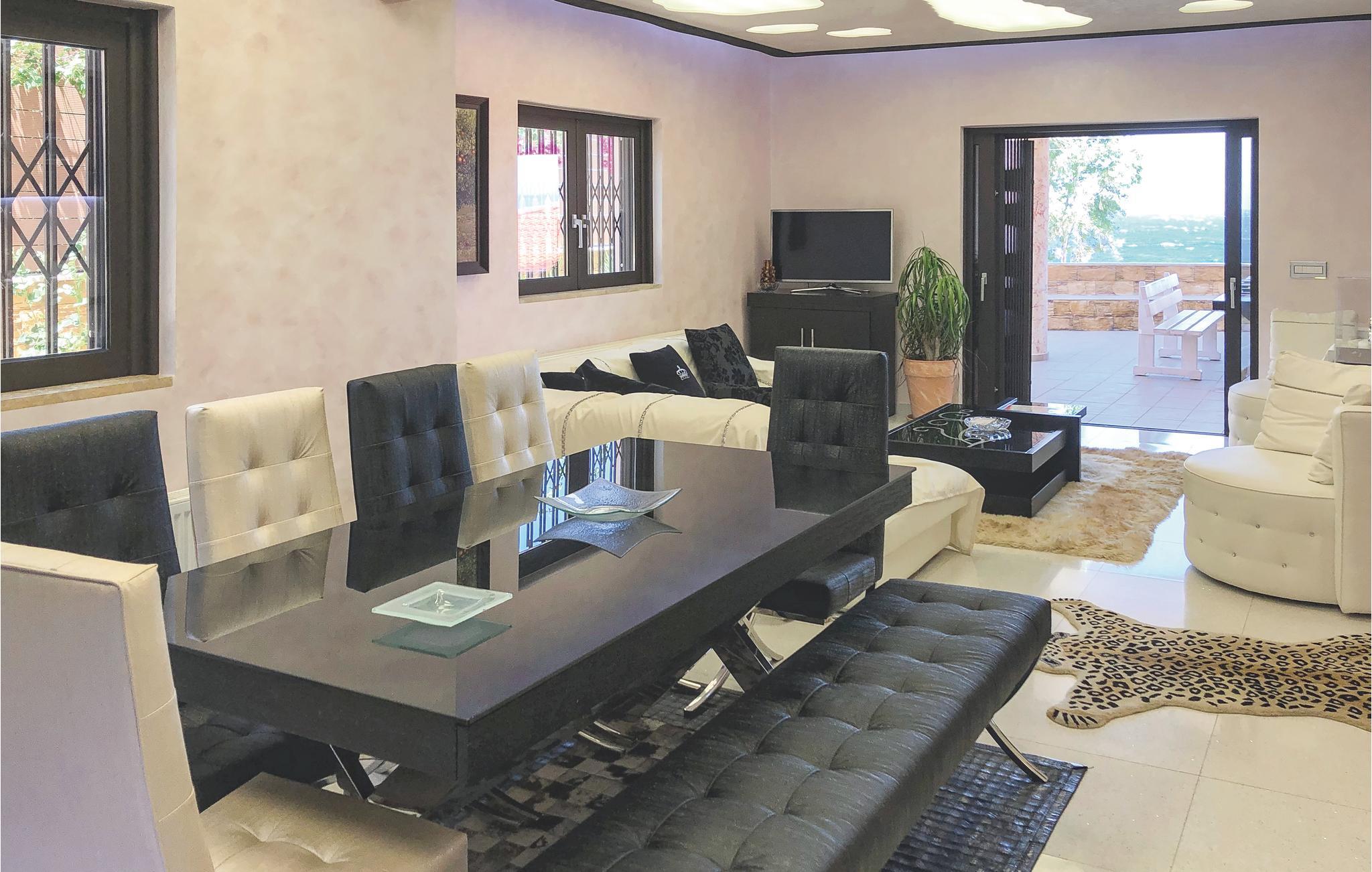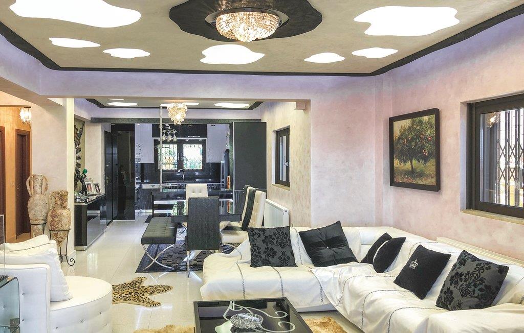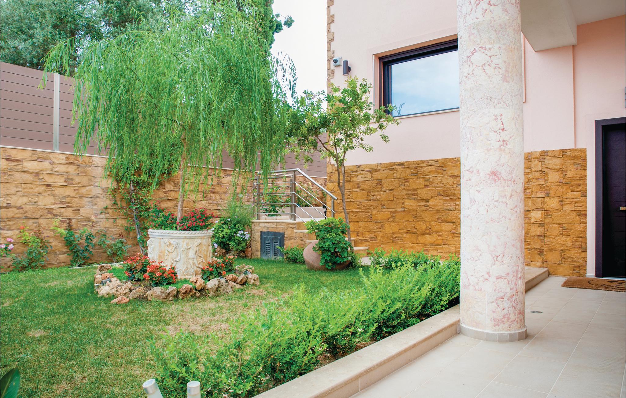 Feriehuset er velindrettet med en blanding af moderne og klassiske møbler, og byder på alle bekvemmeligheder til en uforglemmelig ferie i Grækenland. I huset findes fire soveværelser, alle med eget badeværelse. Hertil kommer to fuldt udstyrede køkkener og to opholdsstuer. Udendørs findes et vidunderligt, overdækket atrium med bar, hvor I kan spise sammen og nyde udsigten over havet. Atriet ligger ved siden af swimmingpoolen, der har hydromassage.