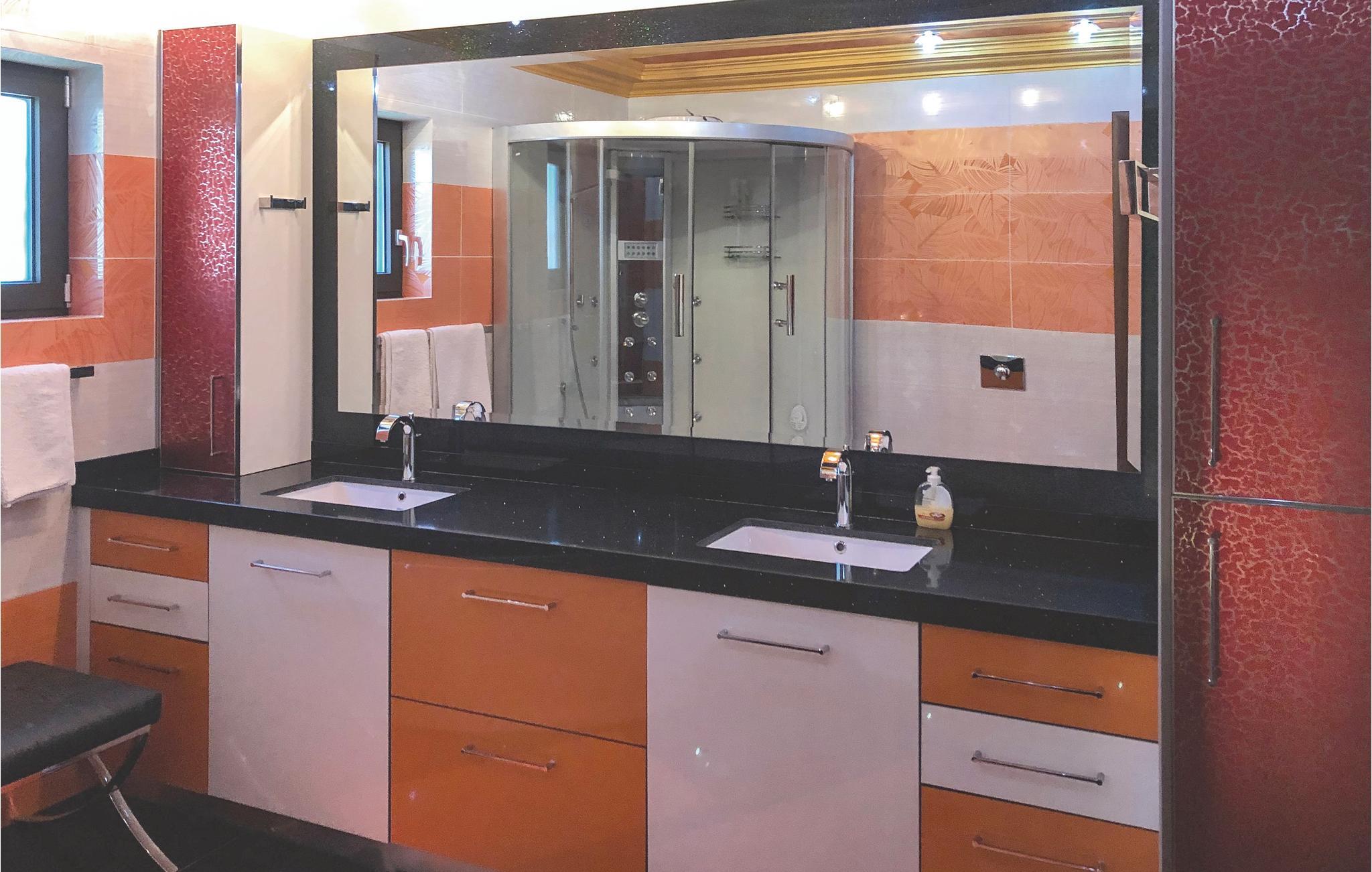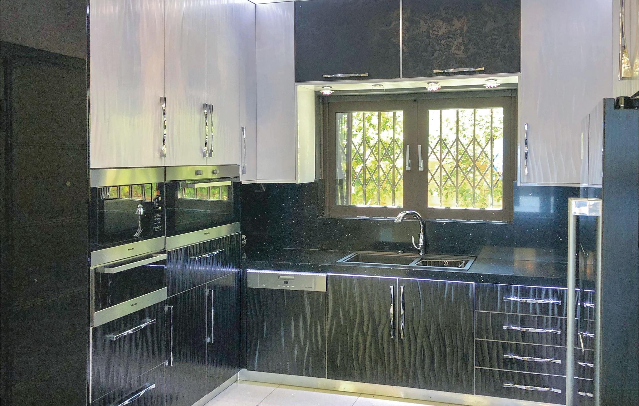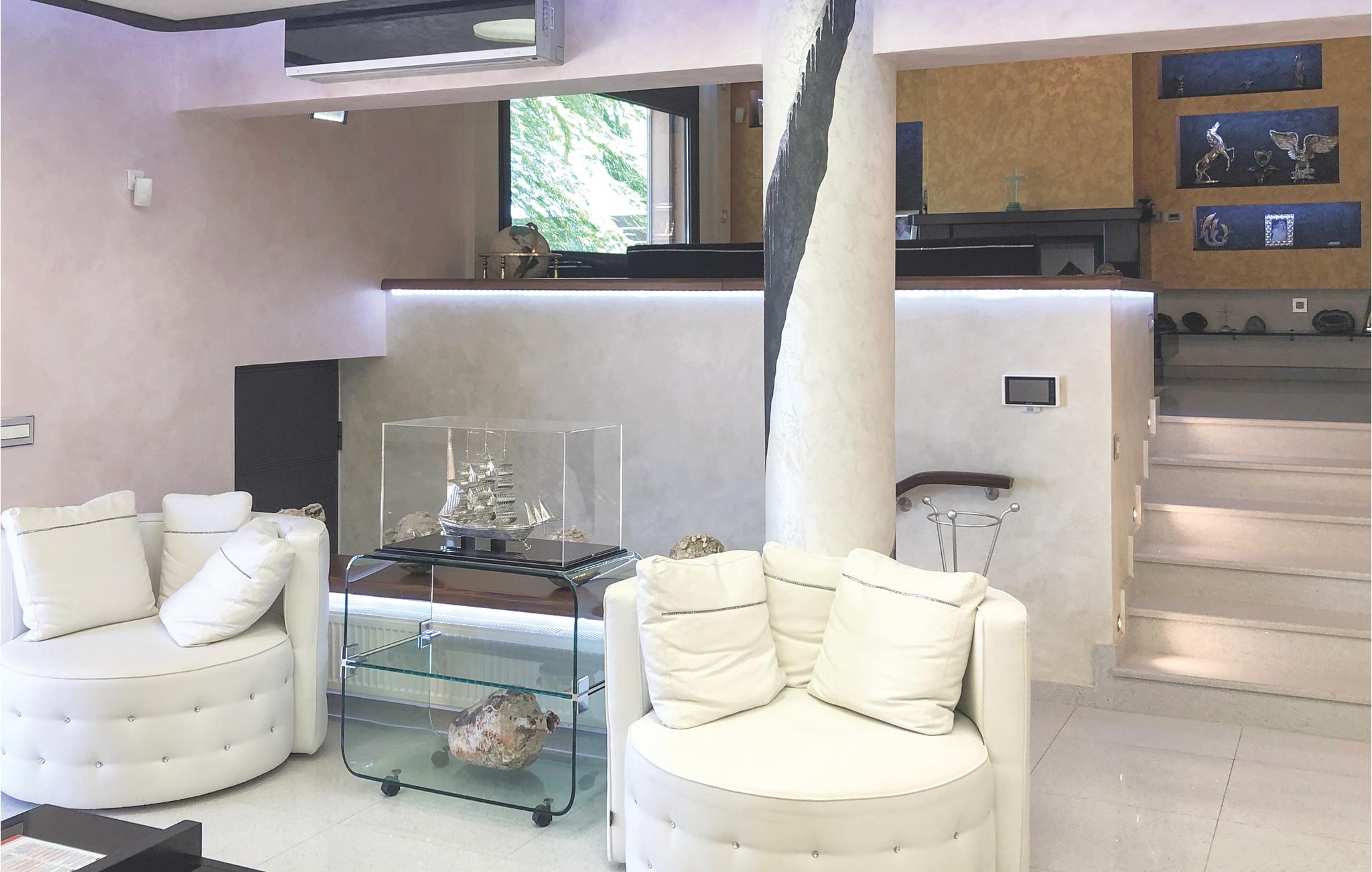 Feriehuset er velindrettet med en blanding af moderne og klassiske møbler, og byder på alle bekvemmeligheder til en uforglemmelig ferie i Grækenland. I huset findes fire soveværelser, alle med eget badeværelse. Hertil kommer to fuldt udstyrede køkkener og to opholdsstuer. Udendørs findes et vidunderligt, overdækket atrium med bar, hvor I kan spise sammen og nyde udsigten over havet. Atriet ligger ved siden af swimmingpoolen, der har hydromassage.